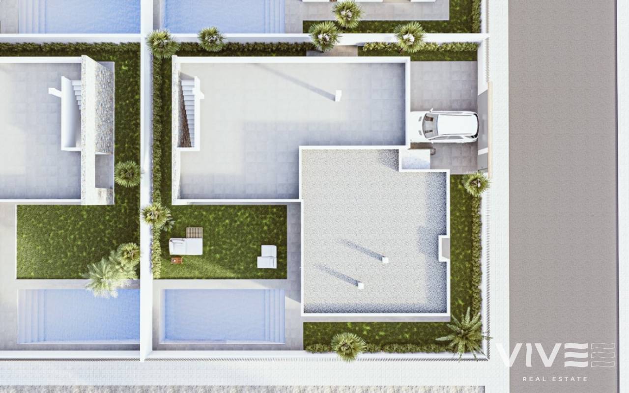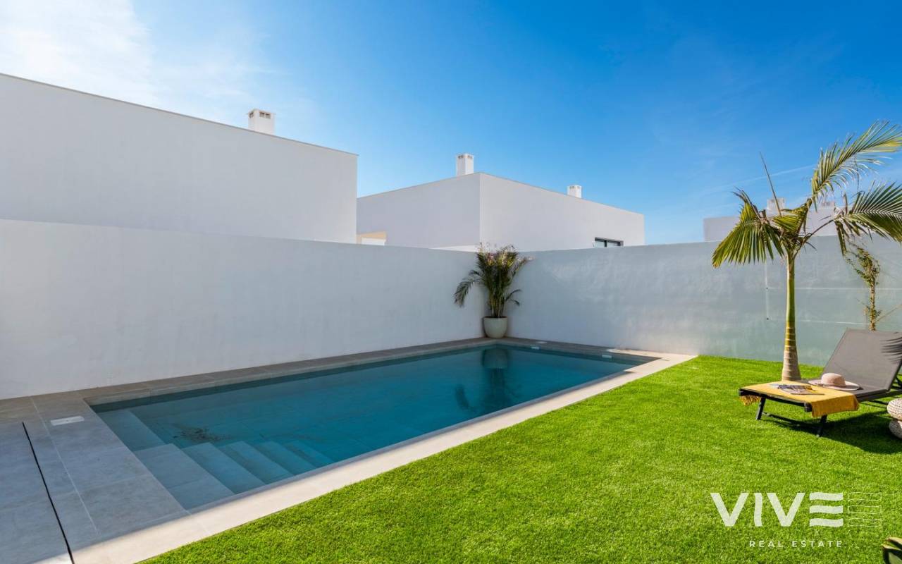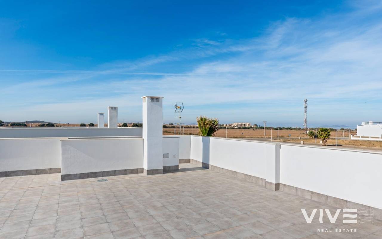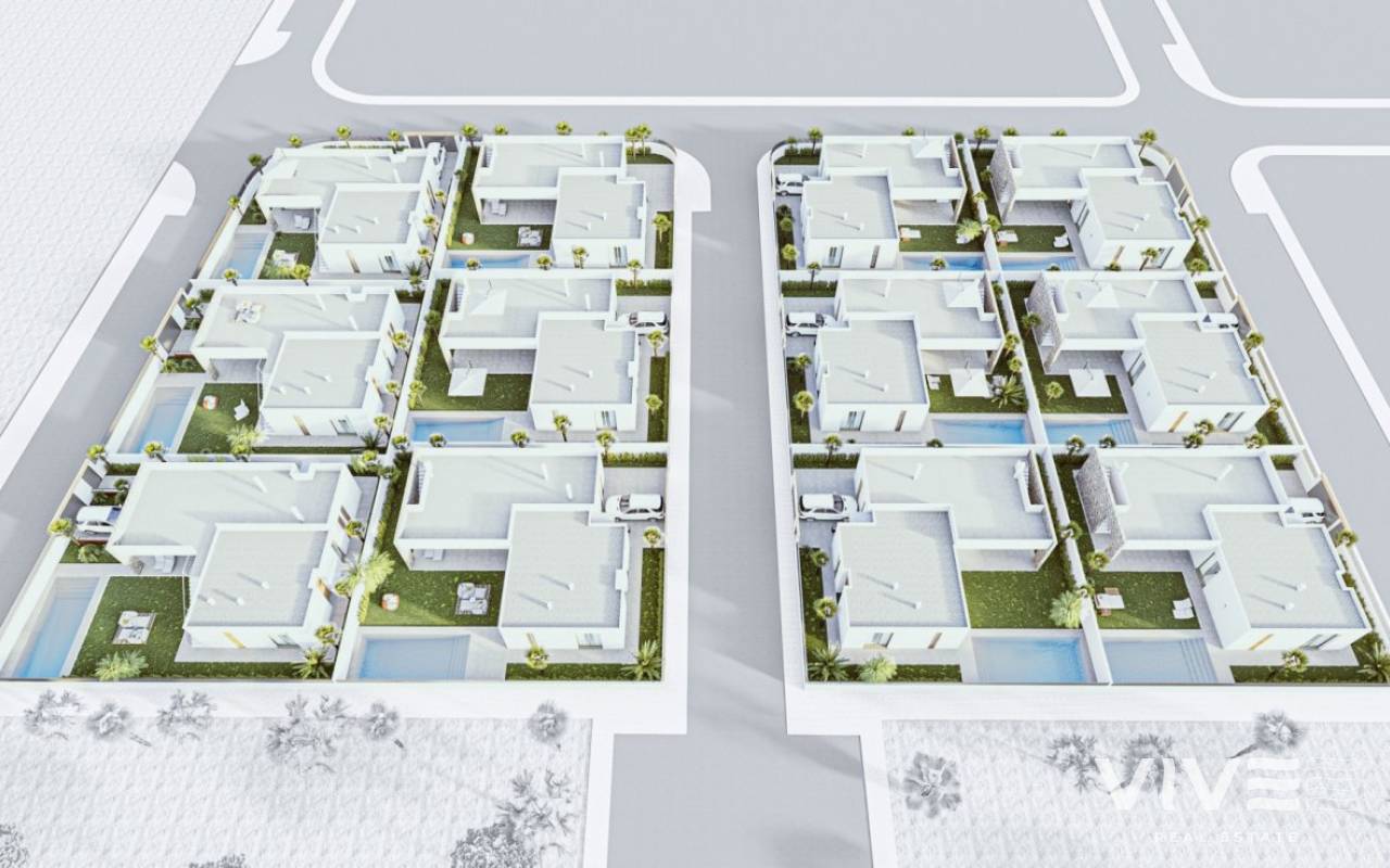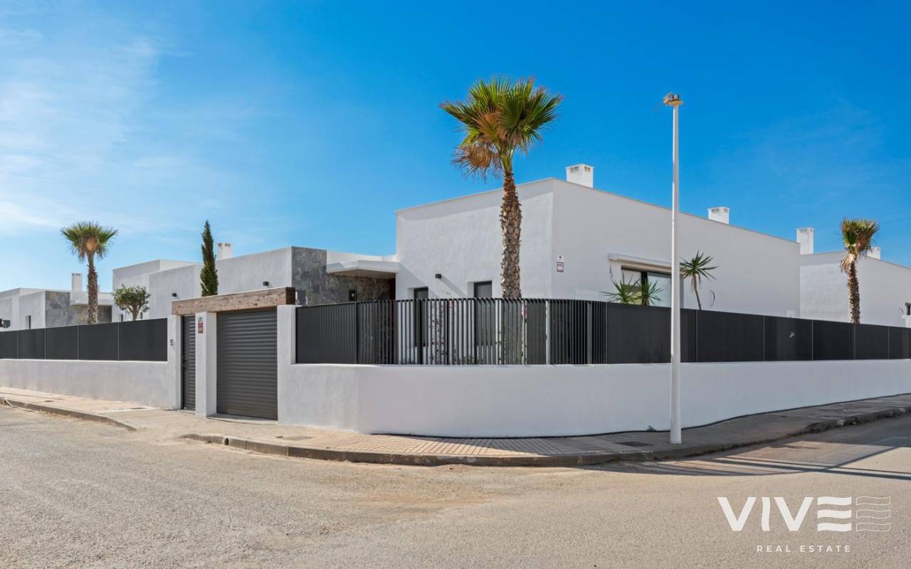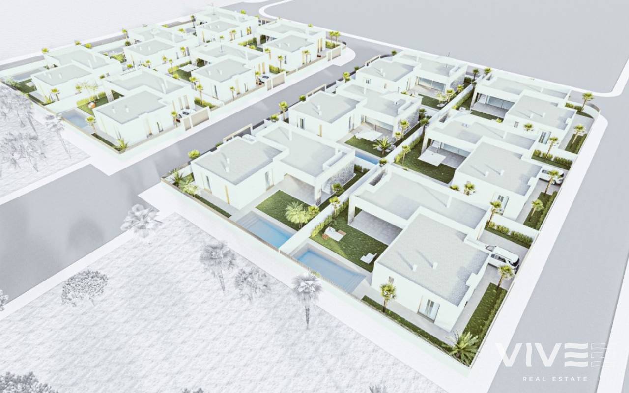 NEW BUILD VILLAS IN MAR DE CRISTAL New Build one level villa with 3 bedrooms, 2 bathrooms and private solarium at 500 meters from the Mar De Cristal beaches. Villas has modern open plan kitchen with the living room, where high sliding windows has access to the garden with private swimming pool and parking space. Mar De Cristal is a coastal town in the middle of beautiful nature and nature parks of which you find photo’s added. This is one of the most beautiful places in Spain and the whole world. In Mar De Cristal you will find some nice restaurants and a supermarket. The nice restaurants of Los Belones are only 2 km’s away, The 36 km beaches of La Manga are a 5 minutes drive. Magical Cabo De Palos and Portman is only a 5 minutes drive. The big shopping centre of Cartagena is less than a 10 minutes drive. Murcia Corvera airport is 30 minutes away, Alicante airport 55 minutes.