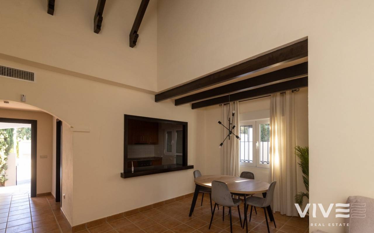 KEY READY VILLA IN FUENTE ALAMO, MURCIA Residential of townhouses, independent and semi-detached villas in Fuente Álamo, Murcia. There are seven different models of houses to choose from, designed to suit everyone’s taste. Rustic designs combined with top quality materials and a focus on comfortable living space there is something for everyone. The residents of this private community of beautiful, spacious homes will also be able to enjoy their own communal gardens and swimming pools. This unusual design villa has 3 bedrooms and 2 bathroom, independent kitchen, living room with patio doors leading onto the covered porch. An options for a private pool at an extra cost. Fuente Álamo de Murcia is a town and municipality in the Region of Murcia, southern Spain. It is situated 22 km northwest of Cartagena and 35 km south west of Murcia. The town lies in the basin of the Mar Menor surrounded by the mountains of Algarrobo, Los Gómez, Los Victorias and the Carrascoy. The water from these mountains flows down into the Rambla de Fuente Álamo and then onto the Mar Menor. Fuente Álamo located 30 minutes from Murcia - Corvera airport.