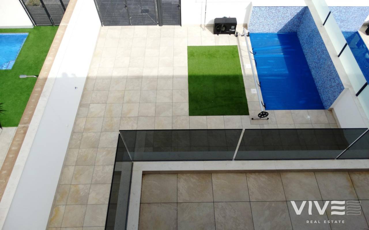 NEW BUILD TOWNHOUSES IN SANTIAGO DE LA RIBERA New Build development of 11 townhouses in Santiago de la Ribera, 100 metres from the beach! Beautiful properties with 3 bedrooms and 3 bathrooms, open plan kitchen with living room, fitted wardrobes, terrace, solarium, private garden with swimming pool and parking space. Just 5 minutes walk along the promenade, next to the yacht club, will take you to the centre of Santiago de la Ribera, with all the services at your fingertips, street market, bars, restaurants, ice cream parlours, shops, water activities and everything you need to enjoy the Mediterranean lifestyle in the Mar Menor. Santiago has a modern feel, although it still maintains its ‘fishing village’ atmosphere. It has a very beautiful promenade, which is lined by majestic palm trees and 2 kilometres of wonderful sandy beaches. From here you can take a boat trip out across the calm waters of the Mar Menor, to the La Manga Strip on the opposite side. The main shopping area is really in the town of San Javier, but there are some some shops in the narrow streets to browse, try visiting on a Wednesday morning when there is a large street market. The villas are walking distance to shops, bars, restaurants, Dos Mares shopping centre and the fantastic beaches of the Mar Menor and 20 minutes to the popular Zenia Boulevard - everything is within easy reach! Just 30 minutes from Cartagena city and the new International Murcia airport.