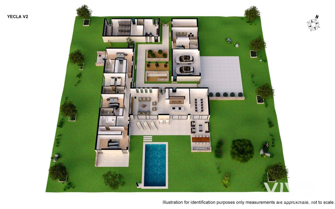 NEW BUILD VILLA IN YECLA, MURCIA New Build exclusive luxury villa located within a beautiful vineyard in Yecla, Murcia. The project offers modern farmhouse-style villas built on plots of 20,000 m2, with olive trees and a vineyard with a production of up to 10,000 kg of grapes, which makes it possible to produce your own wine. Different distribution models are offered, although it is also possible to make a totally personalized design. The standard models present a spacious house on one floor with 6 bedrooms, 5 bathrooms, open spaces full of life, where the "interior" and the "exterior" merge perfectly and natural light dominates. The day area has an open design, combining kitchen, dining room and living room in a large space with large windows that give access to the outdoor area with large terraces, the garden and the private pool. The interior patio in the centre of the house represents the perfect integration of the architecture with the natural environment. The entire house includes high quality materials in the style of a traditional Spanish farmhouse with a modern touch; highlighting a high thermal and acoustic insulation and energy efficiency A, noble and natural materials, such as wood and natural stone, in combination with stucco, concrete and glass for a perfect integration in the natural environment. In addition, it includes 2 parking spaces, a swimming pool and a customizable garden according to m2 and type of harvest. A house that adapts to everyone and is highly sustainable in terms of water use, energy consumption (solar panels) and thermal insulation, among other things. A unique location with a lot of privacy that allows you to be in direct contact with nature and enjoy a healthy and eco-sustainable lifestyle, but only 15 minutes by car from the centre of Yecla. One of the most important cities in the province of Murcia, which has all the necessary services for day to day life, as well as a wide cultural and gastronomic offer. It is the ideal environment for hikers, mountain bikers and other outdoor enthusiasts. The area is very well connected by road, being able to reach Murcia and Alicante in just over 1 hour. Yecla, one of the most exceptional destinations of the Region, is situated in the far North, or better said, in the far Northeast. This is a land of mountains, good wine, history, culture and legends. It is no wonder that Spanish writers such as Azorín or Pío Baroja were fascinated after getting to know it.