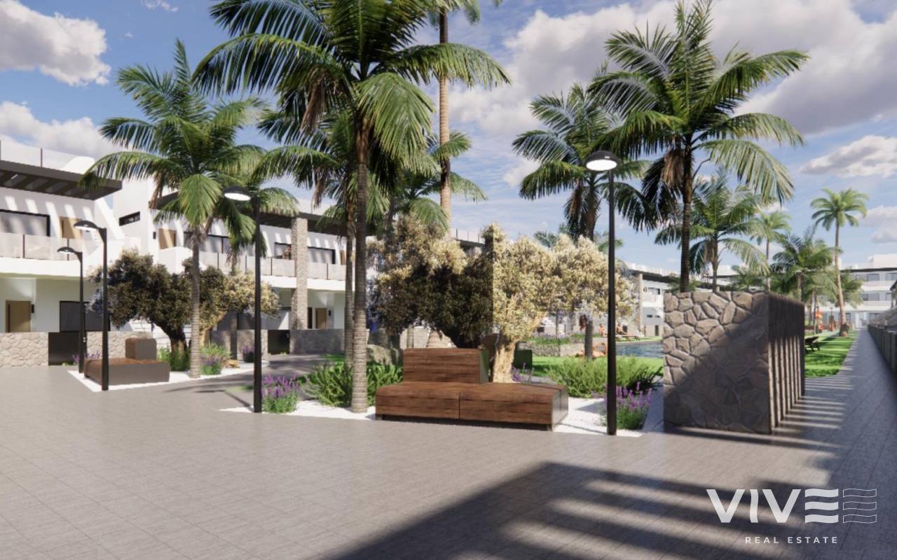 NEW BUILD RESIDENTIAL COMPLEX IN PUNTA PRIMA Beautiful New Build residential complex of apartment, bungalows and villas located in Punta Prima, Torrevieja. Modern 94 bungalows and apartments with 2 and 3 bedrooms, 2 bathrooms, open plan kitchen with spacious living room, fitted wardrobes. Ground floor bungalows with private garden, top floor bungalows with private solarium and apartments with spacious terraces. All properties has underground parking space. The residential will consist of 1,980m2 of community green areas, 2,620m2 of private green areas, children's play area, community pools, jacuzzi and gym area. Complex located near sports centres, shopping areas, restaurants and just 10 minutes walk from the beach of Punta Prima. Punta Prima, located just 5 km from Torrevieja, is characterised by its good communication and health infrastructures, its proximity to Alicante airport, and the number of services open all year round. Just 10 km away are the golf courses of Villamartin, Campoamor, Las Ramblas, Las Colinas and Lo Romero, as well as the shopping centres of La Zenia and Habaneras.