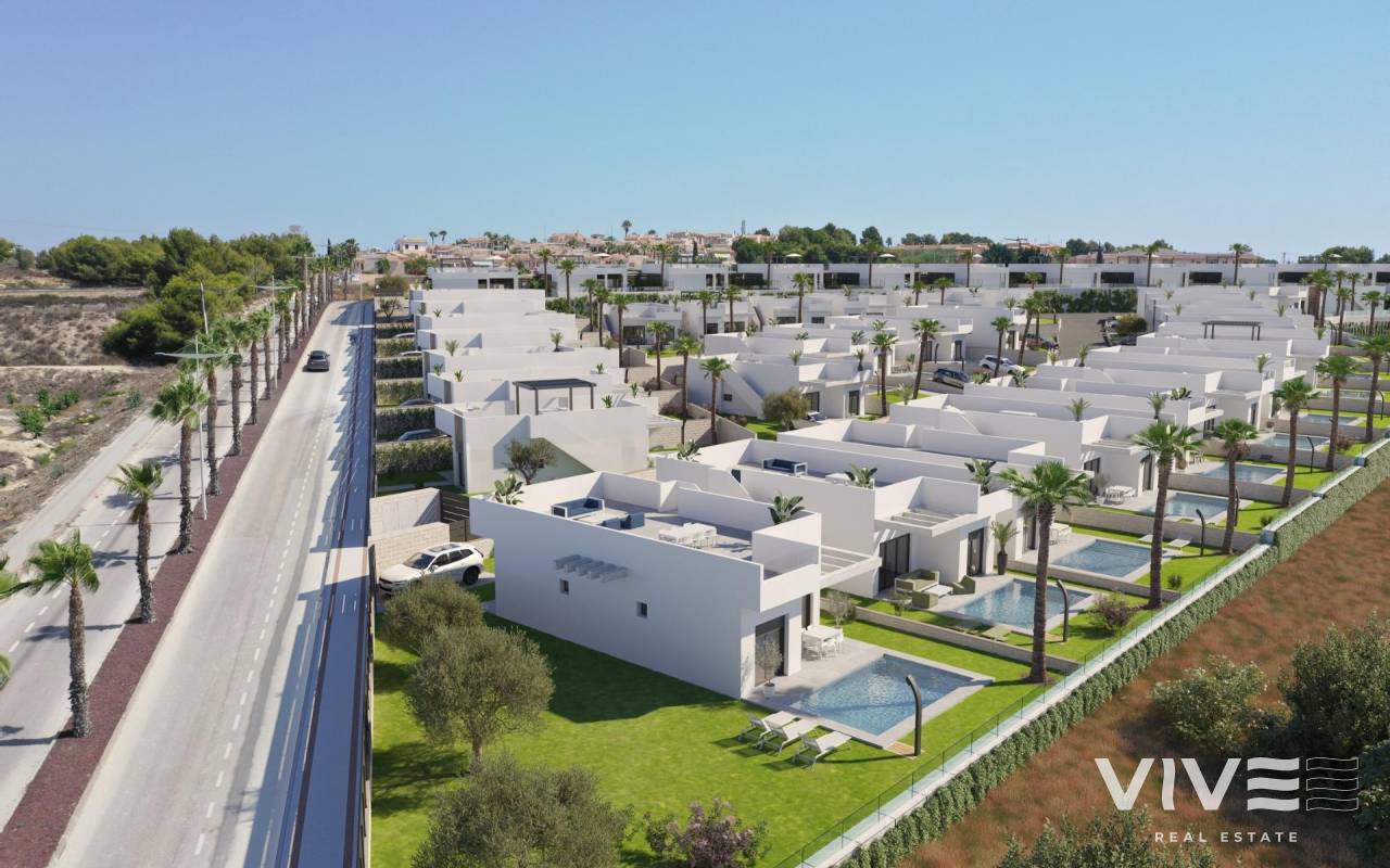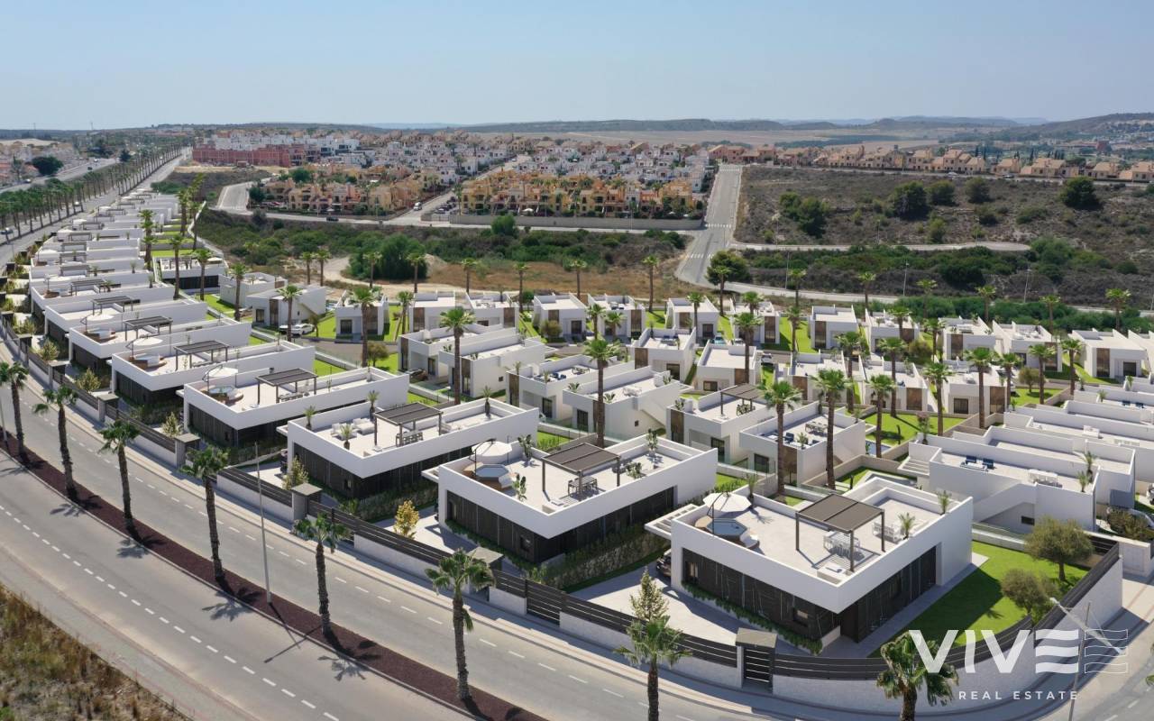 NEW BUILD VILLAS IN ALGORFA GOLF RESORT New Build residential of independent villas in La Finca Golf course, Algorfa. Villas build over 1 floor and consists of 3 bedrooms, 2 bathrooms, open plan kitchen, the living room with open views to the terrace, solarium, private garden with the pool and parking. Residential complex located in La Finca Golf resort, in the municipality of Algorfa, in the Vega Baja area of the Costa Blanca South. Only 15 minutes drive from the sandy beaches of Guardamar del Segura, and only 35 minutes from Alicante airport. The larger towns of Almoradi, Benijófar and Ciudad Quesada are a short drive away. Torrevieja and Orihuela Costa, with their large shopping centres, are 15 minutes away.