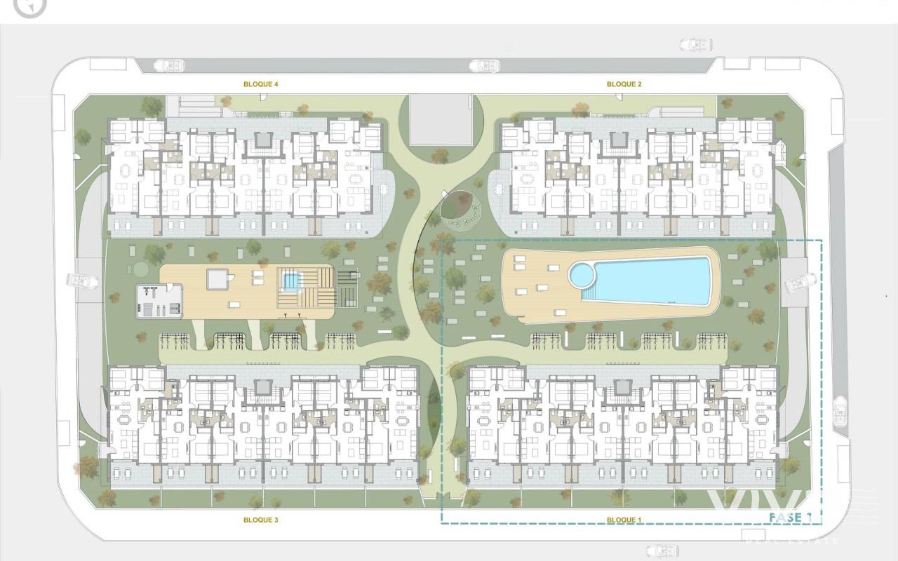 NEW BUILD RESIDENTIAL COMPLEX IN PILAR DE LA HORADADA New Build residential of apartments and penthouses with exceptional finishes in Pilar de la Horadada. Ground floor apartments with private gardens, middle floor apartments with large terraces and top floor penthouses with private solariums. The kitchen is delivered fully furnished, leaving enough space for you to choose the appliances according to your preferences. Only noble materials have been used, such as interior carpentry made entirely of wood and exterior Climalit/aluminium windows, ideal both for their design and for the high thermal-acoustic level they have. All the terraces are south-facing. Automatic gates in the residential, both for pedestrian access and vehicle access. The building is surrounded by gardens, it will also have a communal swimming pool, parking inside the complex and each property has its own private storage room. In the vicinity of this residential complex you will find all the facilities of public transport, schools, supermarkets, shopping centres, golf courses and fantastic municipal parks with their children's playgrounds. Everything at your fingertips so that you can enjoy an excellent location. Pilar de la Horadada is a typical Spanish village in the most southern part of the Costa Blanca. The large main street has supermarkets, lots of shops, restaurants and bars and some lovely squares. The beautiful beaches of Torre de la Horadada and Mil Palmeras with fine sand promenade is just 5 minutes away. The airports of Corvera (Murcia) and Alicante are respectively 40 and 55 minutes away.