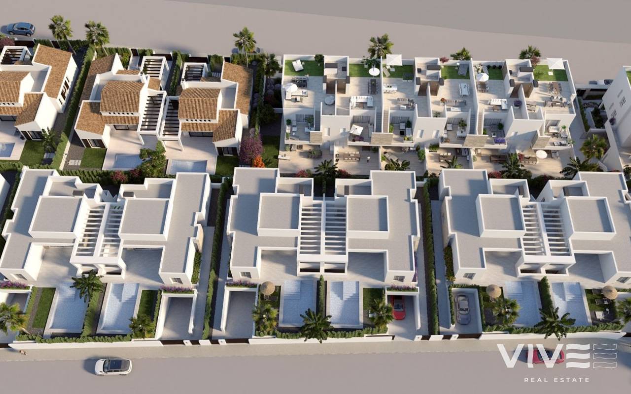 NEW BUILD RESIDENTIAL COMPLEX IN ALGORFA New Build residential complex of independent or semi-detached villas and apartments with amazing communal pool and green areas in La Finca Golf course, Algorfa. New Build semi-detached villas with 3 bedrooms, 2 bathrooms, an open plan fitted kitchen with dining area, a spacious lounge area with patio doors leading out into the garden with swimming pool and off road parking, semi finished basement. Residential complex located in La Finca Golf resort, in the municipality of Algorfa, in the Vega Baja area of the Costa Blanca South. Only 15 minutes drive from the sandy beaches of Guardamar del Segura, and only 35 minutes from Alicante airport. The larger towns of Almoradi, Benijófar and Ciudad Quesada are a short drive away. Torrevieja and Orihuela Costa, with their large shopping centres, are 15 minutes away.