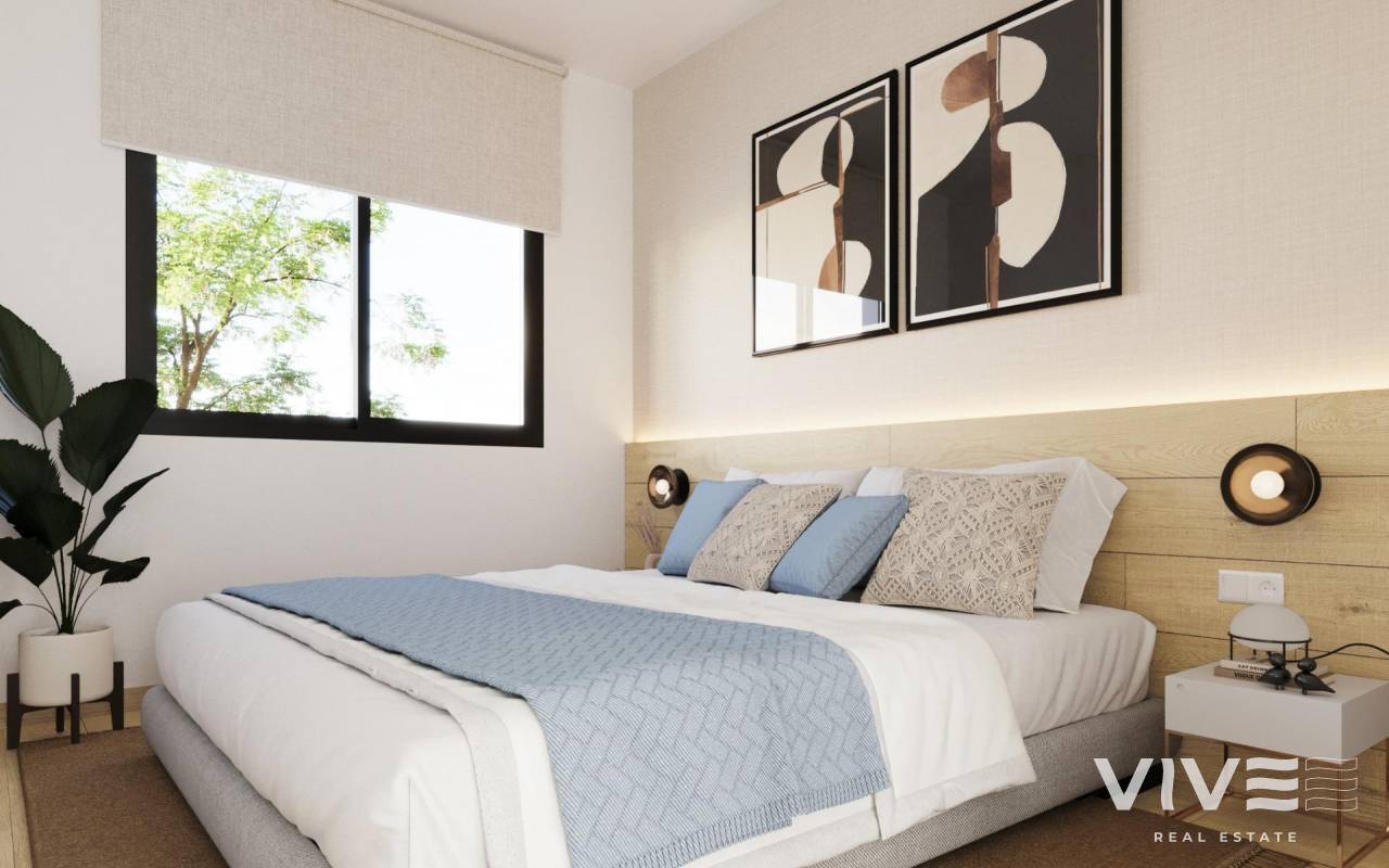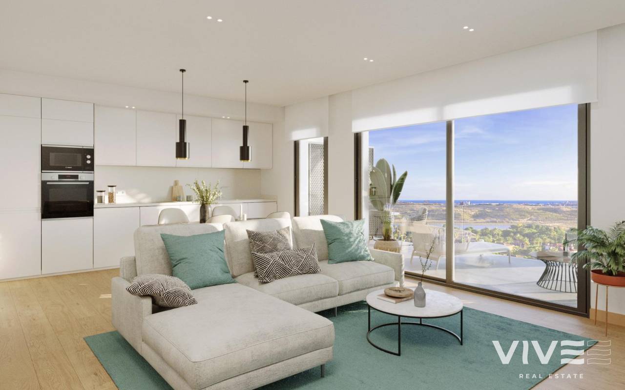 NEW BUILD RESIDENTIAL COMPLEX NEAR MUTXAMEL Come and live in a complex in an area with a high quality of life, located on the Bonalba golf course with stunning sea views near Mutxamel, a short distance from the Alicante Airport, the city of Alicante and the beaches.. Residential complex has 2 and 3 bedrooms apartments with large terraces, and 2, 3 and 4 bedrooms villas. A dream home where you will create the best memories of your life. Exclusive homes with all the necessary amenities close at hand. Unwind after a long working day in the swimming pool of the complex. Every nook and cranny has been developed with attention to detail. You’ll want to invite friends and family to enjoy your spacious two, three or four-bedroom home every weekend. Enjoy the life of your dreams at the complex: morning runs; a relaxing swim in the complex pool; a charming meal with friends and family in the Social Club; and an afternoon’s fun with the kids in the children’s areas. And all this in exclusive surroundings a few steps away from a relaxing game of golf. Whether alone, with your pet or with your loved ones, every spot you visit is designed to provide visual comfort and to keep you and your loved ones safe. During your strolls through the communal areas of the complex, you may find: A large fountain finished in blue tiles. A poolside area with natural grass. Furniture spread throughout the plot on which to rest and contemplate the views of the complex. Small areas of artificial lawn and ceramics with lustrous wood tone. The complex is fully fenced off with video intercom for your safety and the safety of those who matter most to you. Buildings and architecture with great elegance and contemporary style that will captivate you. As if enjoying a space with impeccable style was not enough, your new home next to the Bonalba golf course will have large terraces equipped with glass railings allowing you to take in the sea views in impeccable detail. Just imagine waking up every morning to face the extraordinary Alicante dawn. Have breakfast in the best light in Spain: the light of the Mediterranean.