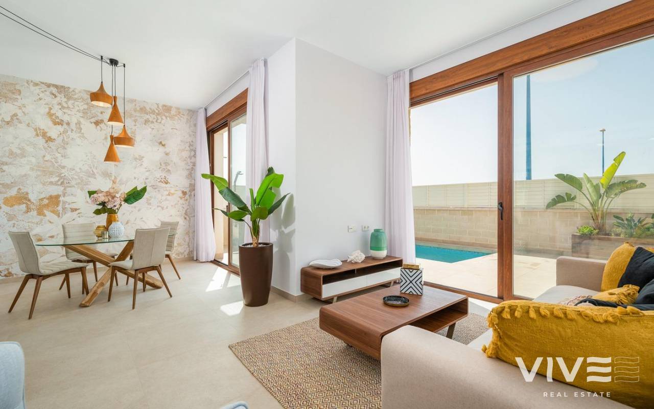 NEW BUILD VILLAS IN VERA, ALMERIA New Build residential of beautiful villas located in the Coast of . Almeria, Vera. New Build residential of independent villas to choose between two models: double height, with three bedrooms and three bathrooms and three bedrooms with two bathrooms, all on one floor. Both with pool of 6x3 meters and on a plot of 230 meters approximately. As an options all villas can can have underbuild space at an extra cost. Villas located just 200 metres from the Vera beach. Vera is one of the best naturist places in Europe, recognized for the quality and purity of their waters. It offers six kilometres of beaches (Las Marinas-Bolaga, Puerto Rey, El Playazo, Quitapellejos). Vera bordering with the famous tourist destinations such as Mojacar and the Almanzora Caves. Residential complex located about 1,5 hour drive away from Murcia - Corvera airport and about 2 hours away from Alicante airport.