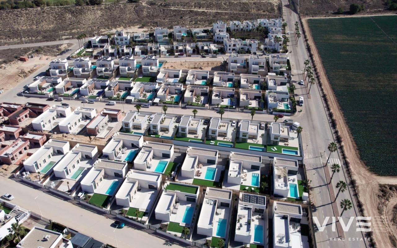 NEW BUILD VILLAS IN ALGORFA New build residential complex with beautiful villas in Algorfa. Villas build over 2 floors, has 3 bedrooms, 2 bathrooms, open plan kitchen with living area, where are large windows with direct access to the terrace and the pool. It has a parking space on the plot. Algorfa has an infrastructure of high quality services that allows you to live comfortably. Close the wonderful beaches of Guardamar and Torrevieja where you can enjoy its warm waters and sunbathe for more than three hundred days a year. In addition, in these tourist towns you will find shopping censers, restaurants and entertainment venues. Alicante airport is 40 minutes drive away & Murcia airport is 55 minutes drive away.