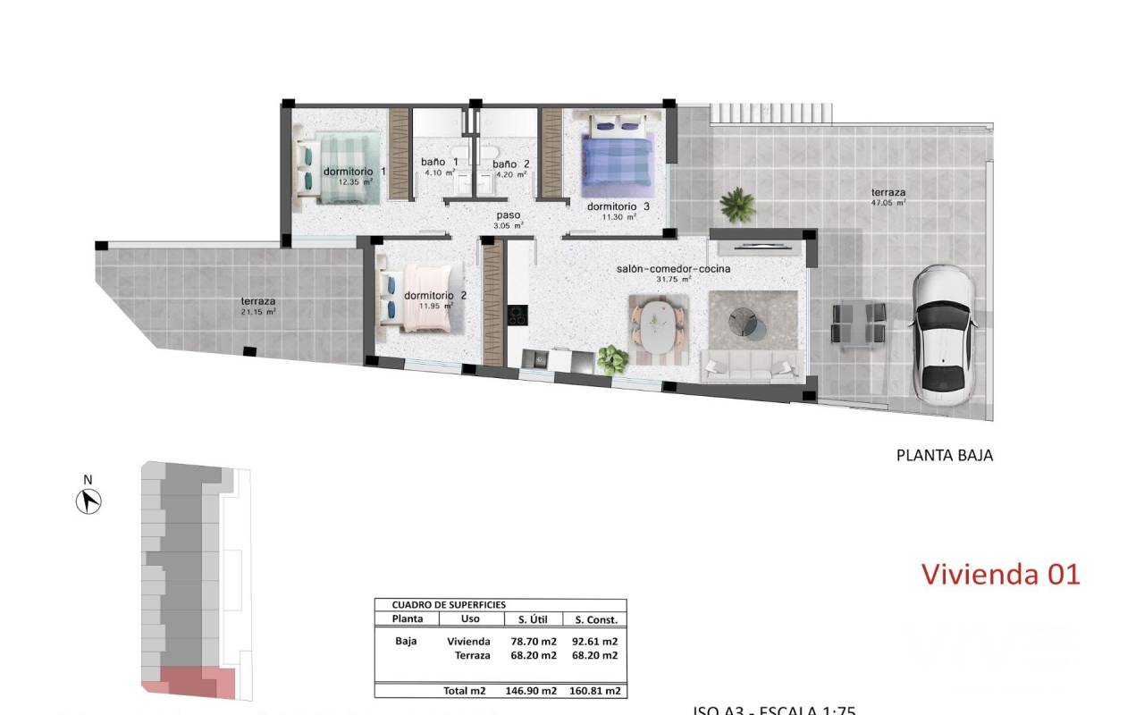 New Build Bungalow Residential Complex in Pilar de la Horadada Exclusive Modern Bungalows in Pilar de la Horadada This new development offers 16 stylish bungalows in the desirable town of Pilar de la Horadada, located in the southernmost part of Costa Blanca. Choose between 2 or 3-bedroom options, each featuring 2 bathrooms. Ground-floor units come with spacious front and rear terraces, providing direct access to the communal pool and garden, while top-floor units boast a large private rooftop solarium. Spacious Living with Modern Features Each bungalow includes a bright and open living/dining area and a fully equipped kitchen with large sliding doors that connect the indoor and outdoor spaces seamlessly. Bedrooms feature built-in wardrobes. Ducted air conditioning is installed, and the complex includes an elevator for easy access to upper floors. Private parking spaces are also included for all units. Prime Location in Pilar de la Horadada Pilar de la Horadada is a traditional Spanish town with a lively main street offering supermarkets, shops, restaurants, and bars. The beautiful beaches of Torre de la Horadada and Mil Palmeras are just 5 minutes away. The development is conveniently located 40 km from Corvera Airport (Murcia) and 55 km from Alicante Airport, making it an ideal location for both permanent living and holiday getaways.