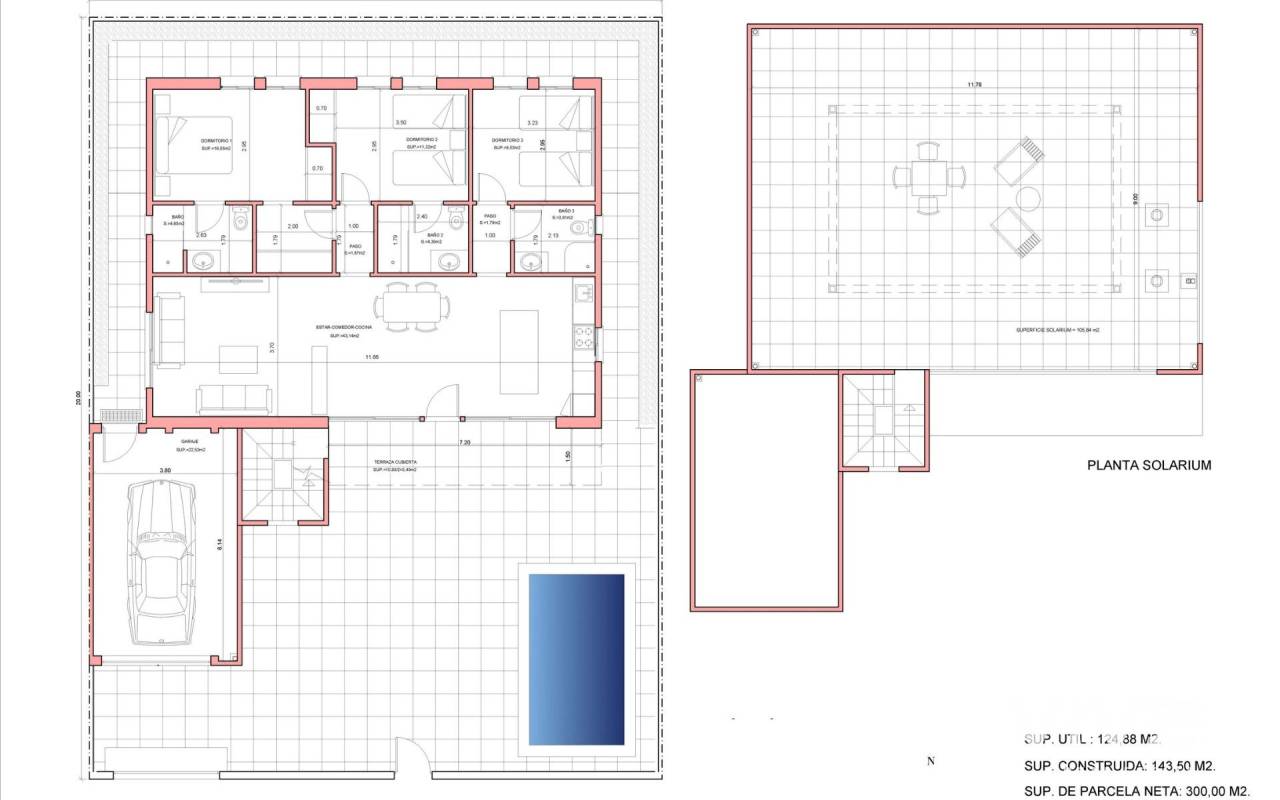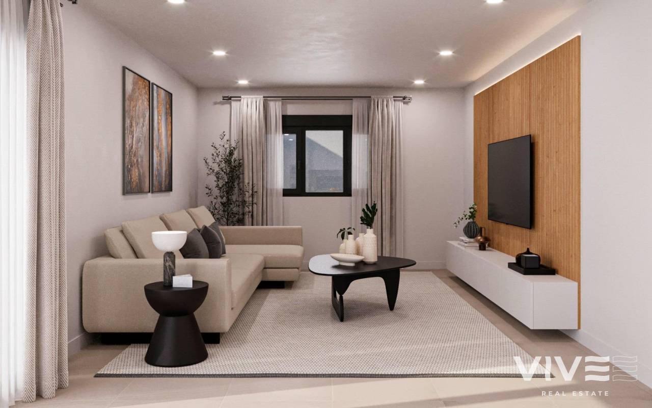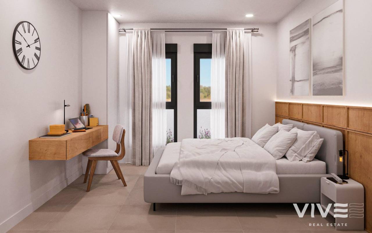 Newly built residential development of villas and townhouses in Fuente Álamo, Murcia. This location offers an exceptional natural environment, far from the hustle and bustle of big cities and the tourist pressure of the coast. Furthermore, we are committed to working from a sustainable development perspective, minimising our environmental impact and maximising integration with the local community. Here, your dreams of a peaceful and sustainable lifestyle become a reality. Imagine waking up every morning in a stunning natural setting, surrounded by peaceful landscapes and the unique beauty of the Murcian countryside. This development prioritises energy efficiency, the use of environmentally friendly materials and harmonious integration with the rural environment. From the design of the property to the planning of the development, we strive to reduce our carbon footprint and promote responsible practices in all our operations. Full ducted air conditioning, hot/cold. Video intercom system. Colour-lacquered security access door with lock and anti-vandal security fittings. Cupboards with storage space, lined inside, lacquered in white. Kitchen furniture with appliances included. Hot water by aerothermal energy. Electric blinds. Pergolas in solariums. Private 2.5x4.5m swimming pool with underwater night lighting and salt chlorination system. Pre-installation for outdoor kitchen/jacuzzi in solarium. Fuente Álamo de Murcia is a town and municipality in the Region of Murcia, in southern Spain. It is located 22 km northwest of Cartagena and 35 km southwest of Murcia. The town is located in the Mar Menor basin, surrounded by the Algarrobo, Los Gómez, Los Victorias and Carrascoy mountain ranges. The water from these mountains flows down into the Rambla de Fuente Álamo and then into the Mar Menor. Fuente Álamo is 30 minutes from Murcia - Corvera airport. Nearest shops 6 km away.