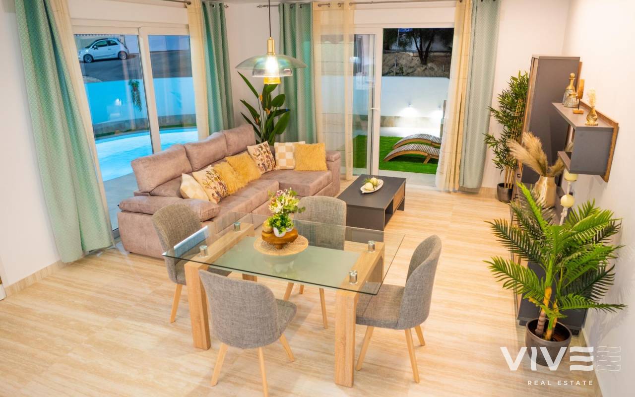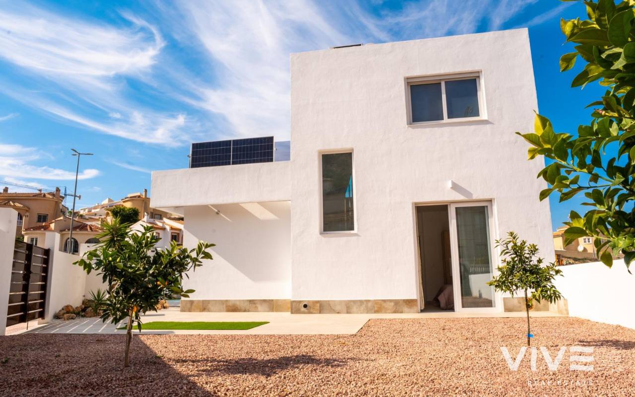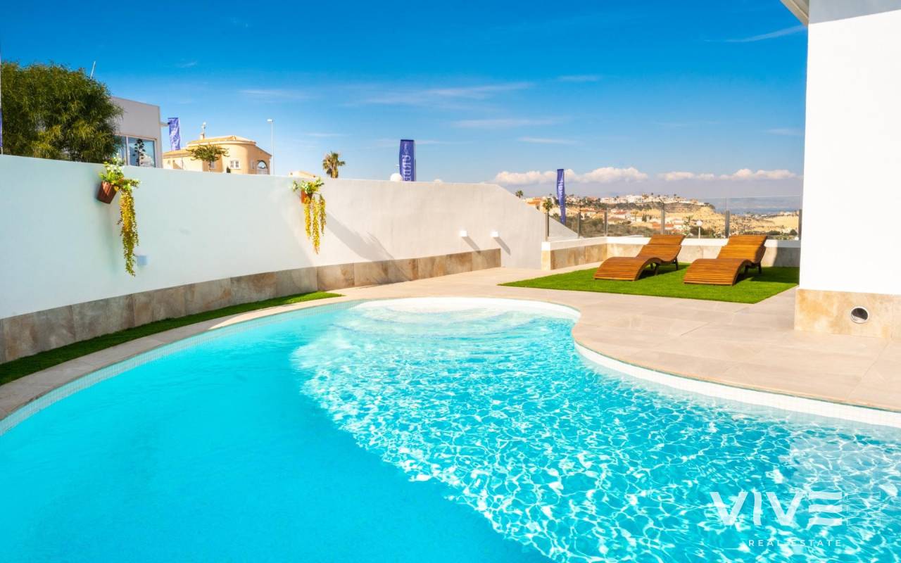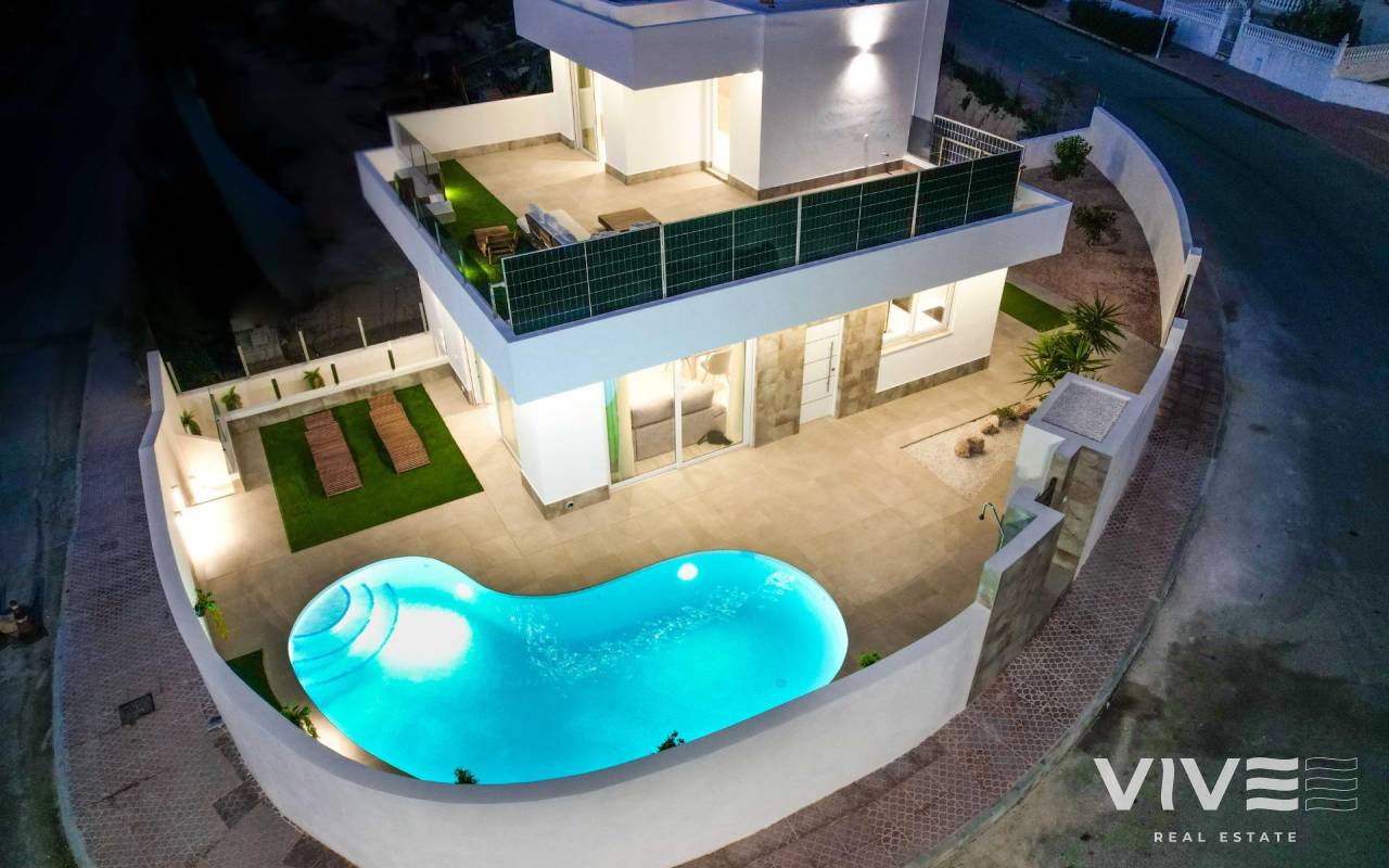 BEAUTIFUL BIG VILLA WITH VIEWS TO THE GOLF COURSE "LA MARQUESA"! This beautiful villa, located 50 meters from the La Marquesa golf course, apart from having clear and beautiful views and offering the tranquility of being in a quiet environment, is a few meters from the commercial center with shops, supermarket, bars and international restaurants . Just 5 minutes from the town of Rojales with all services and 15 minutes from the spectacular blue flag beaches of Guardamar del Segura. Alicante-Elche airport is 35 minutes away. The villa has 335 m2 of plot area, 433 m2 of built area, distributed in 3 floors, one of them being a semi-basement diaphanous of 126 m2. The villa has 3 bedrooms and 2 bathrooms. The 3x6 m pool and the large terraces in the garden and pool area will allow you to enjoy the sun and the Costa Blanca climate throughout the year. In addition, the villa has a solarium and a large parking area. Live in a large modern villa, enjoying golf, beach, climate and Mediterranean lifestyle!