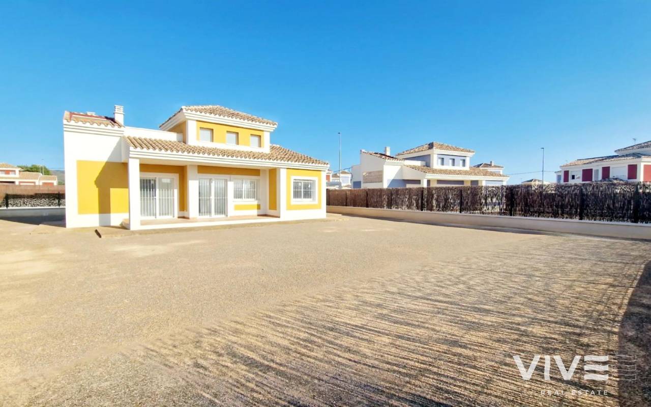 New Build Villas on Spacious 500+ m² Plots in Lorca New Mediterranean style Villas in a Secure and Tranquil Residential Area Discover an exclusive development of independent villas on plots of over 500m², strategically located in the southeast of Spain. These homes offer the perfect combination of countryside tranquility, proximity to the coast, and excellent road connections to major cities and airports. Nestled in a privileged setting on the Costa Cálida, this development benefits from year-round sunshine, making it an ideal location to enjoy the Mediterranean lifestyle. Spacious, Bright Homes with Private Gardens Designed for maximum comfort and relaxation, these villas feature open-plan living areas with large windows, seamlessly connecting indoor and outdoor spaces. The generous private garden offers the perfect setting for outdoor leisure, with the option to add a swimming pool and customize your landscaping. Choose from three villa models, available in one or two-story layouts, with 3 or 4 bedrooms and 2 or 3 bathrooms. Each home includes a private solarium, allowing residents to take full advantage of the beautiful surroundings. A Secure and Well-Equipped Community This gated urbanization offers a 24-hour security service with controlled access, ensuring peace of mind for all residents. Designed with green living in mind, the community includes: Two large landscaped parks for relaxation and family activities. Dedicated sports and play areas to promote an active lifestyle. Tree-lined streets and a 3.5 km cycle path running along the perimeter of the urbanization. A commercial zone at the entrance, which will feature a restaurant, supermarket, gas station, and other essential services. High-Quality Finishes for Maximum Comfort Each villa is built with top-quality materials and modern installations, including: Pre-installation for ducted air conditioning Pre-installation for natural gas Security entrance door Double-glazed Climalit windows Fully fenced community with 24-hour surveillance Prime Location – Close to the Coast and City Amenities Situated in a newly developed area of Lorca municipality, these villas offer a natural and peaceful environment while maintaining easy access to key locations: Lorca city center – 10 km Águilas beaches – 20 km Murcia-Corvera Airport – 70 km Alicante Airport – 130 km Shopping centers and restaurants – 10 km Find Your Ideal Home in Costa Cálida With 50 homes already completed and a total of 320 planned, this is your opportunity to secure a new mediterranean style villa in a thriving new community. Whether for a permanent residence, holiday home, or investment, these properties offer excellent value in a prime location. Contact us today to learn more and arrange a visit!