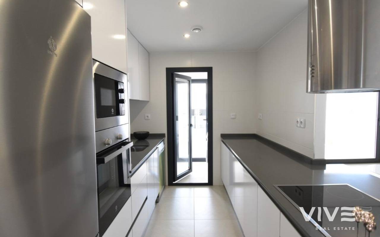 New Residential Development in San Miguel de Salinas Exclusive Apartments in a Unique Natural Environment Discover this new development in San Miguel de Salinas, an exclusive residential complex made up of 5 blocks of flats with spacious communal areas, designed to offer comfort and quality of life. This gated complex has a spectacular communal garden of almost 10,000 m², distributed over three levels and integrated with three communal swimming pools, surrounded by natural lawns and a carefully selected range of trees and plants. The homes have been designed to take advantage of natural light and unobstructed views, offering an ideal option both as a second home and for year-round living. Types of homes available In this exclusive residential complex, you can choose between: Ground floors with large private gardens. Intermediate floors with terraces of more than 20 m². Penthouses with terraces and private rooftop solarium. Currently available is Block 1, comprising 42 homes with excellent value for money. First Class Quality and Equipment All homes come fully equipped, including: Electrical appliances included in the kitchen. Fully equipped bathrooms, with furniture, screens and LED lighting system. Complete installation of ducted air conditioning. Parking space and storage room included in the price. We also have show flats in another similar project, so that you can see the quality of the finishes before delivery. Strategic Location on the Costa Blanca San Miguel de Salinas is a charming town in the Vega Baja del Segura region, just a few minutes from the best beaches and golf courses on the Costa Blanca. Surrounded by a privileged natural environment, the municipality offers a peaceful atmosphere and all essential services such as supermarkets, restaurants, health centres and schools. Distances to the Main Points of Interest Las Colinas and Campoamor Golf Courses - 7 km. Beaches of Orihuela Costa and Torrevieja - 10 km. Zenia Boulevard Shopping Centre - 9 km. Alicante Airport - 50 km. Murcia-Corvera Airport - 55 km. Your New Home Awaits in San Miguel de Salinas Whether you are looking for an investment on the Costa Blanca or a home to enjoy all year round, this development offers a perfect combination of luxury, comfort and unbeatable location. Contact us today for more information and to arrange a viewing.