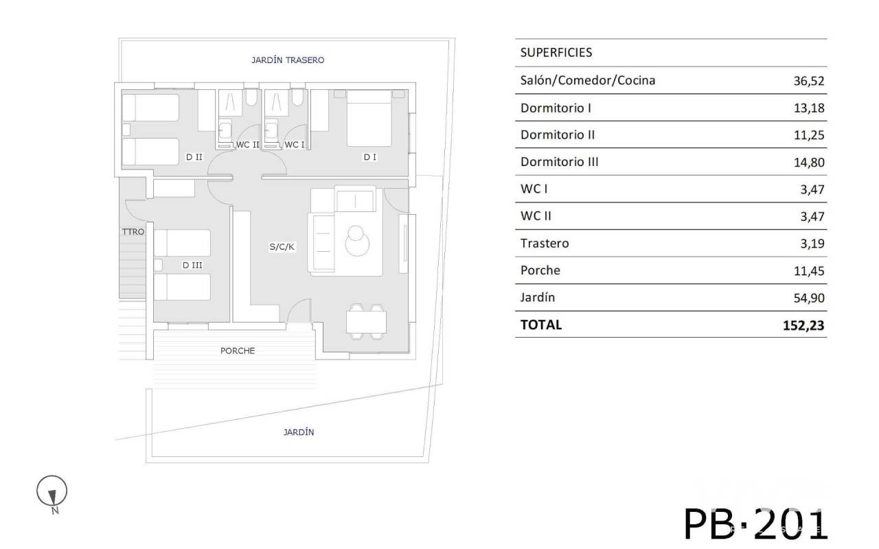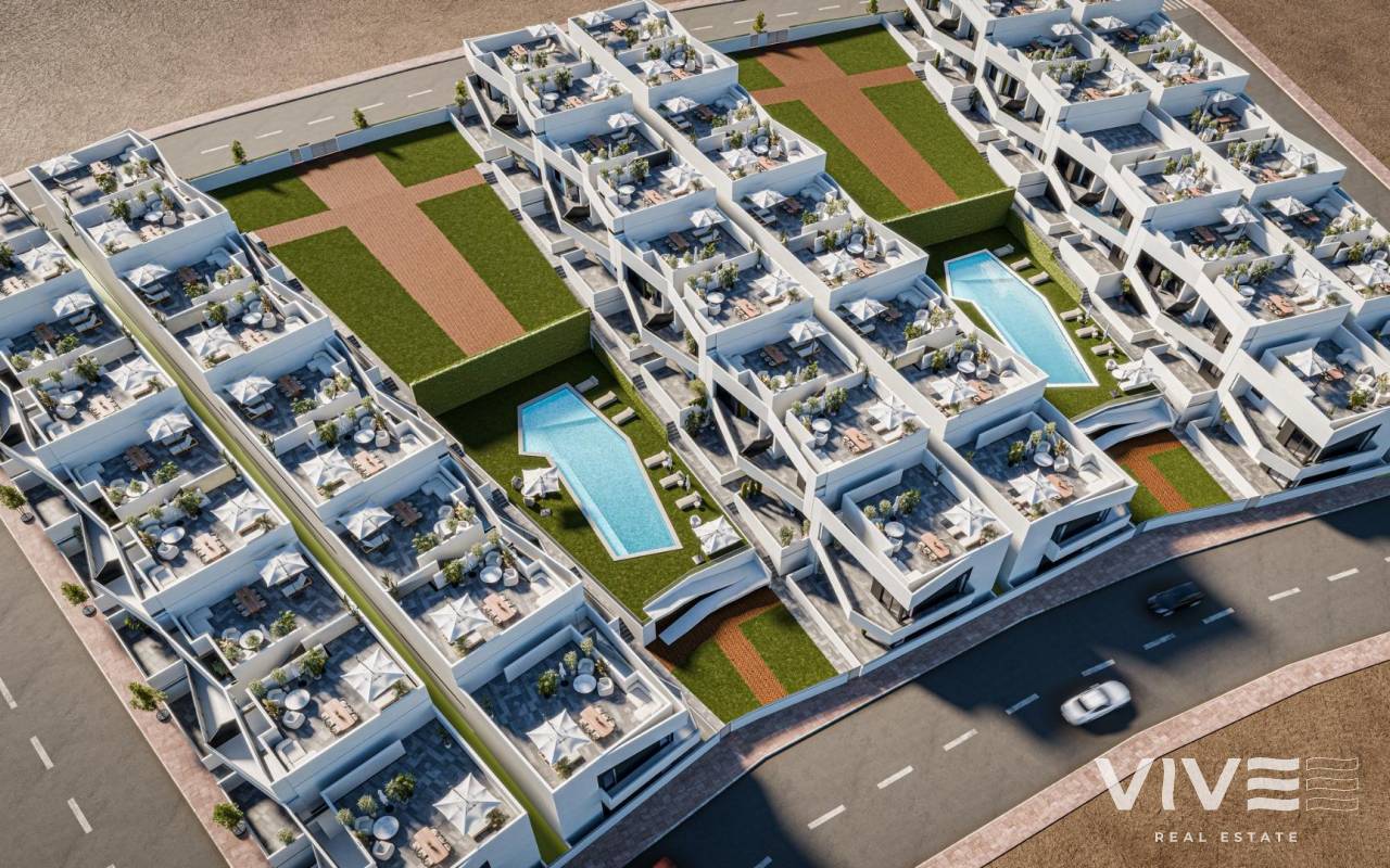 Newly built bungalows in San Miguel de Salinas with 2 communal swimming pools Mediterranean Lifestyle in a Natural Setting Discover this modern residential development of new-build bungalows in San Miguel de Salinas, a town in the south of the province of Alicante, in the Vega Baja del Segura region. This charming municipality combines proximity to the sea with the tranquillity of nature, making it an ideal place for both permanent residence and holidays. Housing Options for All Lifestyles The residential complex offers bungalow-style apartments with 2 or 3 bedrooms distributed in two options: Ground floor with private garden and storage room Upper floor with private solarium Each home has been designed with a modern and functional approach, providing comfort, natural light and outdoor spaces to enjoy the Mediterranean climate all year round. Communal Areas for Family Enjoyment This residential complex is completely enclosed and has excellent communal areas: 2 large communal swimming pools for adults and children Over 2,600 m² of landscaped green areas Children's play area These facilities make the residential complex an ideal place for families, couples and retirees looking for quality of life in a safe and relaxed environment. Modern Qualities and Energy Efficiency The homes feature high-quality materials and meticulous finishes: Fully fitted kitchen Exterior carpentry with thermal break and double glazing Reinforced entrance door Bathroom furniture included Pre-installation of split air conditioning in living room and bedrooms Excellent Location Close to Golf, Beaches and Services San Miguel de Salinas is strategically located near tourist and natural areas: Golf courses such as Vistabella, Las Colinas and Campoamor less than 10 km away Orihuela Costa beaches 11 km away Torrevieja and La Mata lagoons just 8 km away La Zenia Boulevard shopping centre 9 km away Alicante-Elche Airport 58 km away (35 minutes by car) Murcia International Airport 63 km away (1 hour by car) Your new home on the Costa Blanca These properties represent an excellent opportunity for those seeking quality, comfort and location. Contact us now for more information or to schedule your visit and take the first step towards your life on the Costa Blanca.