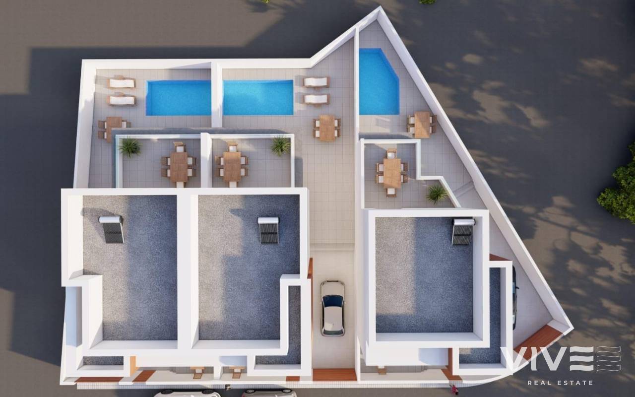 New Build Villas with Private Pool in Daya Nueva, Costa Blanca Modern Semi-Detached and Detached Villas with Excellent Design Discover this exclusive development of three newly built villas, both semi-detached and detached, located in the charming village of Daya Nueva, in the southern part of Alicante province. These stylish properties are designed with comfort, light, and privacy in mind, offering an exceptional living experience just minutes from the beaches of La Marina and Guardamar del Segura. Each villa features a bright and spacious living-dining area, an open-plan kitchen with a breakfast bar, three bedrooms, three full bathrooms, and a guest toilet. Enjoy the Mediterranean climate on the two upper terraces, relax by your private swimming pool, or park conveniently on your own plot. Comfort and Quality in Every Detail These homes have been designed to maximize natural light and outdoor living. Key features include: Private swimming pool and on-plot parking Two uncovered terraces on the upper floor Optional rooftop solarium for additional outdoor space (at extra cost) Fully furnished bathrooms with shower screens Ducted air conditioning pre-installation Automated aluminium shutters in bedrooms, kitchen, and bathrooms The open-concept ground floor blends the kitchen, dining, and lounge areas into a cohesive and bright living space that opens directly to the terrace and pool area — perfect for relaxing or entertaining. Prime Location Close to All Amenities Situated in a peaceful residential area of Daya Nueva, these villas are only a 3-minute walk from the village centre, where you’ll find shops, restaurants, and essential services. This quiet environment offers an ideal mix of village charm and coastal convenience. Distances to Key Points of Interest: Beaches of Guardamar del Segura and La Marina: 12 km (10 minutes) La Marquesa Golf (Ciudad Quesada): 9 km (10 minutes) Habaneras Shopping Centre (Torrevieja): 20 km (20 minutes) Alicante International Airport: 38 km (25 minutes) Vega Baja Hospital: 14 km (15 minutes) Your Ideal Costa Blanca Home Awaits These villas are perfect as a permanent residence, holiday retreat, or investment. With modern architecture, thoughtful design, and a peaceful yet well-connected location, this is a unique opportunity to own a quality home on the Costa Blanca. Contact us today for more information and to schedule your visit.
