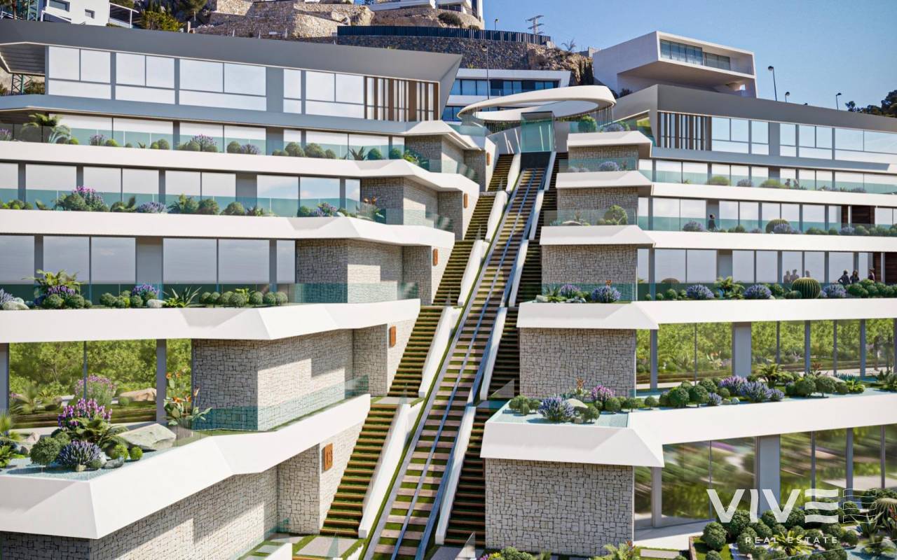Luxury beachfront apartments and villas in Mascarat, Calpe: Mediterranean living redefined Exclusive new-build development with sea views near the port of Mascarat, Calpe Discover a new level of coastal luxury with this exceptional property development located next to the picturesque port of Mascarat, between Calpe and Altea on the Costa Blanca. This exclusive project consists of 4 designer villas, 2 penthouses and 8 elegant flats, all with private pools and panoramic views of the Mediterranean Sea and the lively marina. Just 400 metres from the coast, this unique development combines modern architecture, top-quality finishes and an unbeatable location to enjoy an extraordinary lifestyle. Privileged location with excellent connections and services Strategically located just 55 km from Alicante International Airport, the development is easily accessible by car in less than 50 minutes. The picturesque marina of Mascarat is just 350 metres away, while the nearest supermarket is only 1.1 km from the residence. The town centres of Calpe and Altea, known for their historic charm, restaurants, boutiques and cultural events, are just a few minutes away. Golf lovers will find the famous Altea Golf Club just 8 km away, and the prestigious Marina Greenwich yacht club is practically on the doorstep. Elegant apartments with private pool and sea views The development offers 6 exclusive apartments, each with spacious terraces, beautiful gardens and a private pool. All apartments have three bedrooms, two bathrooms and an additional guest toilet. All properties have two allocated parking spaces in the secure underground garage, as well as access to a large semi-Olympic communal swimming pool and a panoramic funicular railway connecting the different levels of the community. Each apartment has a basement area with a laundry room and storage room connected to the property. Wonderful duplex penthouses Gems in the heights, with large terraces, private access via a private lift and all the comforts of a villa, but with the magic of the most impressive panoramic views. They have 4 bedrooms, 3 bathrooms and a guest toilet. Private swimming pool and basement space with laundry room and storage room and access to the property from the private lift. Designer villas with premium features and total privacy The 4 luxurious villas have four bedrooms, three bathrooms spread over 2 floors, with open and bright interiors that flow effortlessly into spacious outdoor areas. Each villa has a lift and private swimming pool, its own garage and access to the shared resort-style facilities. High-quality finishes and architectural attention to detail ensure that each home offers maximum comfort, elegance and privacy. High-end specifications and home automation technology Entrance door with reinforced security Lacquered aluminium exterior carpentry with thermal break Motorised blackout blinds with home automation control Designer kitchens with Silestone worktops and integrated appliances Aerothermal underfloor heating and ducted air conditioning Home automation for lighting, air conditioning, shading and leak detection Two private parking spaces per unit Experience the Mediterranean lifestyle in Calpe Experience unique moments by the sea, with unrivalled views and access to one of the most beautiful marinas on the Costa Blanca. Whether as a permanent residence, a holiday retreat or an investment, this development offers an exclusive combination of luxury, nature and lifestyle. Contact us today to arrange a private viewing and secure your dream home by the sea.