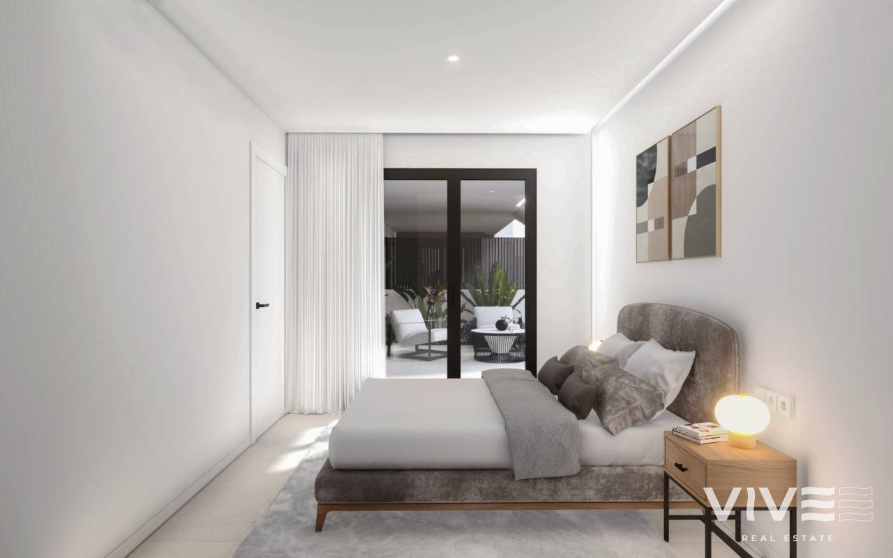 New Build Bungalows with Private Pool in San Pedro del Pinatar Exclusive Boutique Residences near the Beach This limited collection of 12 new build bungalows in San Pedro del Pinatar offers the perfect balance of modern design, Mediterranean lifestyle, and unbeatable location. Just 600 meters from the beach and within walking distance of shops, restaurants, and leisure facilities, these homes are ideal as a holiday retreat, investment, or permanent residence on the Costa Cálida. San Pedro del Pinatar is a charming coastal town situated between the Mar Menor and the Mediterranean Sea, known for its sailing clubs, natural mud baths in Lo Pagán, and vibrant promenade. With excellent connections, the town is only 30 km from Murcia–Corvera Airport, 75 km from Alicante Airport, and a short drive from Dos Mares Shopping Center (5 km) and several top golf courses within 10–20 km. Choose Between Garden or Penthouse Models This boutique project features two carefully designed layouts: Ground Floor Bungalows: Offering a front terrace, private pool, laundry area, rear patio, and on-plot parking. Penthouse Bungalows: Including a large terrace, private rooftop solarium with pool, plus ground-floor storage and a private parking space. Both models include 2 bedrooms and 2 bathrooms, with the master bedroom featuring an en-suite bathroom. The open-plan living and dining area connects seamlessly with a fully equipped kitchen, enhanced by large sliding doors that flood the interior with natural light. High-Quality Features for Comfort and Style Every home in this development is built with premium finishes to ensure both elegance and practicality. Key features include: Fully fitted kitchen with appliances (induction hob, oven, dishwasher, fridge/freezer) Pre-installed ducted air conditioning Internal and external LED lighting Electric shutters for added convenience Bathrooms fitted with furniture, mirrors, and lighting A Lifestyle by the Sea Living in San Pedro del Pinatar means enjoying a relaxed coastal atmosphere with all modern amenities nearby. The marina, just 1 km away, is perfect for sailing enthusiasts, while the calm waters of the Mar Menor provide year-round opportunities for swimming and water sports. Reserve Your Dream Bungalow in Costa Cálida With delivery scheduled for mid-2027, this is the perfect moment to secure your new home by the sea. Contact us today for more information or to arrange a visit, and start living the Mediterranean lifestyle you deserve.