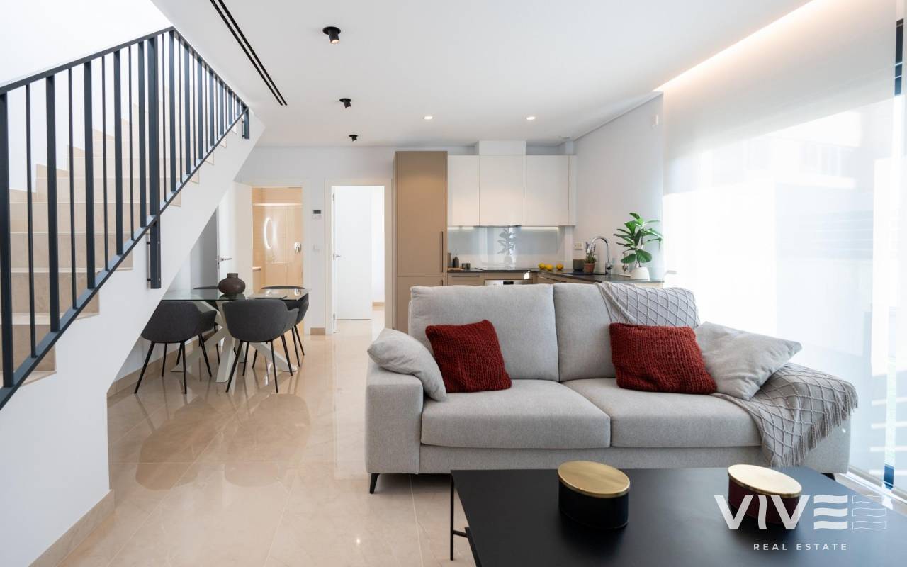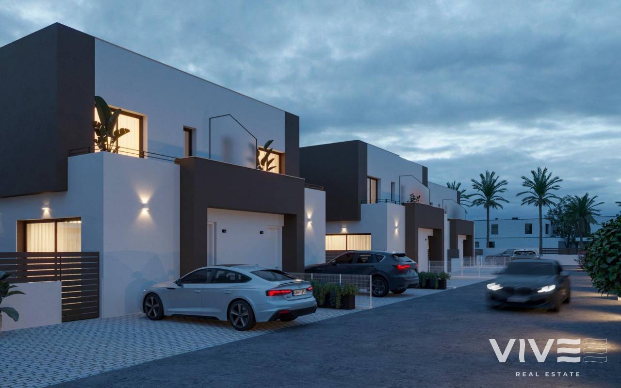 New Semi-Detached Villas by the Sea in La Marina - El Pinet Beach Exclusive Mediterranean Living Near the Beach This new residential development of semi-detached villas in La Marina, just 500 meters from El Pinet Beach, offers an unbeatable combination of modern design and a privileged natural environment. Located next to the Las Salinas Natural Park, residents can enjoy golden sandy beaches, crystal-clear waters, protected dunes, and a centuries-old pine forest – the perfect place to live all year round or enjoy as a holiday retreat. Modern Mediterranean Villas Designed for Comfort The villas are distributed over two floors, featuring: 3 spacious bedrooms and 3 bathrooms Ground floor with open-plan kitchen and living room, one bedroom, one bathroom, and access to the private garden with parking space First floor with two bedrooms, both ensuite, and a large terrace connected to the master bedroom Each home has been designed with bright, comfortable interiors and high-quality finishes, creating a unique and welcoming atmosphere. Fully Equipped with Premium Features These villas are delivered with: Fully fitted kitchen with induction hob, extractor hood, oven, fridge and pre-installation for dishwasher Modern cabinetry with premium finishes Fully installed ducted air conditioning Electric shutters Community pool surrounded by landscaped gardens A Prime Location on the Costa Blanca Living in La Marina means enjoying all the conveniences of a well-serviced town while being surrounded by nature and the Mediterranean Sea. Within walking distance you will find shops, restaurants, and essential services. Distances to key points of interest: El Pinet Beach: 500 m Elche city: 17 km Alicante-Elche International Airport: 22 km Golf courses (La Marquesa, El Plantío): 15–20 km Alicante city and port: 30 km The Perfect Coastal Lifestyle Whether you are looking for a permanent residence, a second home, or a smart investment, these villas in El Pinet offer a lifestyle marked by sea, nature, and modern comfort. With year-round sunshine and a privileged location, La Marina is one of the most desirable places on the Costa Blanca. Contact us today to arrange a visit and secure your dream villa by the Mediterranean.