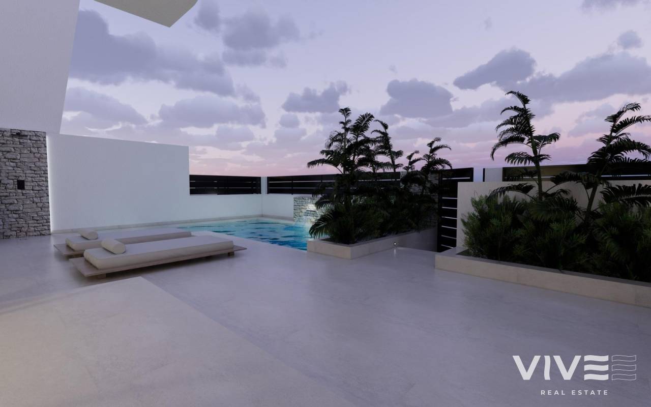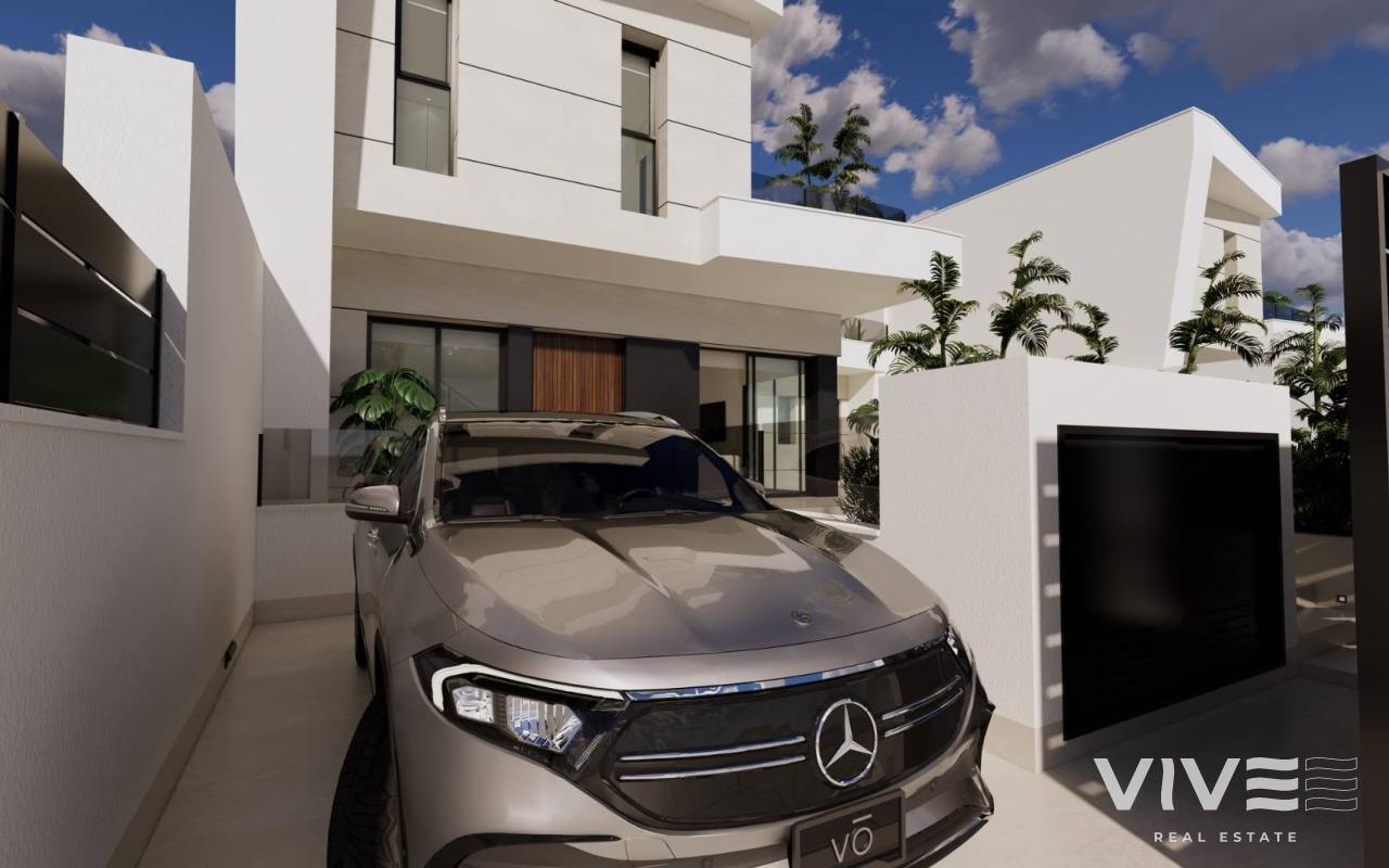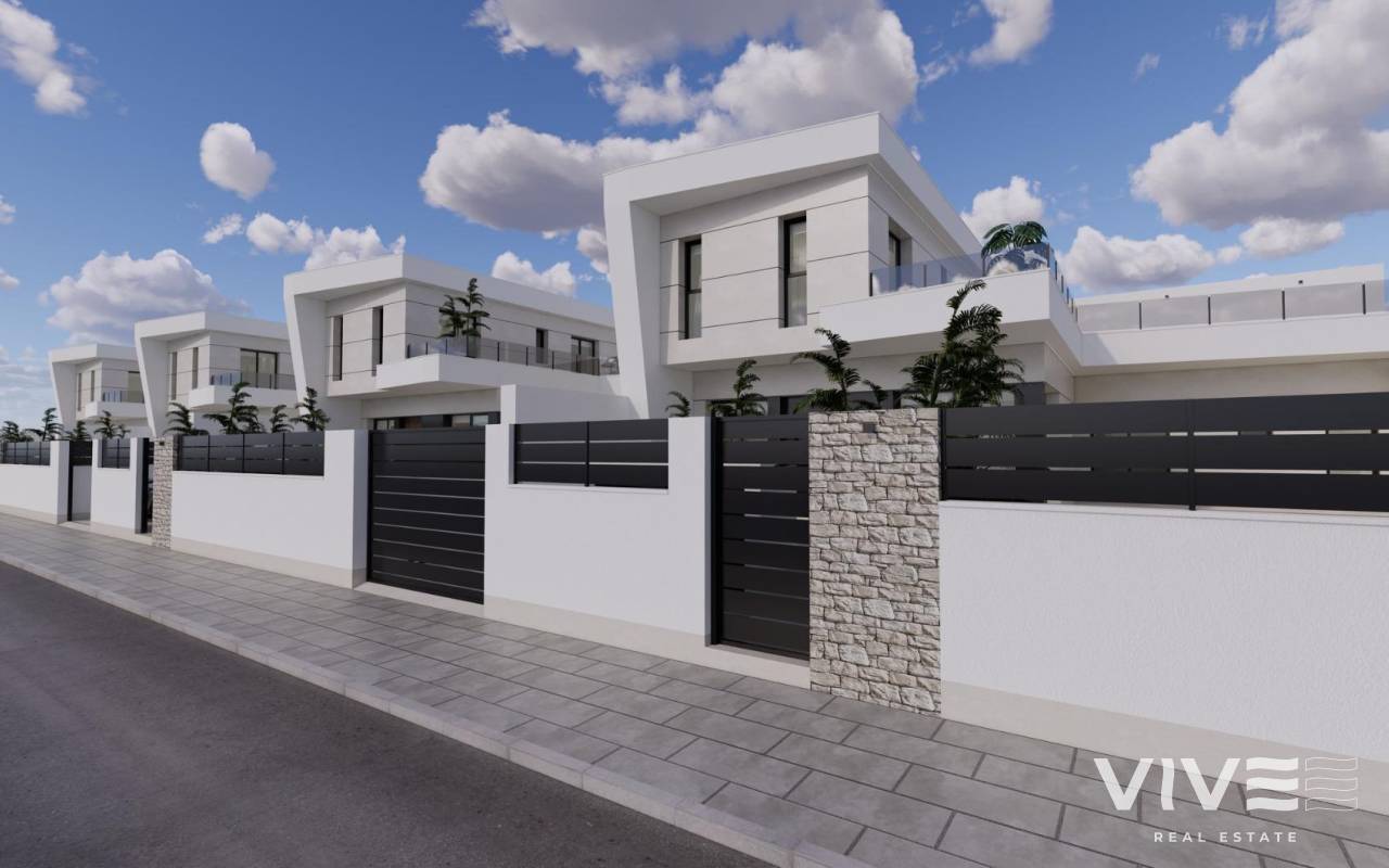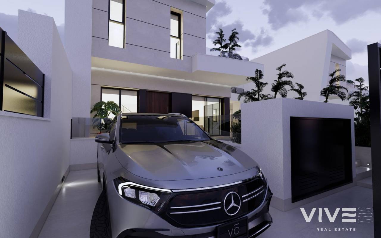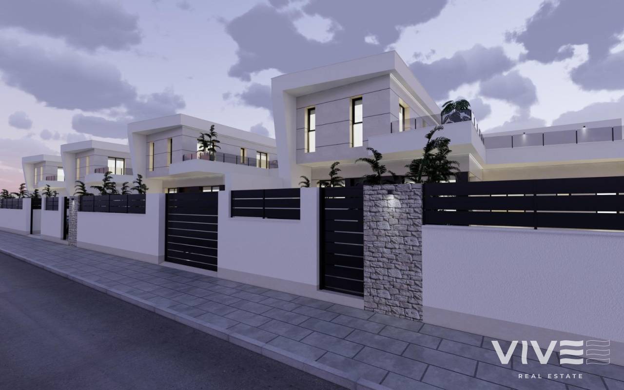 Modern New Build Villas in Dolores, Alicante Contemporary Living in the Heart of the Vega Baja Discover this exclusive new build villa development in Dolores, a charming town in the Vega Baja del Segura region, south of Alicante. Known for its traditional Spanish character and surrounded by lush countryside, Dolores offers a peaceful lifestyle while providing all daily amenities within walking distance — shops, restaurants, schools, and local services. Situated just 12 km from the beaches of La Marina and Guardamar del Segura, and with easy access to the AP-7 motorway, this residential area is perfectly connected to the main coastal towns of the Costa Blanca. Elegant Modern Villas with Private Pool These modern two-story villas have been designed for comfort, functionality, and style. On the ground floor, you’ll find a bright open-plan kitchen connected to the living-dining area, with large sliding doors opening directly to the terrace and private garden with swimming pool. The ground floor also features one bedroom with an ensuite bathroom, a guest toilet, and a convenient outdoor laundry area. On the first floor, there are two additional bedrooms, a bathroom, and access to a large 60 m2 open terrace, perfect for sunbathing or relaxing while enjoying the Mediterranean climate. Each home includes private parking inside the plot. Quality Finishes and Modern Comfort Built with high-quality materials and contemporary design, these villas come fully equipped for year-round living. Main features include: Exterior carpentry with thermal bridge break Motorized blinds Hot water system powered by aerothermal energy Ducted air conditioning fully installed Private swimming pool Private parking and landscaped garden The interiors combine elegance and functionality, maximizing natural light and offering an exceptional living environment with a strong connection between indoor and outdoor spaces. Prime Location Close to Everything Dolores enjoys a strategic location, providing a balance between tranquility and accessibility. Key distances: Beaches of La Marina and Guardamar del Segura: 12 km Alicante Airport (Elche-El Altet): 30 km (25 minutes by car) Murcia-Corvera Airport: 70 km (1 hour by car) Golf Courses: 15 km Alicante city: 40 km Live the Mediterranean Lifestyle in Dolores These new build villas in Dolores offer the perfect combination of modern design, comfort, and proximity to the coast. Ideal for both permanent residence and holiday living, they provide a serene Mediterranean lifestyle surrounded by nature and convenience. Contact us today to arrange a viewing and make your dream home in Dolores a reality.