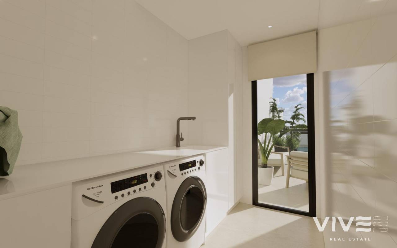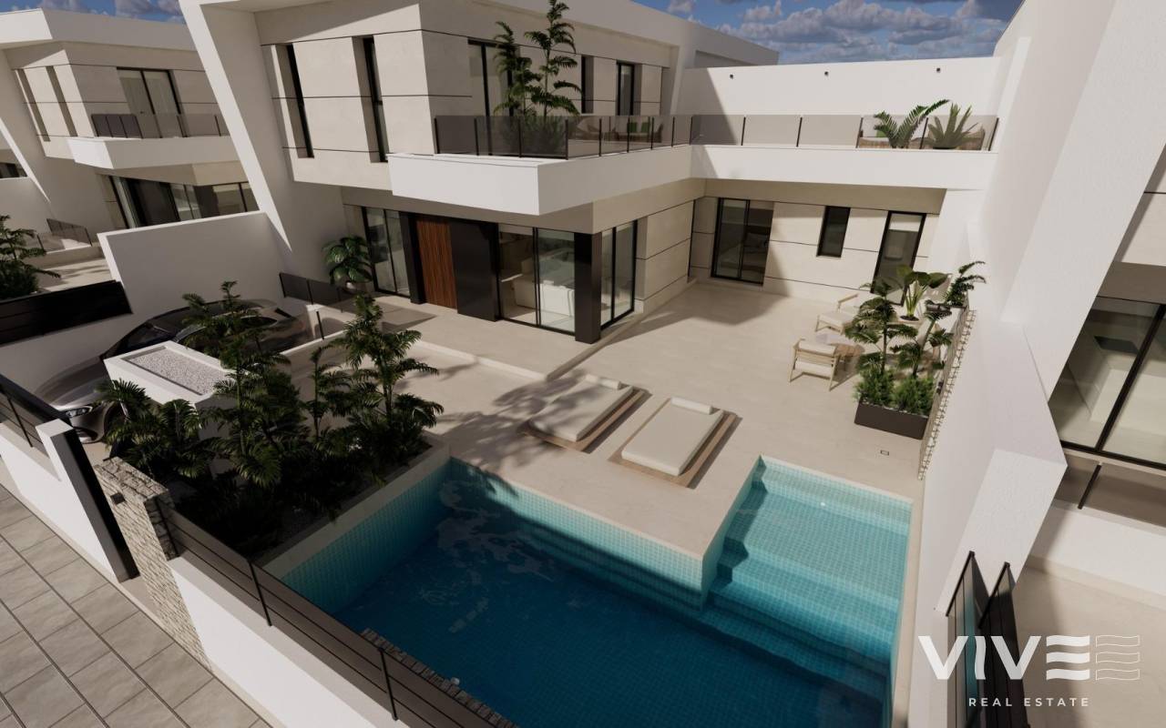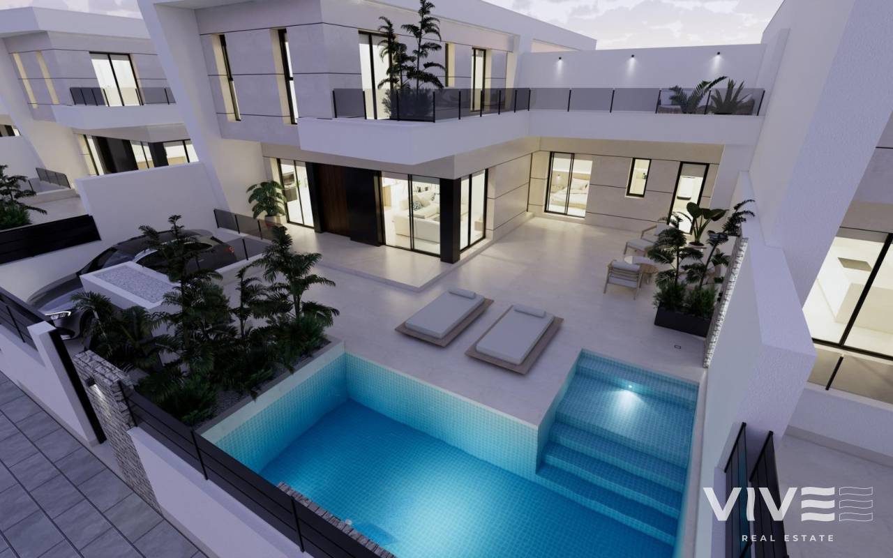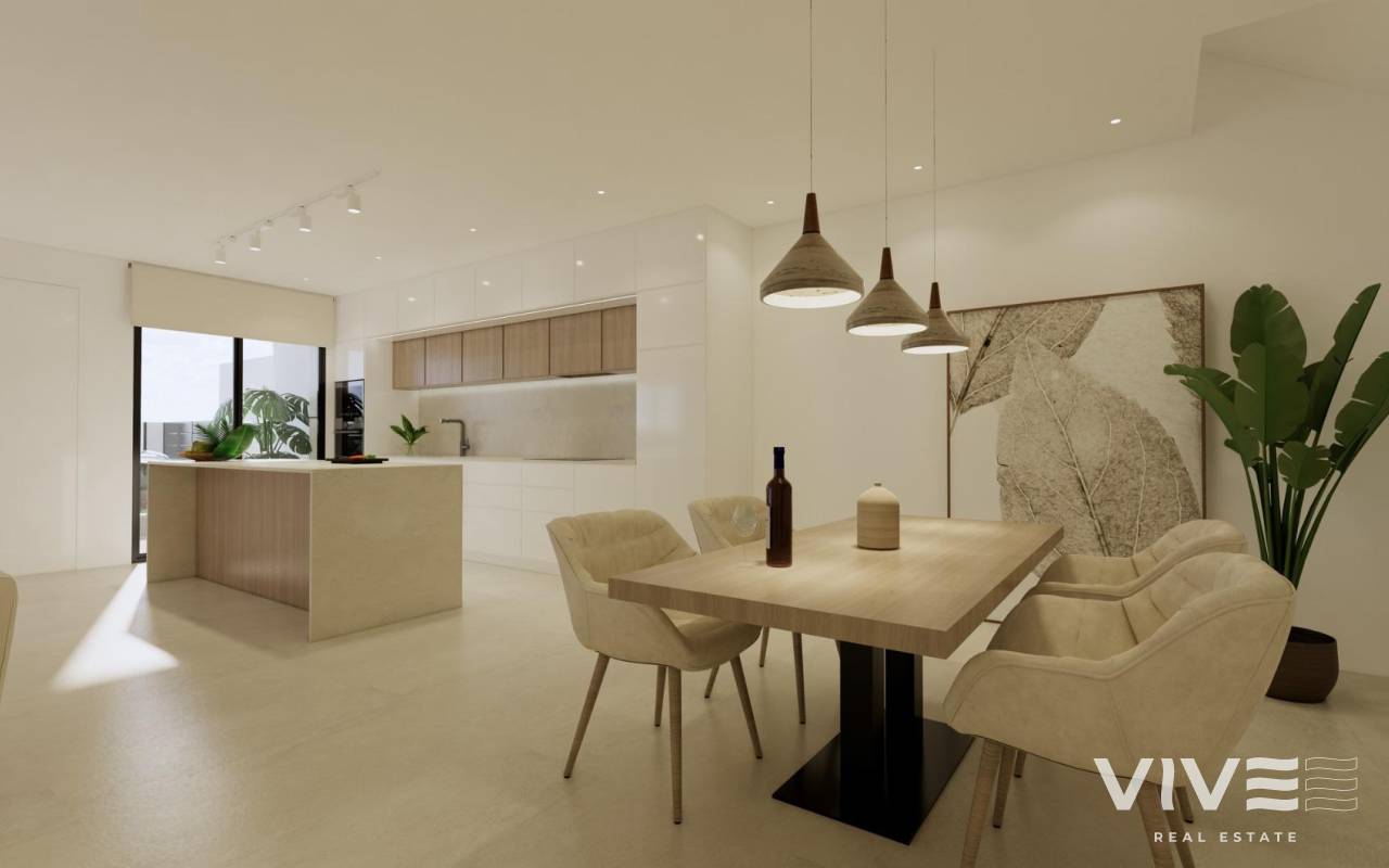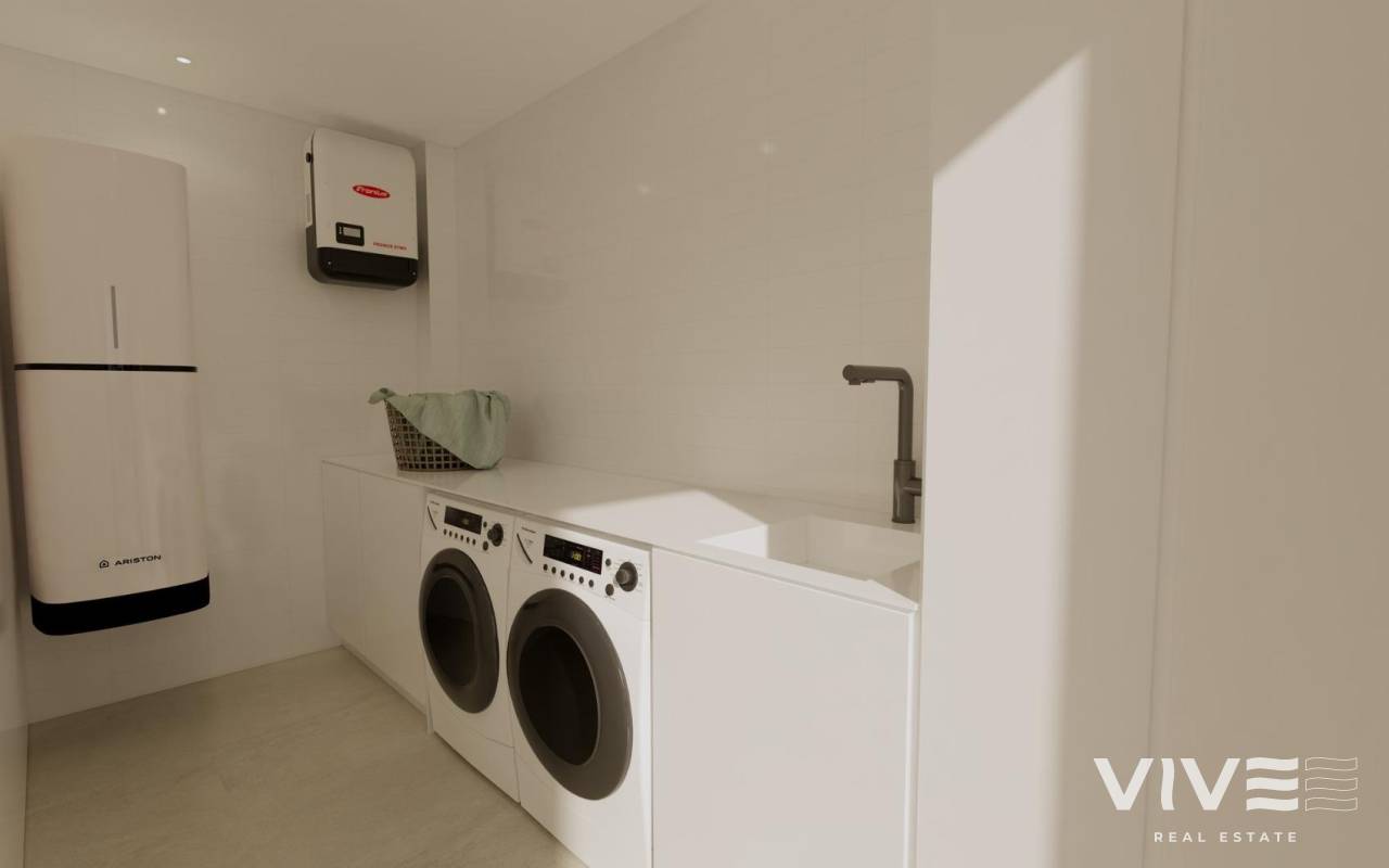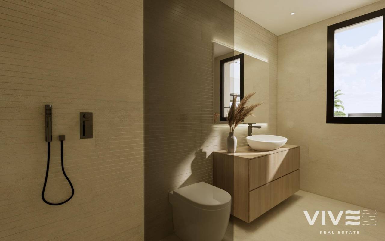 Modern New Build Villas in Dolores, Alicante Contemporary Living in the Heart of the Vega Baja Discover this exclusive new build villa development in Dolores, a charming town in the Vega Baja del Segura region, south of Alicante. Known for its traditional Spanish character and surrounded by lush countryside, Dolores offers a peaceful lifestyle while providing all daily amenities within walking distance — shops, restaurants, schools, and local services. Situated just 12 km from the beaches of La Marina and Guardamar del Segura, and with easy access to the AP-7 motorway, this residential area is perfectly connected to the main coastal towns of the Costa Blanca. Elegant Modern Villas with Private Pool These modern two-story villas have been designed for comfort, functionality, and style. On the ground floor, you’ll find a bright open-plan kitchen connected to the living-dining area, with large sliding doors opening directly to the terrace and private garden with swimming pool. The ground floor also features one bedroom with an ensuite bathroom, a guest toilet, and a convenient outdoor laundry area. On the first floor, there are two additional bedrooms, a bathroom, and access to a large 60 m2 open terrace, perfect for sunbathing or relaxing while enjoying the Mediterranean climate. Each home includes private parking inside the plot. Quality Finishes and Modern Comfort Built with high-quality materials and contemporary design, these villas come fully equipped for year-round living. Main features include: Exterior carpentry with thermal bridge break Motorized blinds Hot water system powered by aerothermal energy Ducted air conditioning fully installed Private swimming pool Private parking and landscaped garden The interiors combine elegance and functionality, maximizing natural light and offering an exceptional living environment with a strong connection between indoor and outdoor spaces. Prime Location Close to Everything Dolores enjoys a strategic location, providing a balance between tranquility and accessibility. Key distances: Beaches of La Marina and Guardamar del Segura: 12 km Alicante Airport (Elche-El Altet): 30 km (25 minutes by car) Murcia-Corvera Airport: 70 km (1 hour by car) Golf Courses: 15 km Alicante city: 40 km Live the Mediterranean Lifestyle in Dolores These new build villas in Dolores offer the perfect combination of modern design, comfort, and proximity to the coast. Ideal for both permanent residence and holiday living, they provide a serene Mediterranean lifestyle surrounded by nature and convenience. Contact us today to arrange a viewing and make your dream home in Dolores a reality.