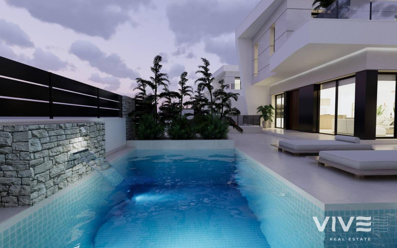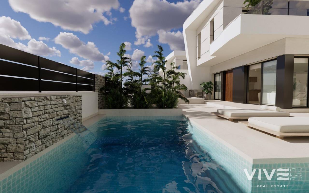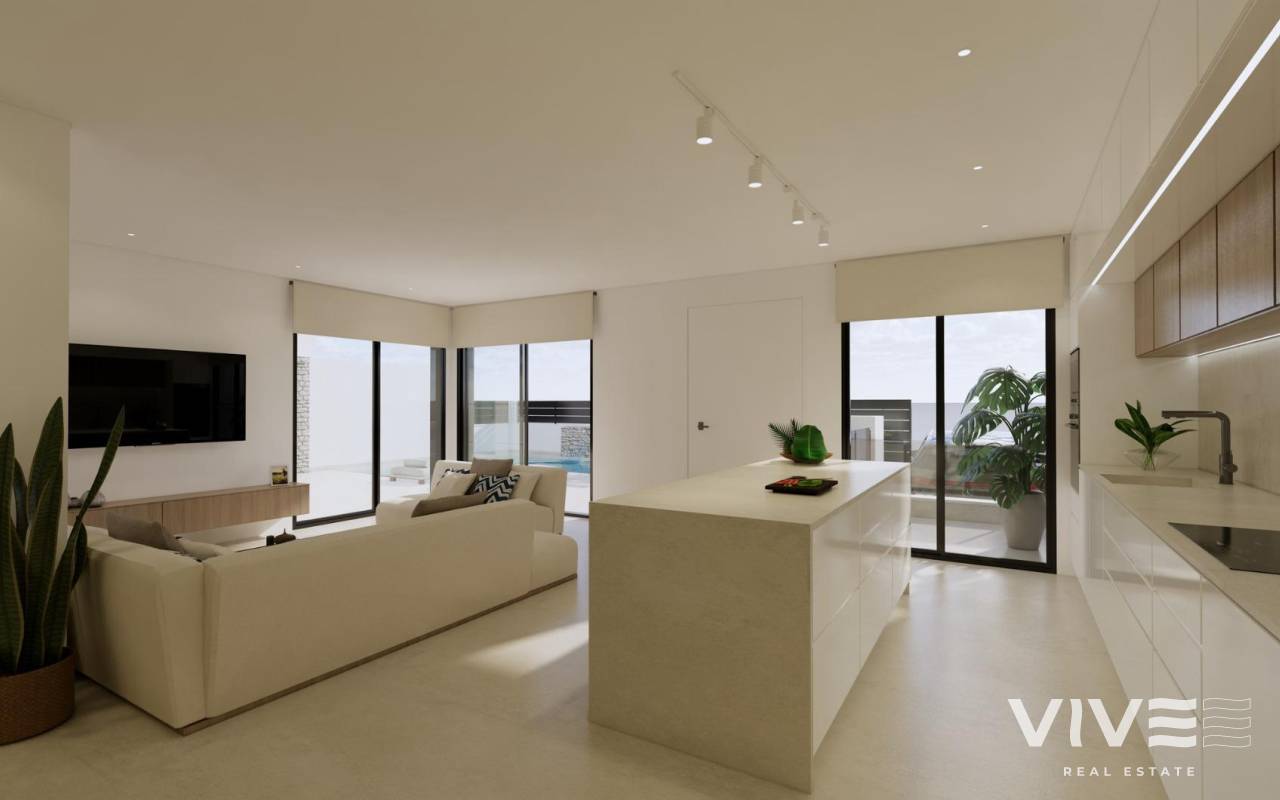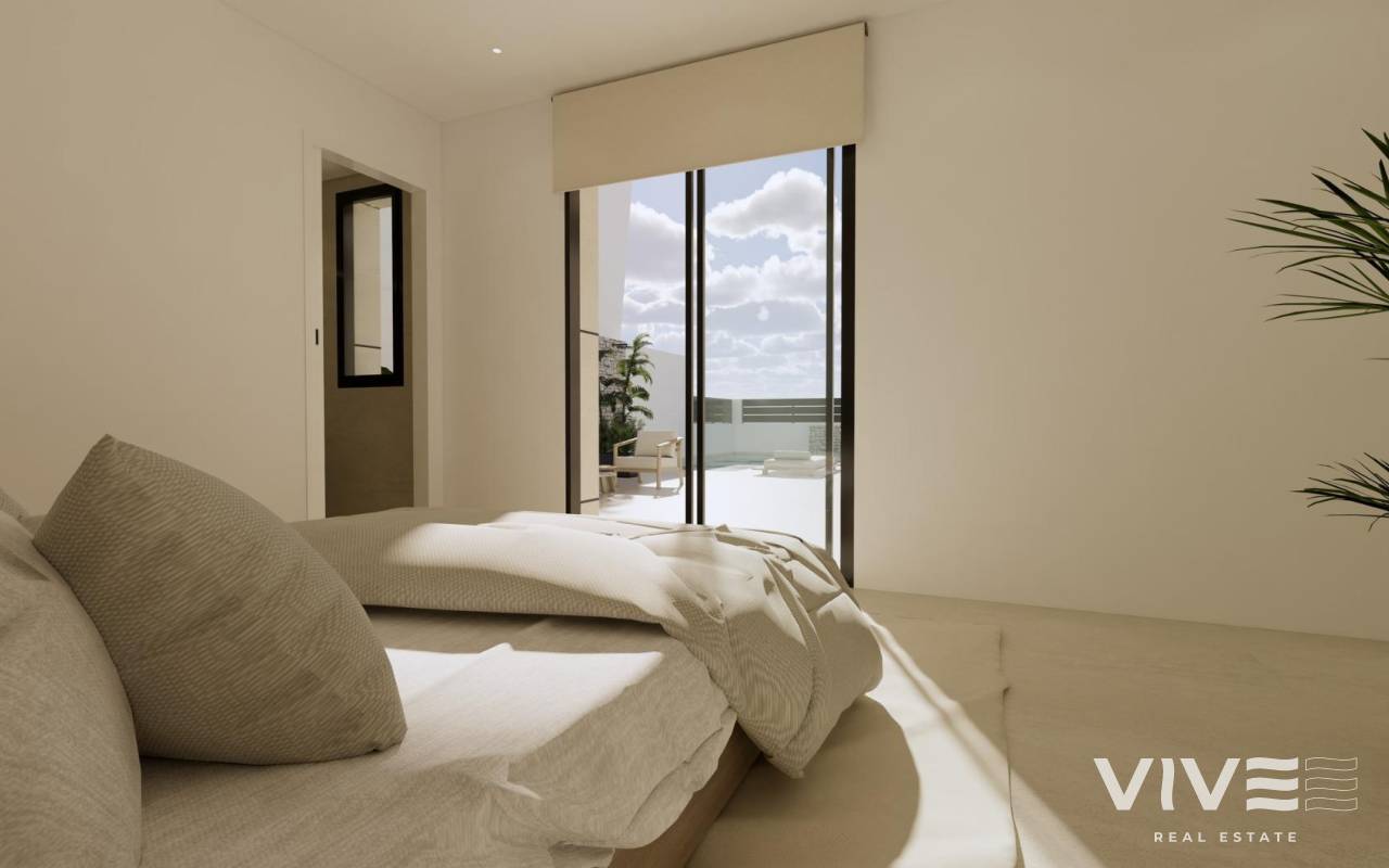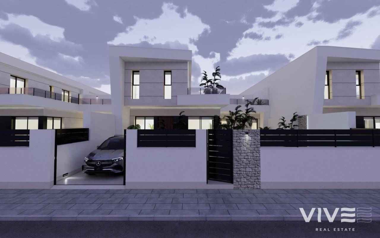 Modern New Build Villas in Dolores, Alicante Contemporary Living in the Heart of the Vega Baja Discover this exclusive new build villa development in Dolores, a charming town in the Vega Baja del Segura region, south of Alicante. Known for its traditional Spanish character and surrounded by lush countryside, Dolores offers a peaceful lifestyle while providing all daily amenities within walking distance — shops, restaurants, schools, and local services. Situated just 12 km from the beaches of La Marina and Guardamar del Segura, and with easy access to the AP-7 motorway, this residential area is perfectly connected to the main coastal towns of the Costa Blanca. Elegant Modern Villas with Private Pool These modern two-story villas have been designed for comfort, functionality, and style. On the ground floor, you’ll find a bright open-plan kitchen connected to the living-dining area, with large sliding doors opening directly to the terrace and private garden with swimming pool. The ground floor also features one bedroom with an ensuite bathroom, a guest toilet, and a convenient outdoor laundry area. On the first floor, there are two additional bedrooms, a bathroom, and access to a large 60 m2 open terrace, perfect for sunbathing or relaxing while enjoying the Mediterranean climate. Each home includes private parking inside the plot. Quality Finishes and Modern Comfort Built with high-quality materials and contemporary design, these villas come fully equipped for year-round living. Main features include: Exterior carpentry with thermal bridge break Motorized blinds Hot water system powered by aerothermal energy Ducted air conditioning fully installed Private swimming pool Private parking and landscaped garden The interiors combine elegance and functionality, maximizing natural light and offering an exceptional living environment with a strong connection between indoor and outdoor spaces. Prime Location Close to Everything Dolores enjoys a strategic location, providing a balance between tranquility and accessibility. Key distances: Beaches of La Marina and Guardamar del Segura: 12 km Alicante Airport (Elche-El Altet): 30 km (25 minutes by car) Murcia-Corvera Airport: 70 km (1 hour by car) Golf Courses: 15 km Alicante city: 40 km Live the Mediterranean Lifestyle in Dolores These new build villas in Dolores offer the perfect combination of modern design, comfort, and proximity to the coast. Ideal for both permanent residence and holiday living, they provide a serene Mediterranean lifestyle surrounded by nature and convenience. Contact us today to arrange a viewing and make your dream home in Dolores a reality.