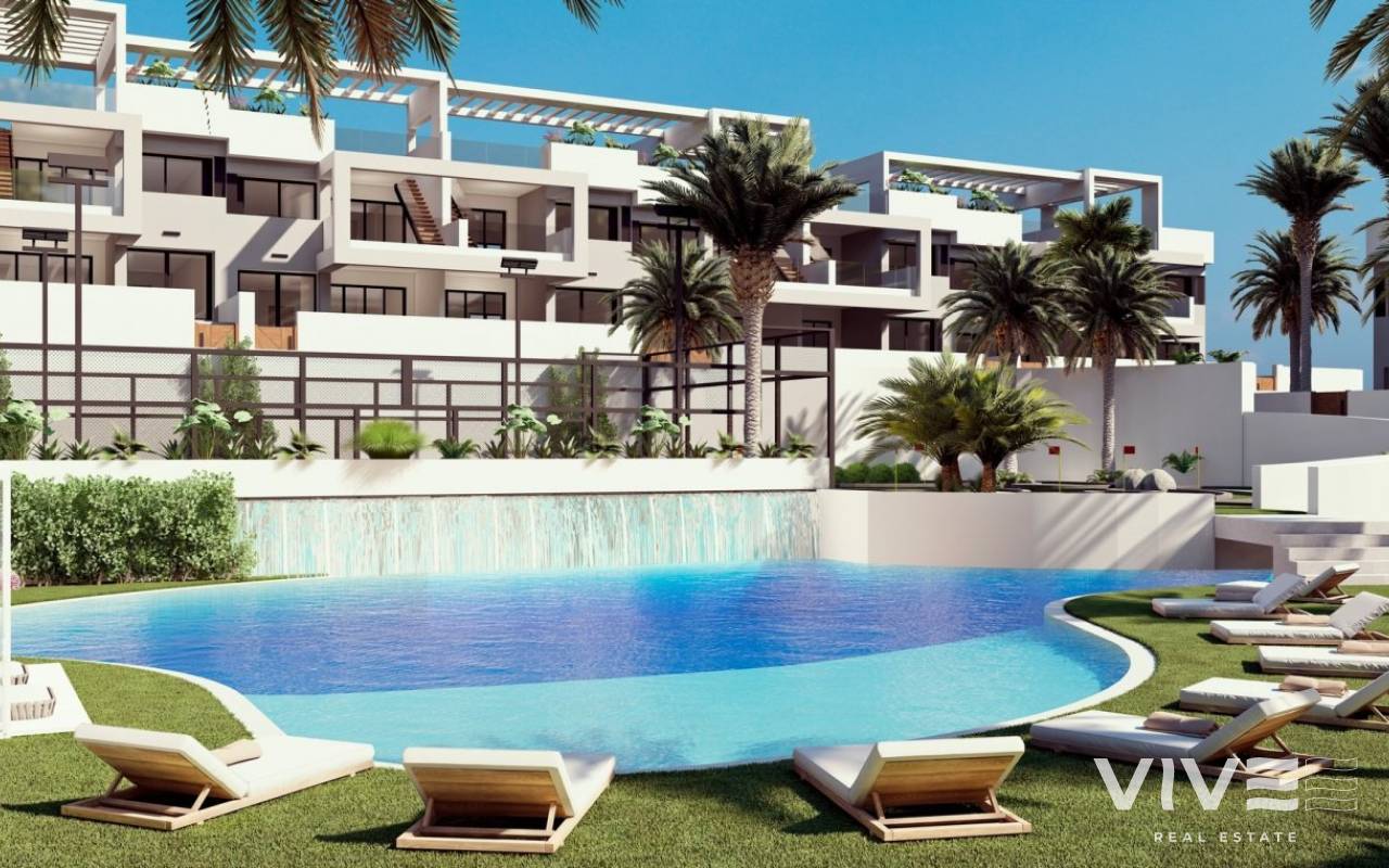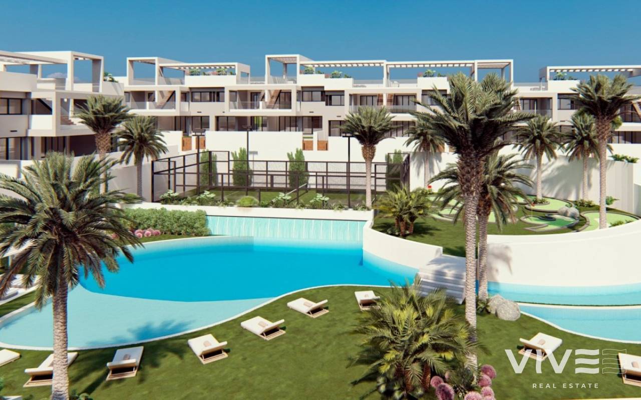 NEW BUILD RESIDENTIAL OF BUNGALOW APARTMENTS IN LOS BALCONES New Build UNIQUE residential complex in Los Balcones. Residential consist of 136 luxury bungalow apartments built with top quality materials. Each one has magical views of the Laguna Rosa de Torrevieja and the Mediterranean Sea. The houses have more than 131m2 distributed in a spacious living-dining room with an open-plan kitchen, 2 large bedrooms and 2 full bathrooms. You can choose between ground floor bungalows with their 2 large private terraces to enjoy the climate of the Costa Blanca. Or first floor bungalows of 178m2 with its 85m2 solarium with panoramic views of the Laguna Rosa and the Mediterranean Sea Complex offers idyllic landscaped common areas with 3 swimming pool areas, Jacuzzi areas, fitness area, paddle tennis court, mini golf, children’s area, charging point for electric vehicles… and much more! Its Premium facilities and green areas will allow you to enjoy with your family and friends the 320 days of sunshine that the Costa Blanca offers. Los Balcones located just outside Torrevieja with all accessible services, just 5 minutes from Playa de los Náufragos, supermarkets, the school and the La Zenia Boulevard Shopping Centre, and a minute from Torrevieja University Hospital. Complex located 40 minutes from Alicante airport and 1 hour Murcia - Corvera airport.