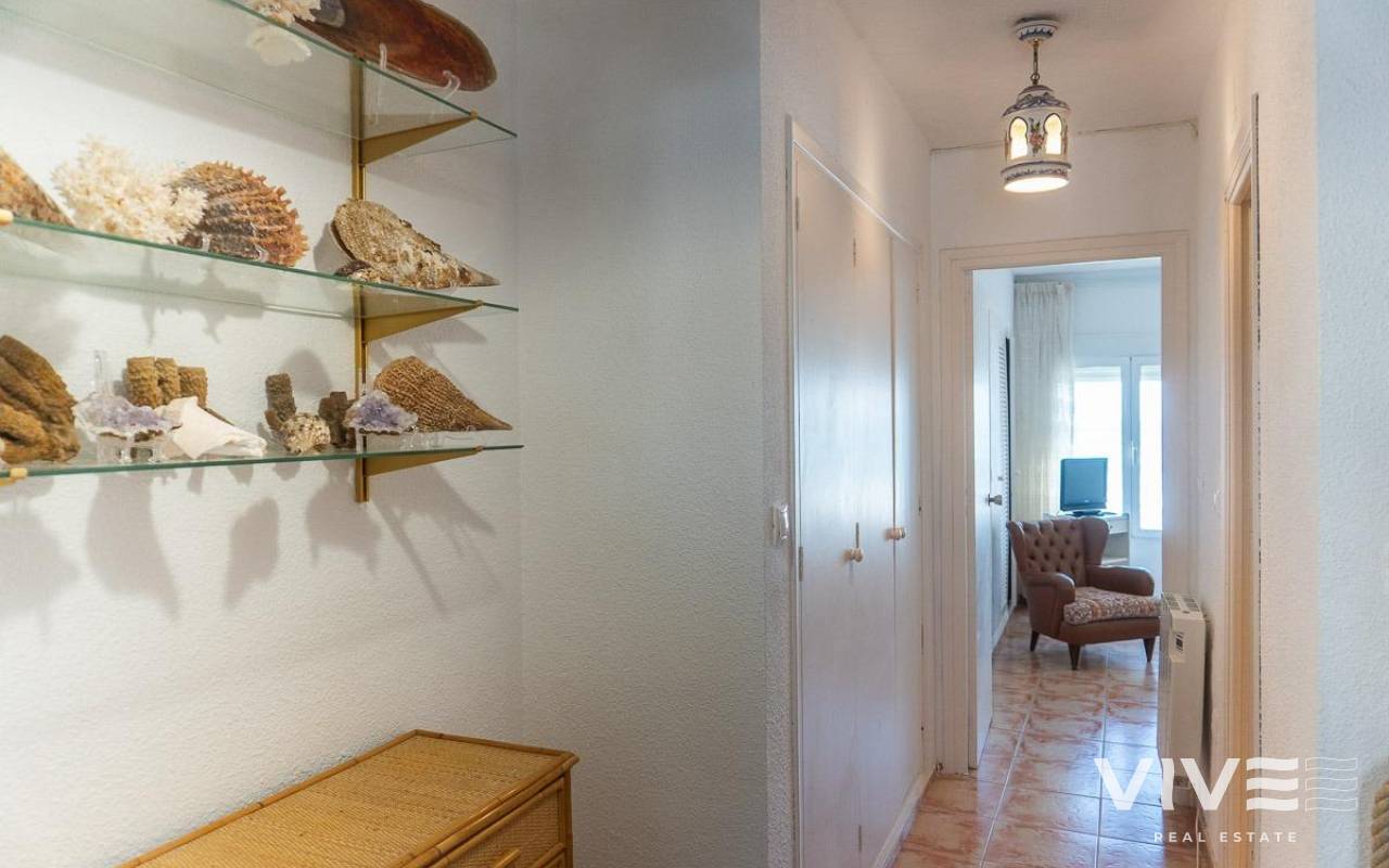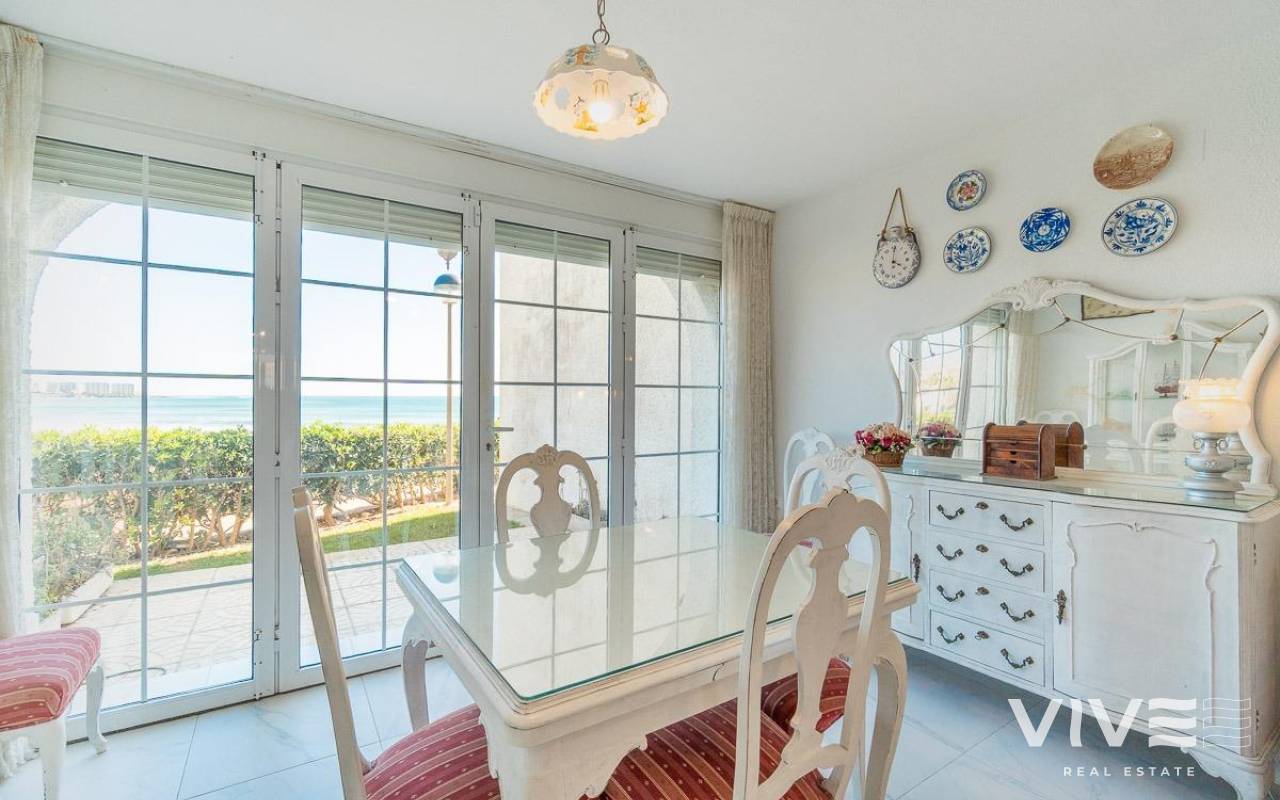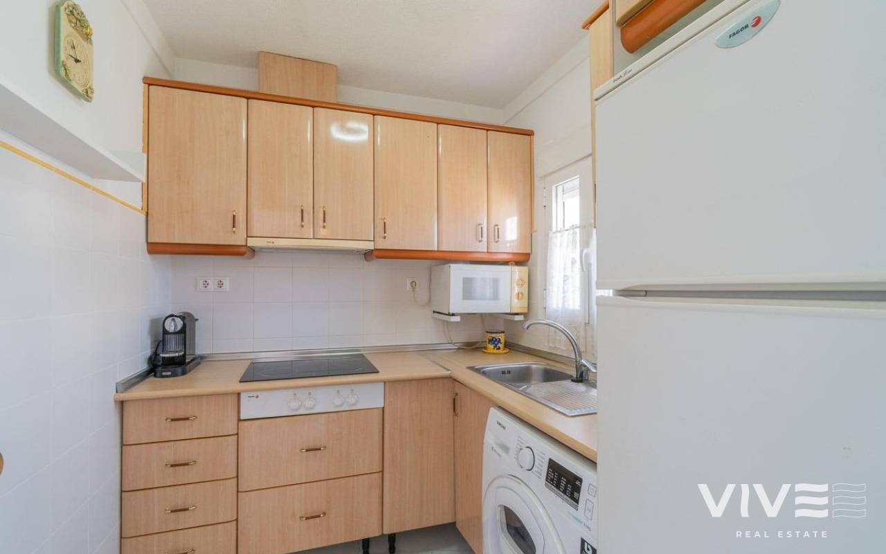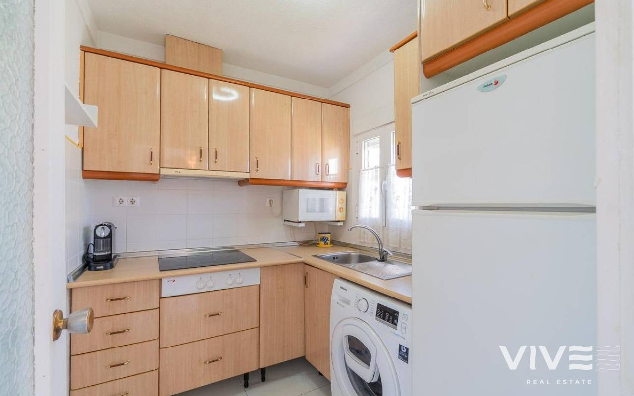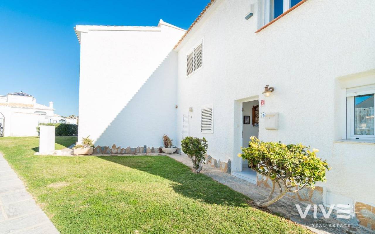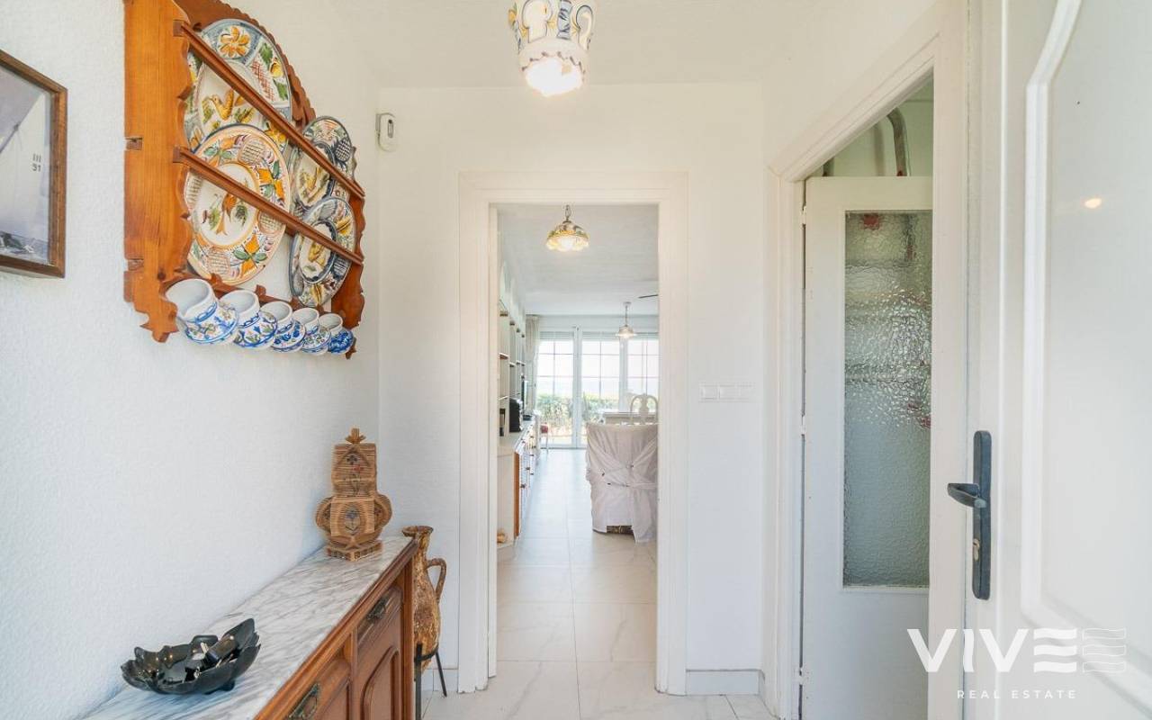 Discover a unique gem on the seafront in the prestigious area of Playa Flamenca, where properties rarely come onto the market due to its privileged cliffside location.. . This charming townhouse, with 90 m2 built, offers an unparalleled Mediterranean lifestyle. On the ground floor, you will find a spacious living room filled with natural light, featuring a large front window with direct access to the garden, where you can enjoy open views and the soothing sound of the sea. The kitchen is independent, practical, and perfectly suited for everyday living. At the entrance, there is also a cozy private garden that adds a welcoming touch.. . Upstairs, there are two spacious double bedrooms. The master bedroom is truly exceptional: imagine waking up and enjoying sea views directly from your bed. This floor also includes a fully equipped bathroom.. . The property is part of an exclusive residential complex with a communal swimming pool, perfect for enjoying the Mediterranean climate all year round. In this highly sought-after area, where properties are rarely available, this home represents a unique opportunity both as a permanent residence or an investment.. . Living here means embracing a seafront lifestyle in one of the most desirable locations in Orihuela Costa.. . A truly exceptional property where the sea becomes part of your home.. . Price: €390,000. Taxes and purchase costs not included (according to applicable regulations). A detailed breakdown of additional costs will be provided prior to reservation.