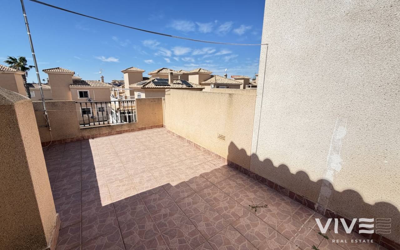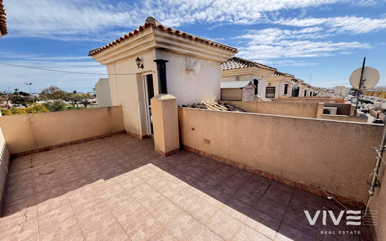 South-Facing 2-Bedroom Townhouse in Los Altos This well-presented south-facing townhouse is ideally located in the sought-after area of Los Altos, offering comfortable living spaces and excellent outdoor areas. The property features both front and rear gardens, perfect for enjoying outdoor living throughout the day. On the ground floor, you will find a spacious lounge, a separate fully fitted kitchen, and a convenient guest WC. Upstairs, there are two generously sized bedrooms, each complete with fitted wardrobes, along with a family bathroom. An internal staircase leads to a private rooftop solarium, where you can enjoy beautiful sea views and sunshine all day long—ideal for relaxing or entertaining. A fantastic opportunity for a permanent residence, holiday home, or investment property.
