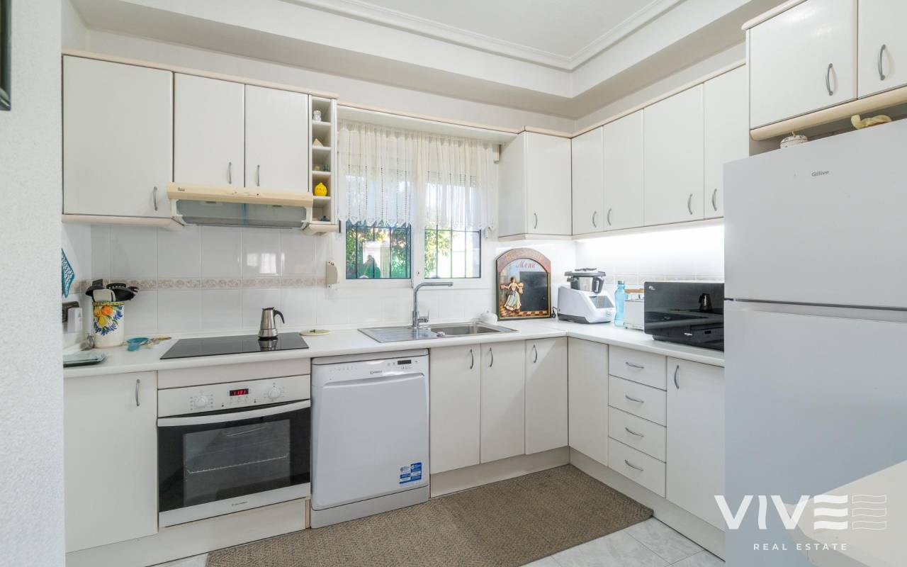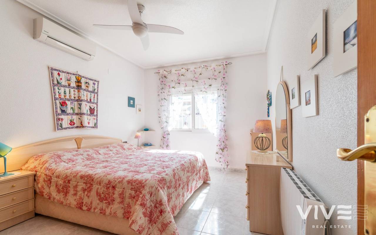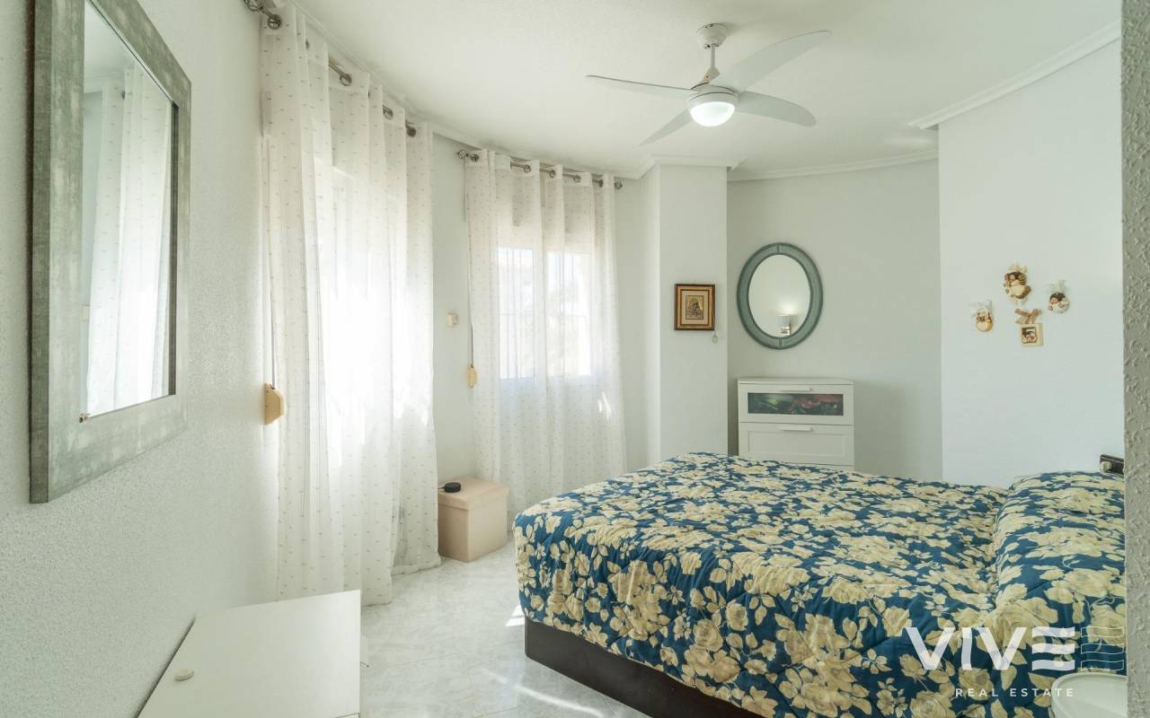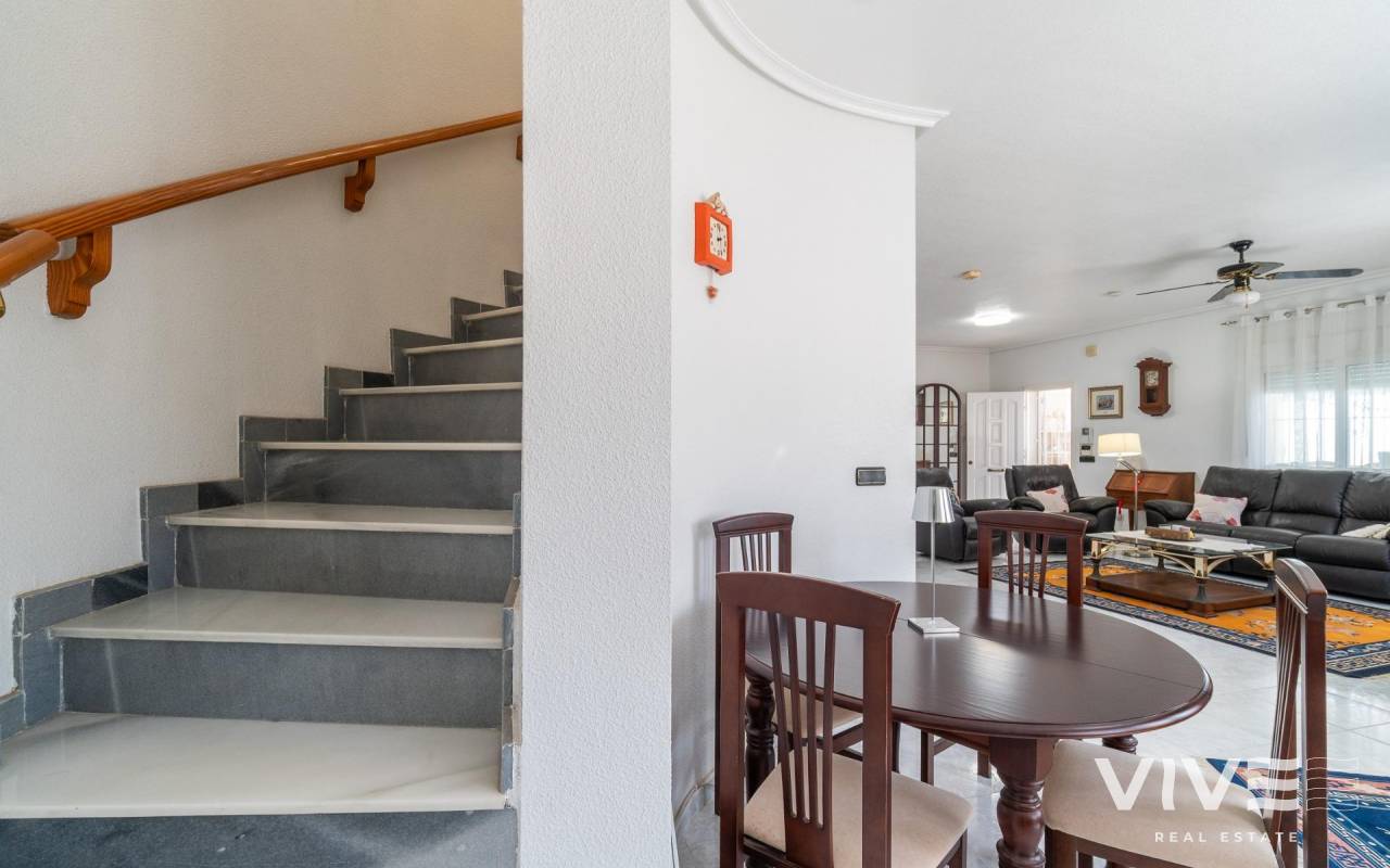 This large detached villa, situated on a 500 m2 plot with over 190 m2 of living space, is superbly located in the heart of Playa Flamenca. It is truly within walking distance of everything: supermarkets, municipal and private sports facilities, the Zenia Boulevard shopping center, a public school, the town hall, shops, doctors, and the beaches of Orihuela Costa.. . The Saturday market is very close, with direct walking access, allowing you to enjoy shopping for fruits, vegetables, and traditional products while experiencing the atmosphere of a small Spanish village. At the same time, you can easily access the property by car without encountering road closures.. . The 500 m2 plot, as mentioned, offers numerous possibilities for enjoying the outdoor space, including a swimming pool, barbecue, outdoor kitchen, solarium, pergolas, parking, and more. Maintenance is very easy, with terraces, artificial grass, and gravel areas, ensuring that keeping your garden and outdoor areas in perfect condition requires minimal effort.. . The property features on-site parking with automatic gates and a private garage/storage area to keep your vehicle protected from the Alicante sun. The pool area is perfect for sunbathing in privacy, while the built-in barbecue and wooden pergola allow you to fully utilize the plot's potential, thanks to its southern exposure and sun exposure throughout the day. This also ensures abundant natural light throughout the property's daytime living areas.. . There is a glazed solarium terrace at the entrance to the house, but with its traditional clay tile roof. In winter, when the sun is lower, it can be used for sunbathing, and in summer, by opening the glass windows and enjoying the shade of the roof, it becomes a cool and airy space where you can relax with a book and spend time with family in a semi-covered outdoor area. From this covered terrace with arches, you enter the main house with its large living-dining room, featuring a fireplace and south-facing windows for maximum natural light and sunshine, and a semi-independent kitchen with a breakfast bar and an adjacent utility room that combines pantry and laundry space.. On the same ground floor, the house has two spacious bedrooms with built-in wardrobes, a bathroom with a walk-in shower, and the staircase leading to the upper floor.. . Upstairs, you'll find the large master bedroom overlooking its own garden and swimming pool, a large bathroom with a walk-in shower, and a large glazed space perfect for a playroom, office, guest room, or any other use. This is complemented by the rest of the solarium, which offers sea views and a south-facing orientation, ensuring sunshine all day long.. . In short, this is a detached villa in a central and well-connected location, with outdoor areas for leisure and family enjoyment. It is in perfect condition and ready to move into, and a visit is well worth it to appreciate its excellent features.. . Price: €640,000. Taxes and closing costs not included (according to applicable regulations). A breakdown of additional costs will be provided before booking.. . In the case of a transaction with two intermediaries, the buyer's professional fees will be 1.5% of the final purchase price, with a minimum of €3,000, plus VAT (21%), unless expressly agreed otherwise. These fees are not included in the advertised price.