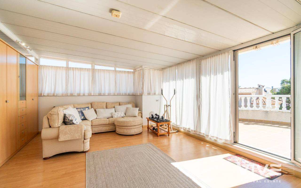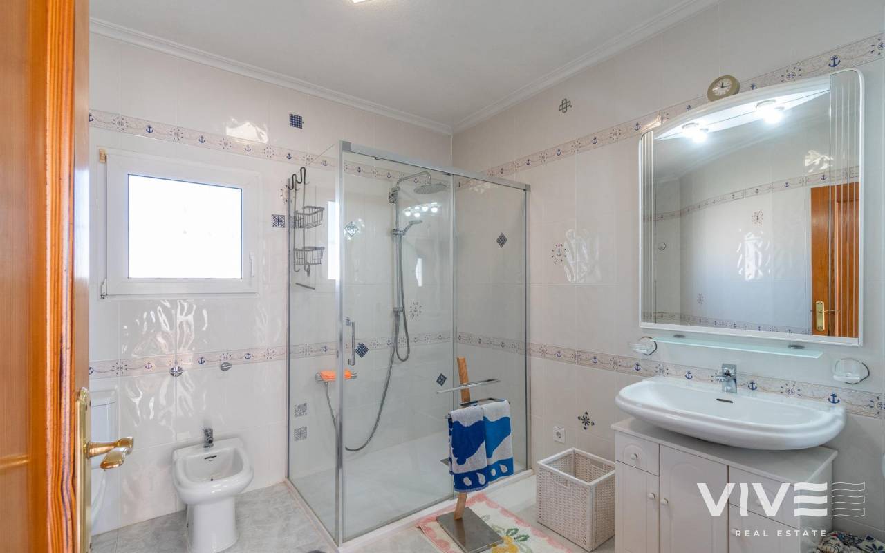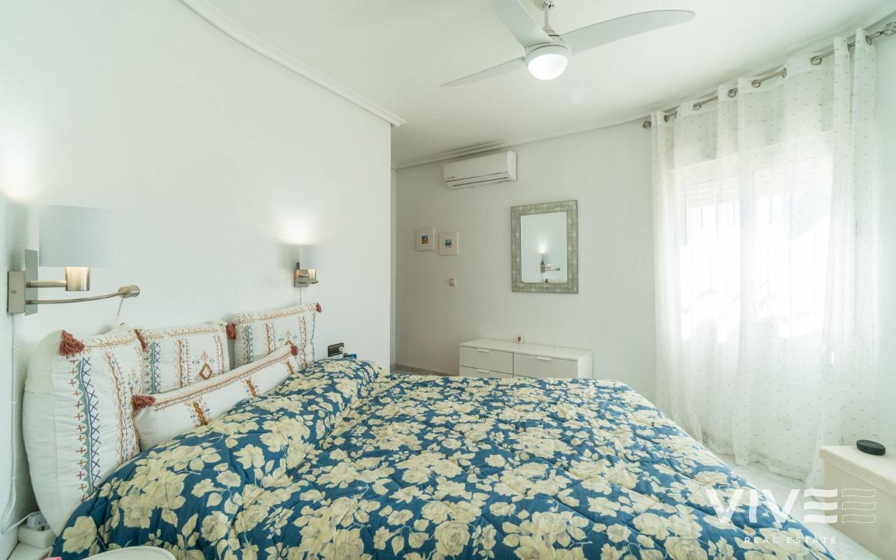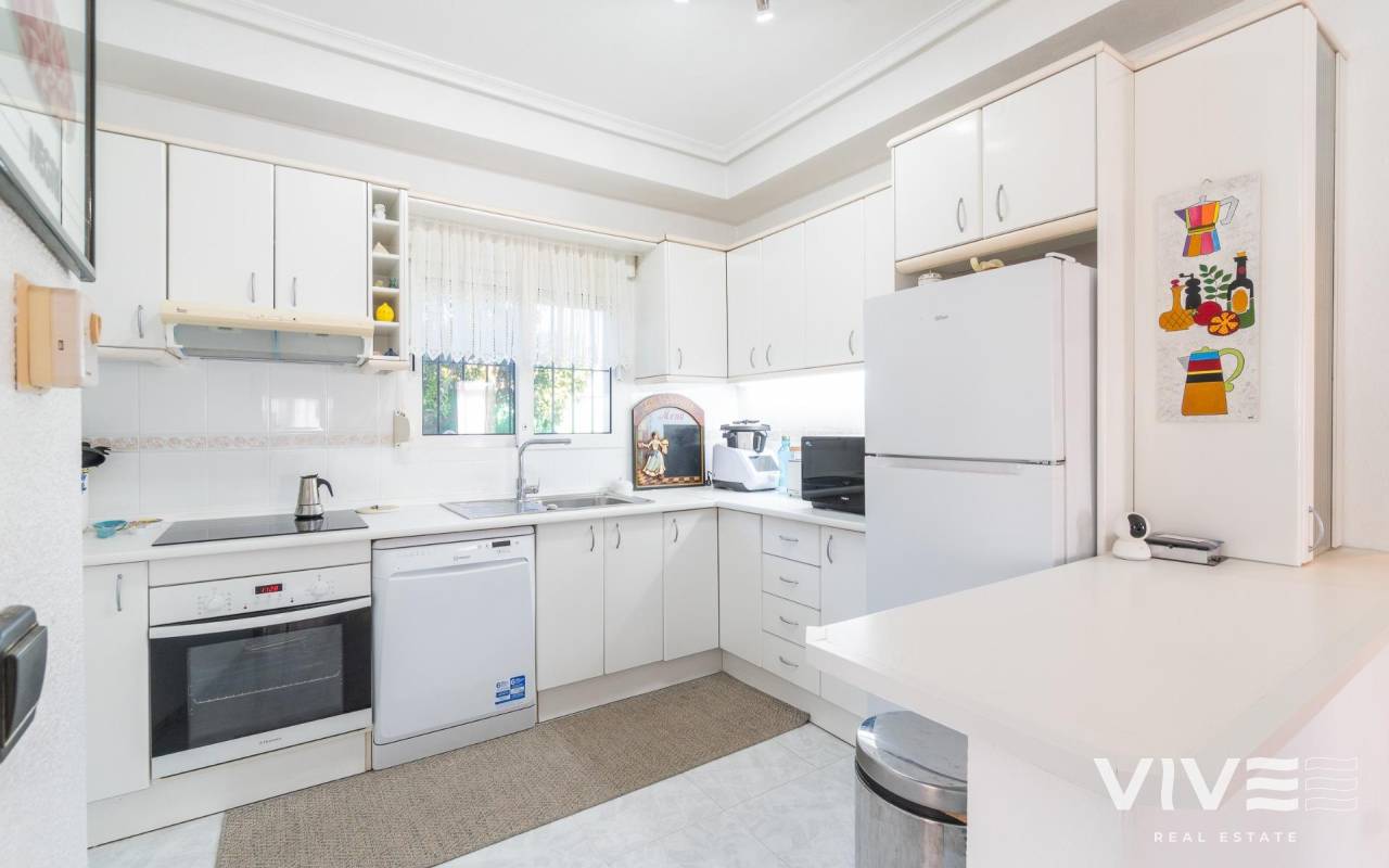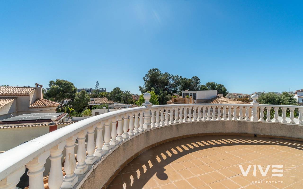 This large detached villa, situated on a 500 m2 plot with over 190 m2 of living space, is superbly located in the heart of Playa Flamenca. It is truly within walking distance of everything: supermarkets, municipal and private sports facilities, the Zenia Boulevard shopping center, a public school, the town hall, shops, doctors, and the beaches of Orihuela Costa.. . The Saturday market is very close, with direct walking access, allowing you to enjoy shopping for fruits, vegetables, and traditional products while experiencing the atmosphere of a small Spanish village. At the same time, you can easily access the property by car without encountering road closures.. . The 500 m2 plot, as mentioned, offers numerous possibilities for enjoying the outdoor space, including a swimming pool, barbecue, outdoor kitchen, solarium, pergolas, parking, and more. Maintenance is very easy, with terraces, artificial grass, and gravel areas, ensuring that keeping your garden and outdoor areas in perfect condition requires minimal effort.. . The property features on-site parking with automatic gates and a private garage/storage area to keep your vehicle protected from the Alicante sun. The pool area is perfect for sunbathing in privacy, while the built-in barbecue and wooden pergola allow you to fully utilize the plot's potential, thanks to its southern exposure and sun exposure throughout the day. This also ensures abundant natural light throughout the property's daytime living areas.. . There is a glazed solarium terrace at the entrance to the house, but with its traditional clay tile roof. In winter, when the sun is lower, it can be used for sunbathing, and in summer, by opening the glass windows and enjoying the shade of the roof, it becomes a cool and airy space where you can relax with a book and spend time with family in a semi-covered outdoor area. From this covered terrace with arches, you enter the main house with its large living-dining room, featuring a fireplace and south-facing windows for maximum natural light and sunshine, and a semi-independent kitchen with a breakfast bar and an adjacent utility room that combines pantry and laundry space.. On the same ground floor, the house has two spacious bedrooms with built-in wardrobes, a bathroom with a walk-in shower, and the staircase leading to the upper floor.. . Upstairs, you'll find the large master bedroom overlooking its own garden and swimming pool, a large bathroom with a walk-in shower, and a large glazed space perfect for a playroom, office, guest room, or any other use. This is complemented by the rest of the solarium, which offers sea views and a south-facing orientation, ensuring sunshine all day long.. . In short, this is a detached villa in a central and well-connected location, with outdoor areas for leisure and family enjoyment. It is in perfect condition and ready to move into, and a visit is well worth it to appreciate its excellent features.. . Price: €640,000. Taxes and closing costs not included (according to applicable regulations). A breakdown of additional costs will be provided before booking.. . In the case of a transaction with two intermediaries, the buyer's professional fees will be 1.5% of the final purchase price, with a minimum of €3,000, plus VAT (21%), unless expressly agreed otherwise. These fees are not included in the advertised price.