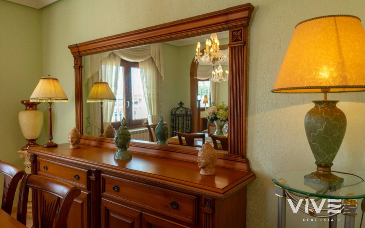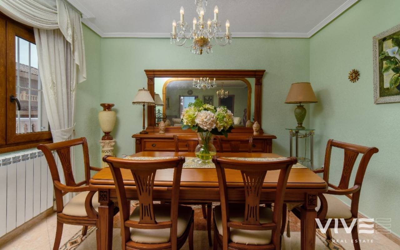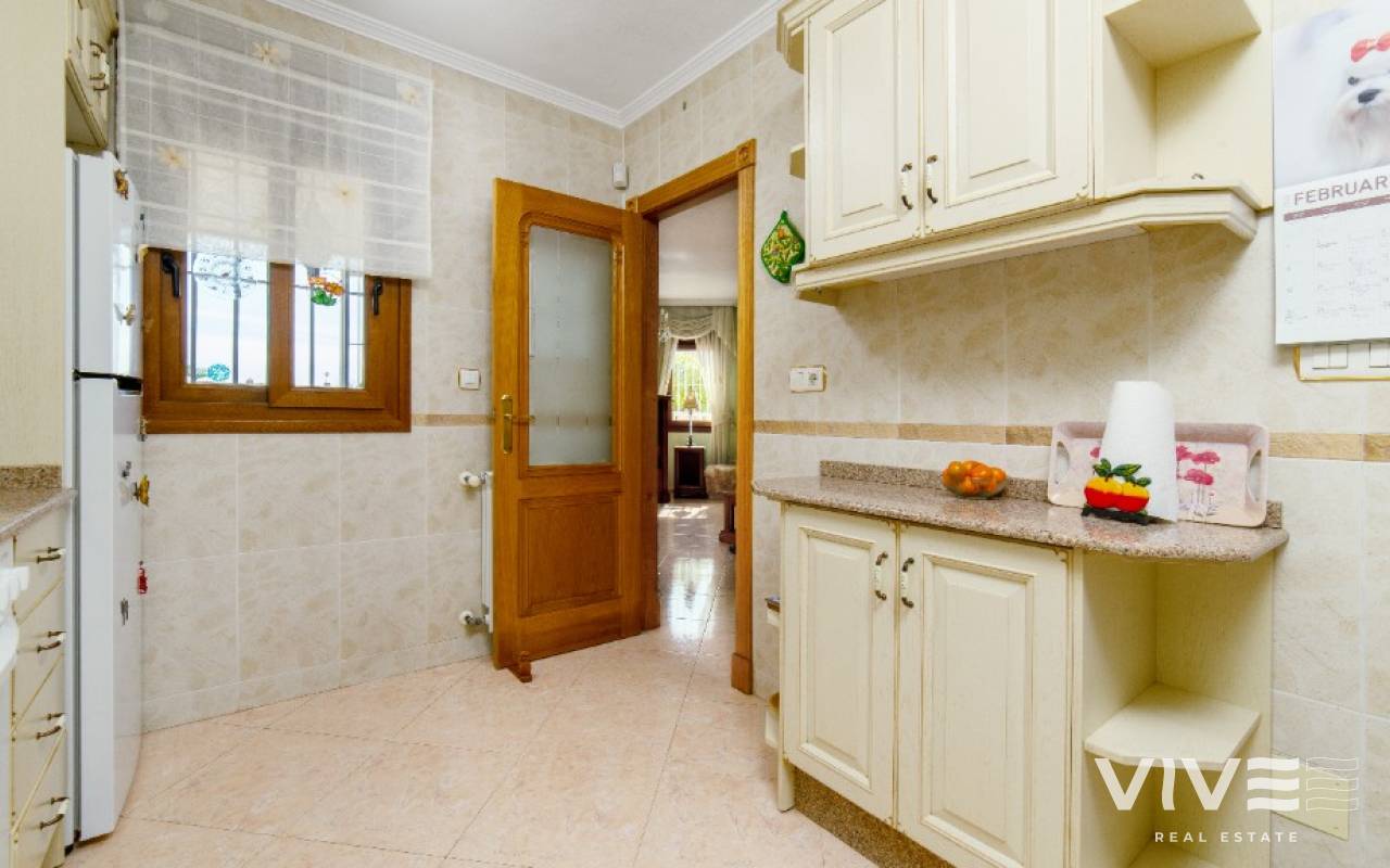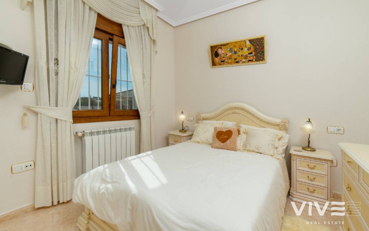 For sale spacious detached villa with beautiful open views in Los Altos, Torrevieja, Costa Blanca. We offer you for sale this spacious detached villa, situated in a gated community in peaceful area of Los Altos. The location is more than perfect - within a walking distance you will find everything for a comfortable life : commercial centers, small supermarkets, pharmacies, hospital, school, parks, bus stops, bars, restaurants and many other. Within a short drive there are famous golf courses of Villamartin and Las Ramblas, the biggest commercial center La Zenia Boulevard and, of course, sandy beaches of Orihuela Costa. The house of itself is constructed on 2 levels : on the ground level there is well maintained private garden with parking, terrace, spacious living-dining area, separate kitchen, big utility room and complete bathroom with walk-in shower. On the second level there are 2 sunny bedrooms, one bathroom and huge balcony, from where you can enjoy a magnificent open views - from one side you see the Pink lake of Torrevieja, and from other you have a sea view. The community is a gated one and offers to its residents a communal swimming pool. Do not miss this chance to became a new owner of this stunning property in a comfortable area!