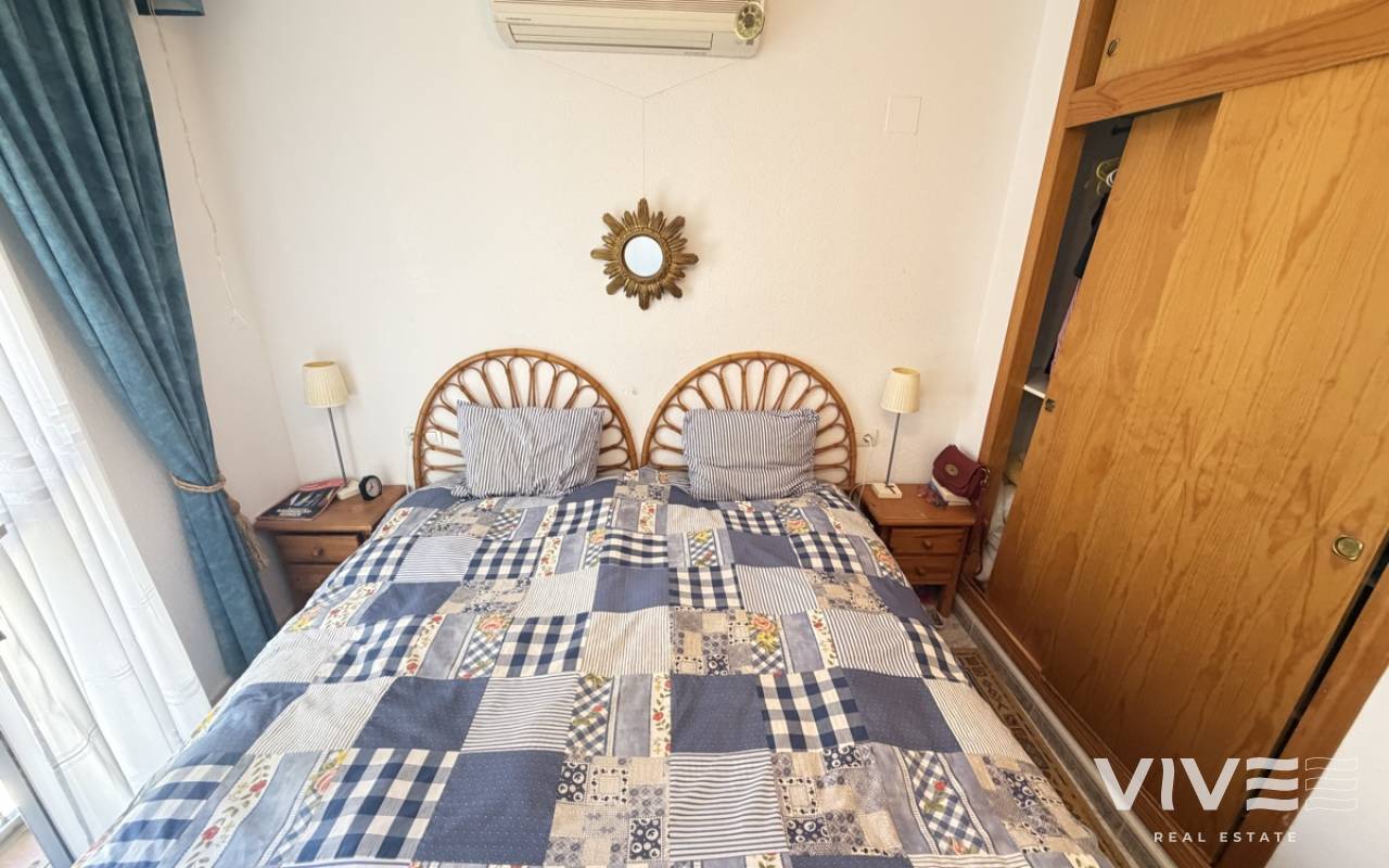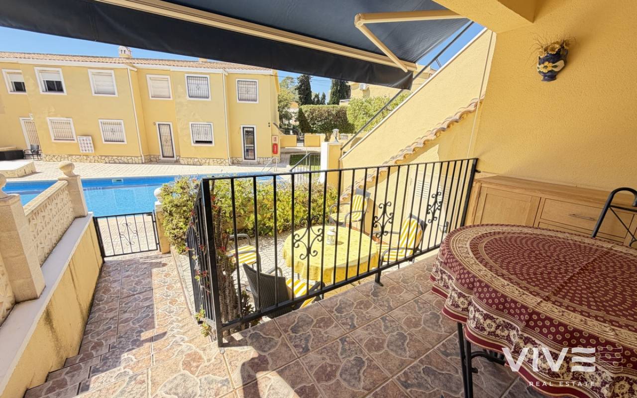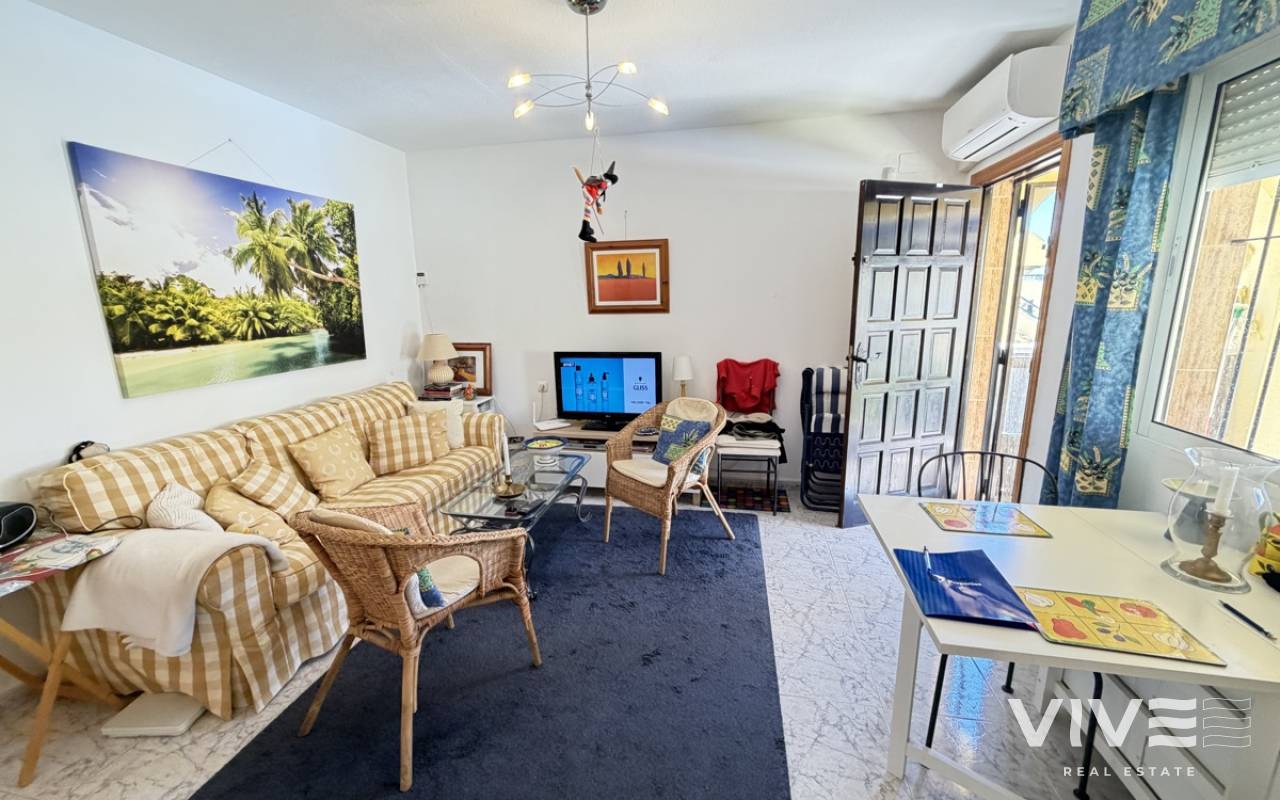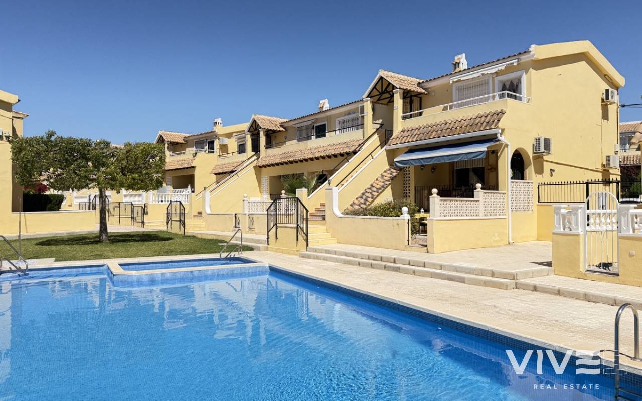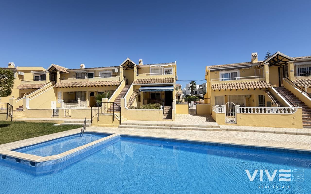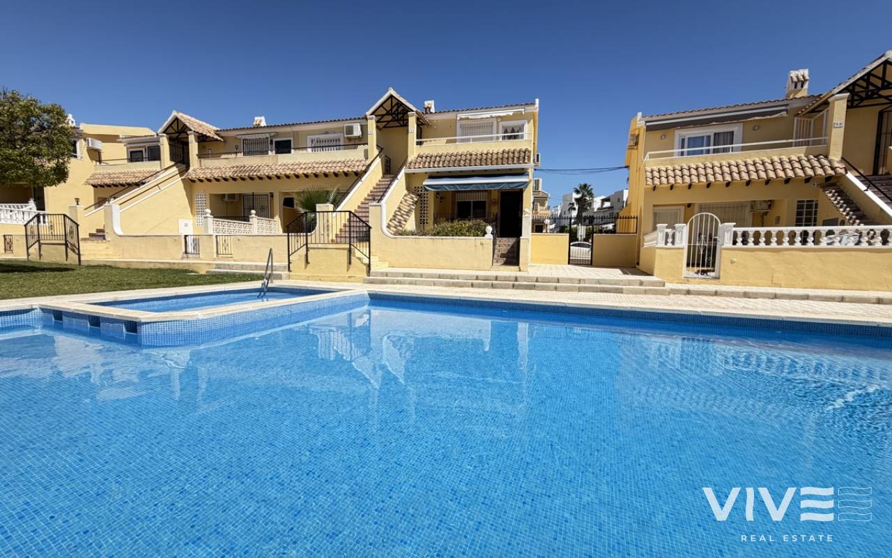 This fantastic ground-floor apartment in Lomas del Golf offers the perfect blend of comfort, convenience, and outdoor living. Boasting two well-proportioned bedrooms, the property enjoys a prime position overlooking the communal pool, creating a relaxed and inviting atmosphere. The apartment features both front and rear gardens, providing plenty of outdoor space to enjoy the Mediterranean climate. A charming front terrace welcomes you into the home, ideal for morning coffee or evening relaxation. Inside, the property offers a bright open-plan living area, seamlessly combining the lounge, dining space, and kitchen. There are two bedrooms and a family bathroom, with the master bedroom benefiting from direct access to the private rear garden—perfect for added privacy and indoor-outdoor living. Ideally located within walking distance to Villamartin Golf Course and the popular Villamartin Plaza, this property is perfectly suited as a holiday home, rental investment, or permanent residence.
