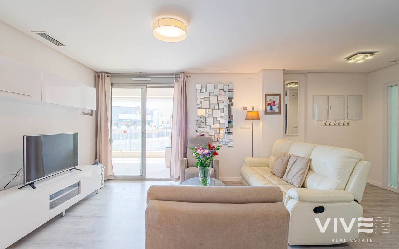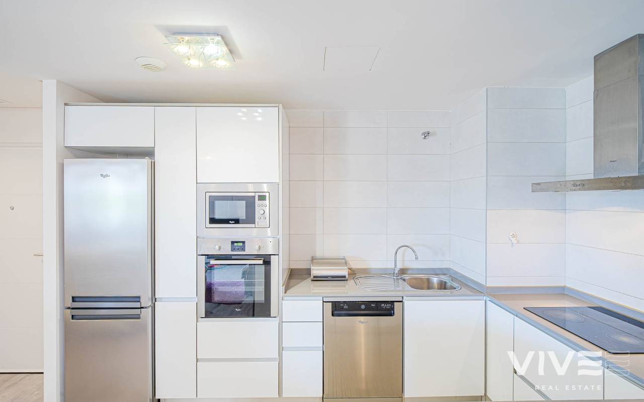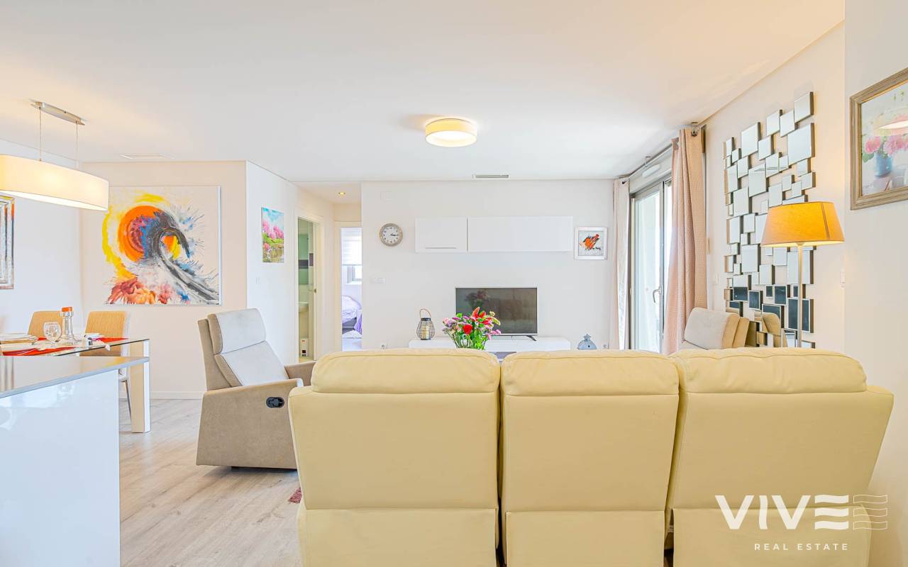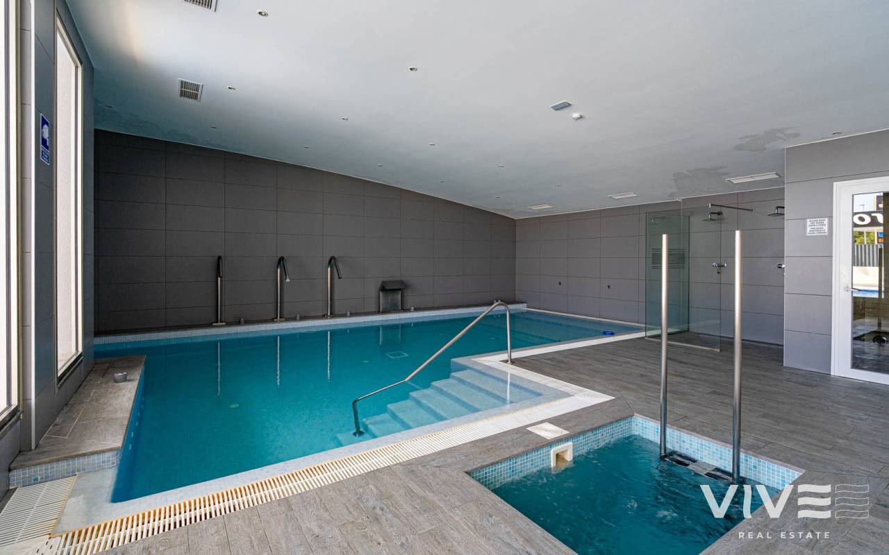 Modern 2-bedroom apartment in the gated residence Altos del Mediterráneo, Los Dolses (Orihuela Costa), Costa Blanca. A great opportunity to own a home in Spain close to the sea. The apartment offers 2 bathrooms, a well-designed layout, and a comfortable living space, ideal for both permanent living and holiday stays. The building has a lift, and the property enjoys partial sea and city views from the terrace. Conveniently located near the Los Dolses commercial area with shops, supermarkets, restaurants, and bars. La Zenia Boulevard shopping centre is just a short drive away, while the beaches of Orihuela Costa can be reached in 5–10 minutes. Residents benefit from excellent communal facilities, including outdoor and heated pools, a sauna, and a fully equipped gym. The gated complex ensures privacy and security. The price includes a private parking space. An attractive property on the Costa Blanca, perfect for personal use or as a rental investment.