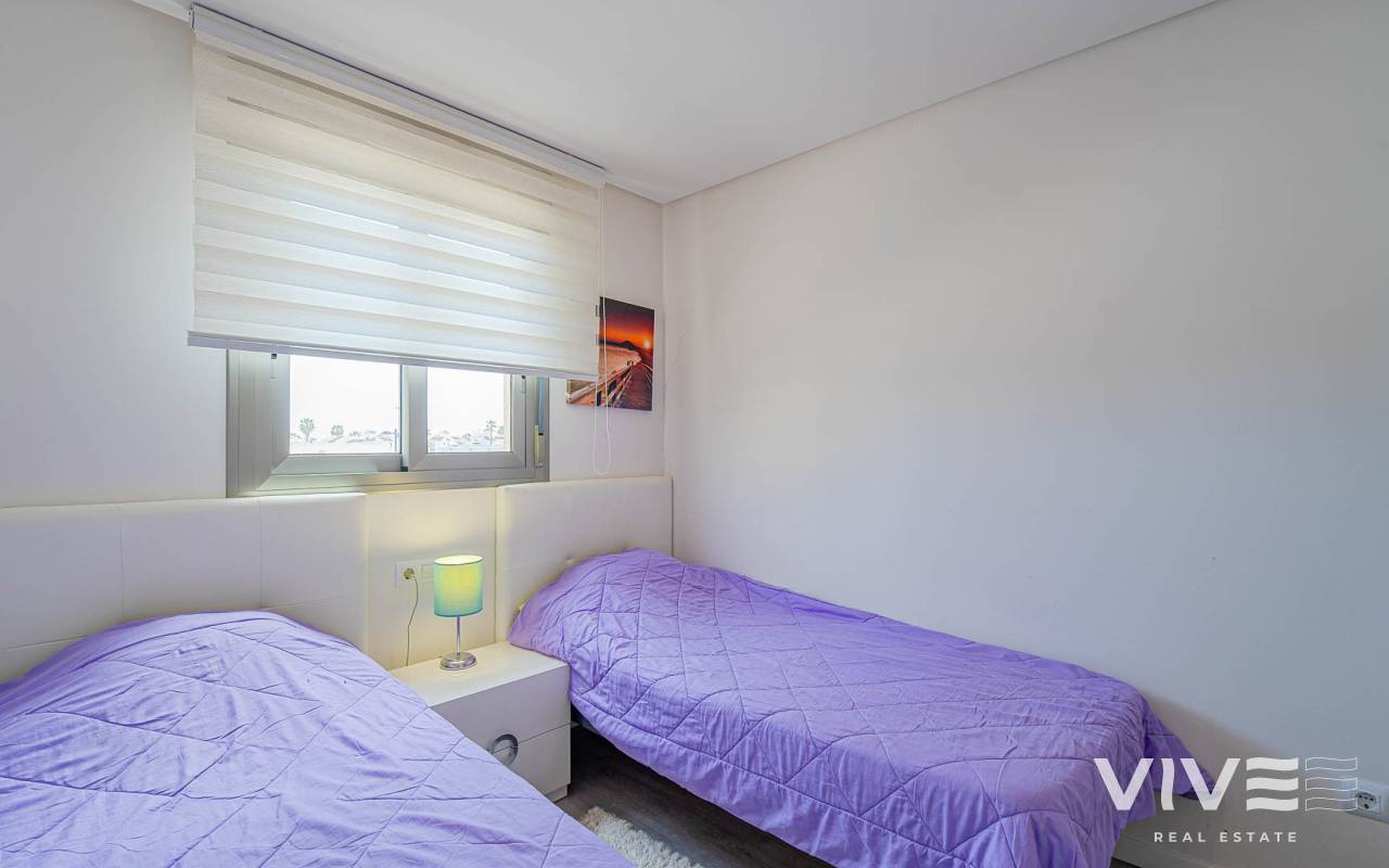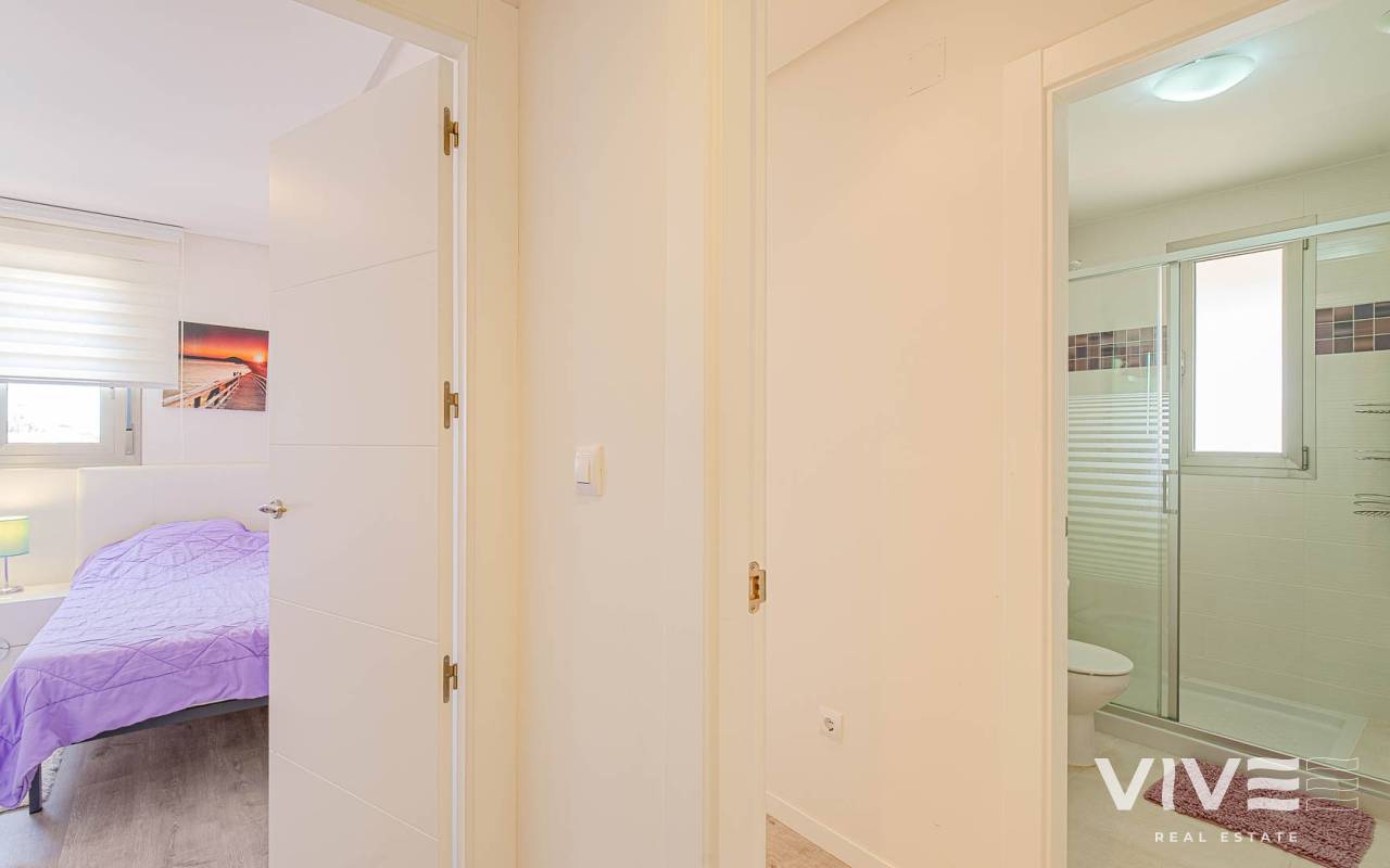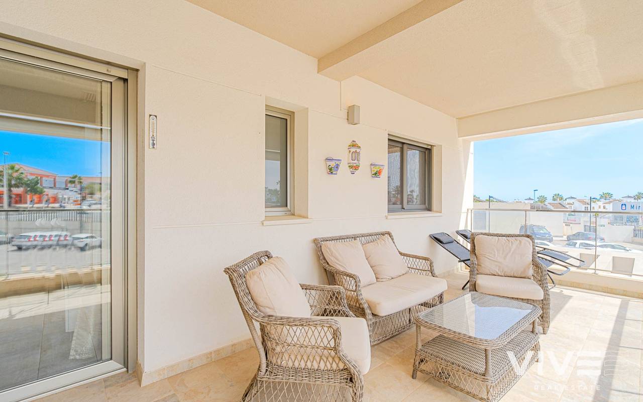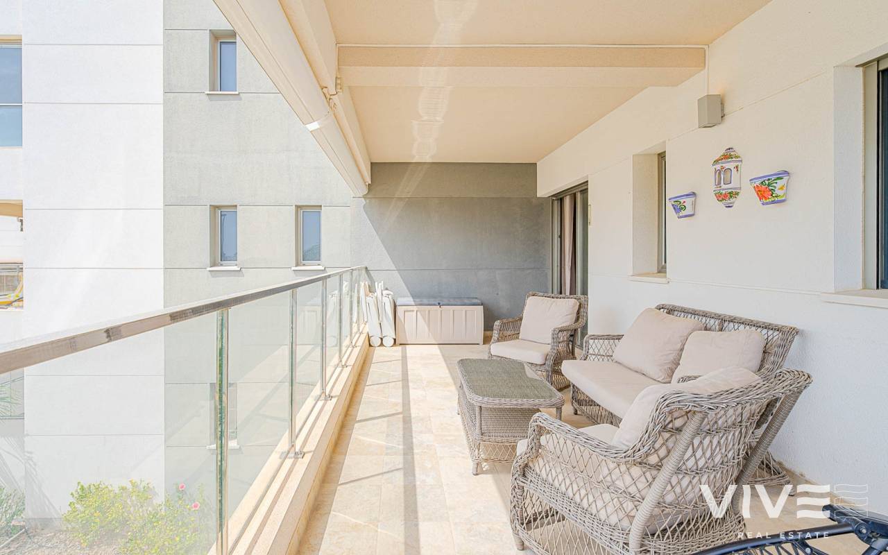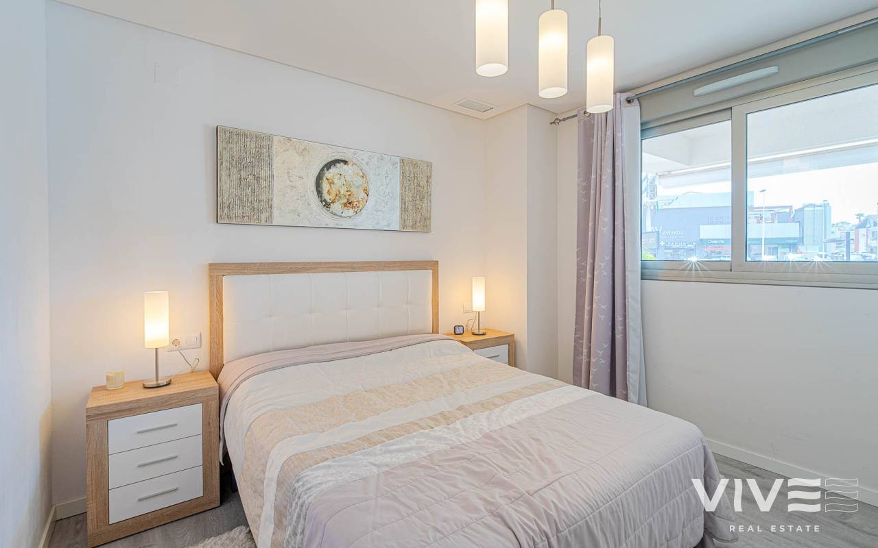 Modern 2-bedroom apartment in the gated residence Altos del Mediterráneo, Los Dolses (Orihuela Costa), Costa Blanca. A great opportunity to own a home in Spain close to the sea. The apartment offers 2 bathrooms, a well-designed layout, and a comfortable living space, ideal for both permanent living and holiday stays. The building has a lift, and the property enjoys partial sea and city views from the terrace. Conveniently located near the Los Dolses commercial area with shops, supermarkets, restaurants, and bars. La Zenia Boulevard shopping centre is just a short drive away, while the beaches of Orihuela Costa can be reached in 5–10 minutes. Residents benefit from excellent communal facilities, including outdoor and heated pools, a sauna, and a fully equipped gym. The gated complex ensures privacy and security. The price includes a private parking space. An attractive property on the Costa Blanca, perfect for personal use or as a rental investment.