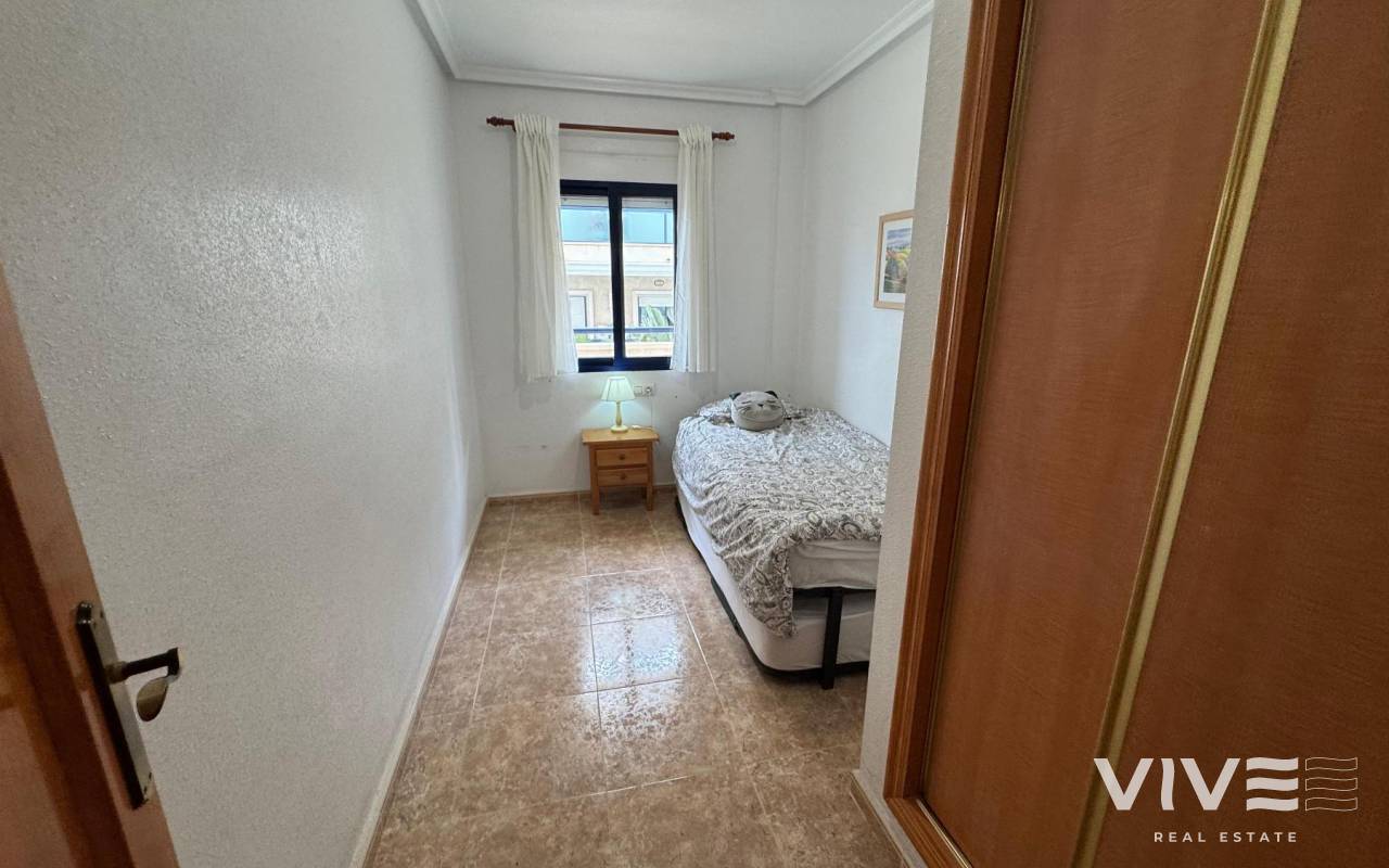 Prime Apartment in Cabo Roig Strip Tourist License, Balcony and Private ParkingDiscover this fantastic 2-bedroom, 1-bathroom tourist apartment located in the prestigious Playamarina Aparthotel in Cabo Roig, right on the main avenue, surrounded by bars, restaurants, shops, and all the leisure options that make this area one of the most sought-after destinations on the Costa Blanca.The property is situated in a secure gated complex with reception, communal swimming pool, and landscaped gardens, making it ideal both for holidays and as an investment opportunity. 2 bedrooms 1 bathroom 99 m² built Communal swimming pool Numbered underground parking space Lift Open-plan kitchen Built-in wardrobes Fully furnished terrace Northeast facing Communal gardenIn addition, it features smart WiFi air conditioning, allowing remote temperature control for greater comfort and energy efficiency. An excellent opportunity with high rental potential in a prime location in Cabo Roig.