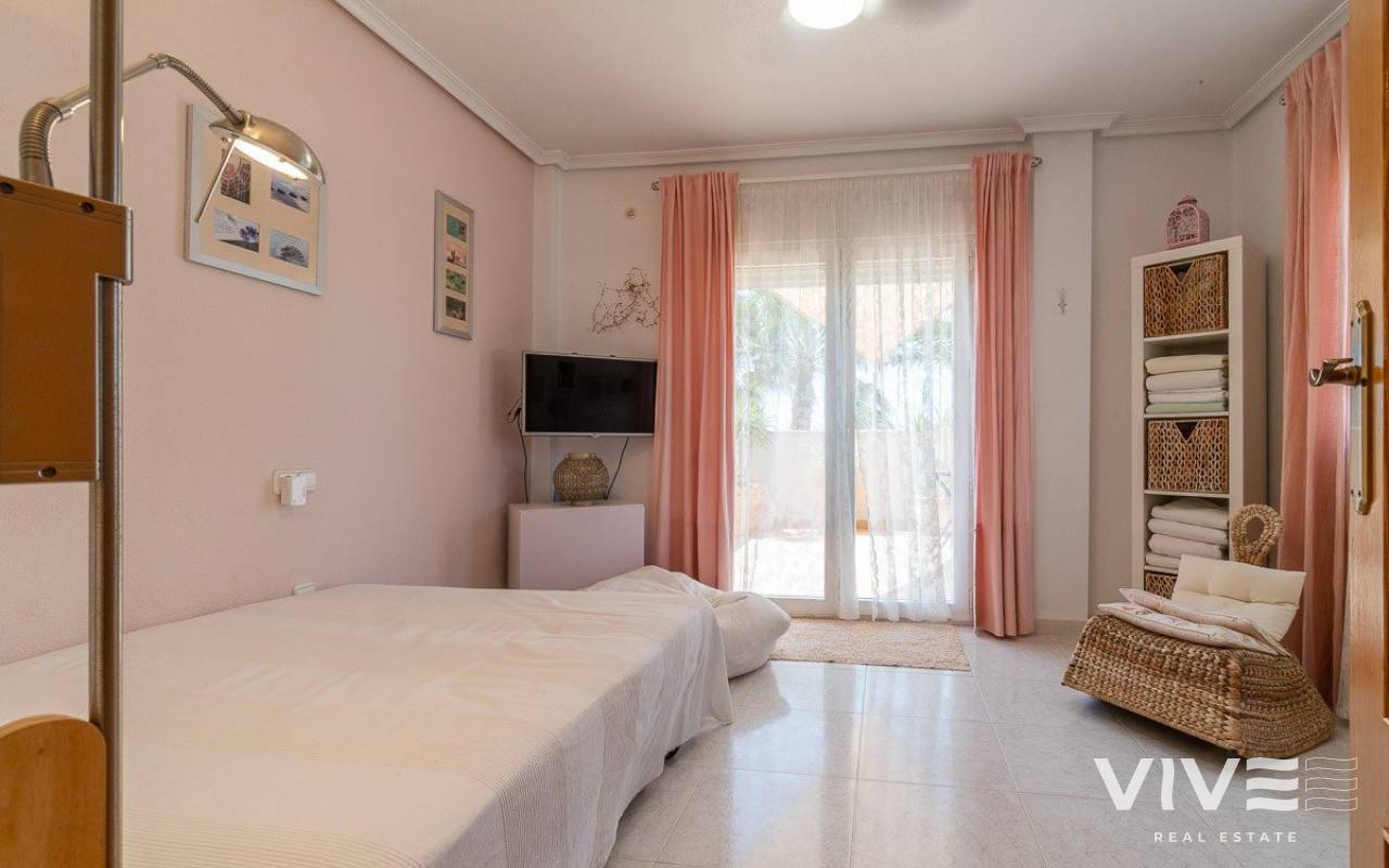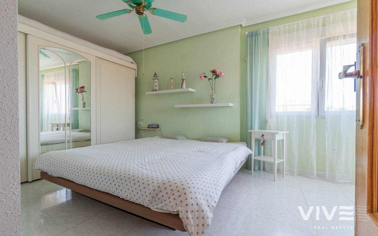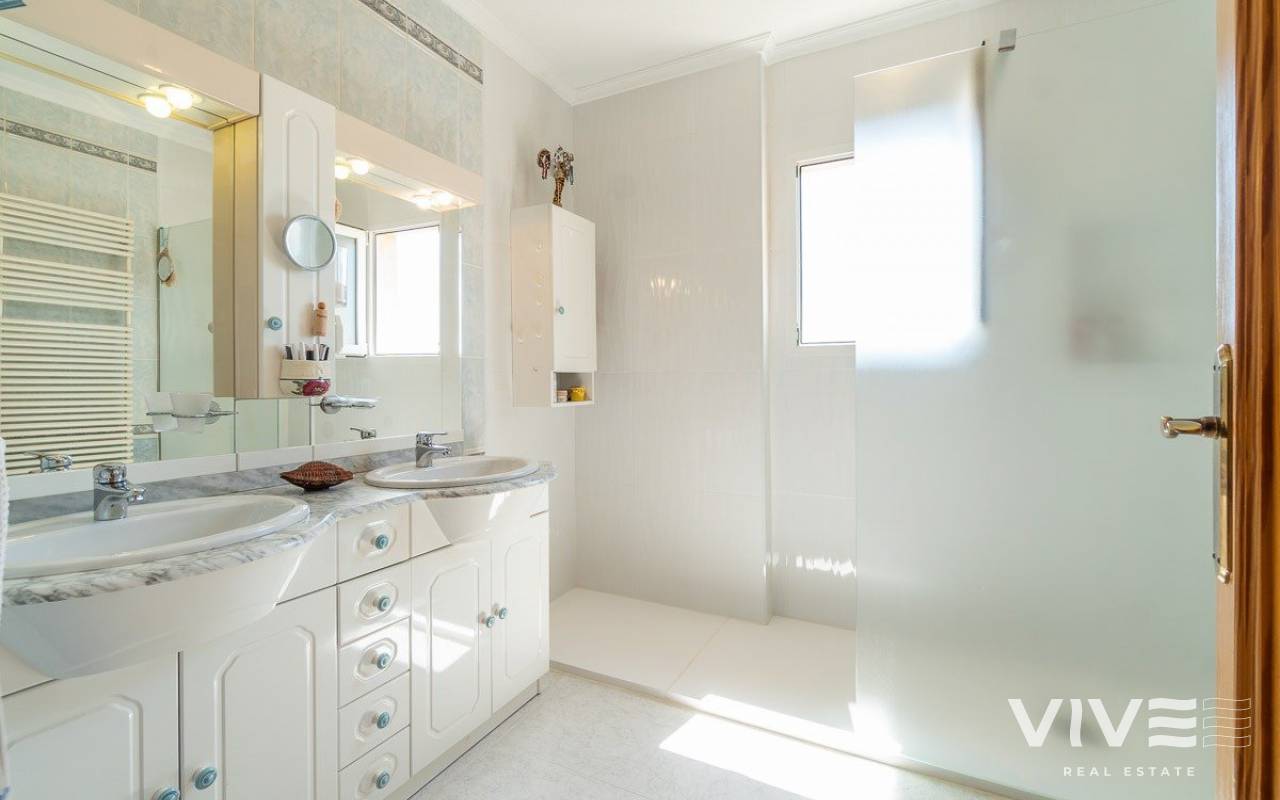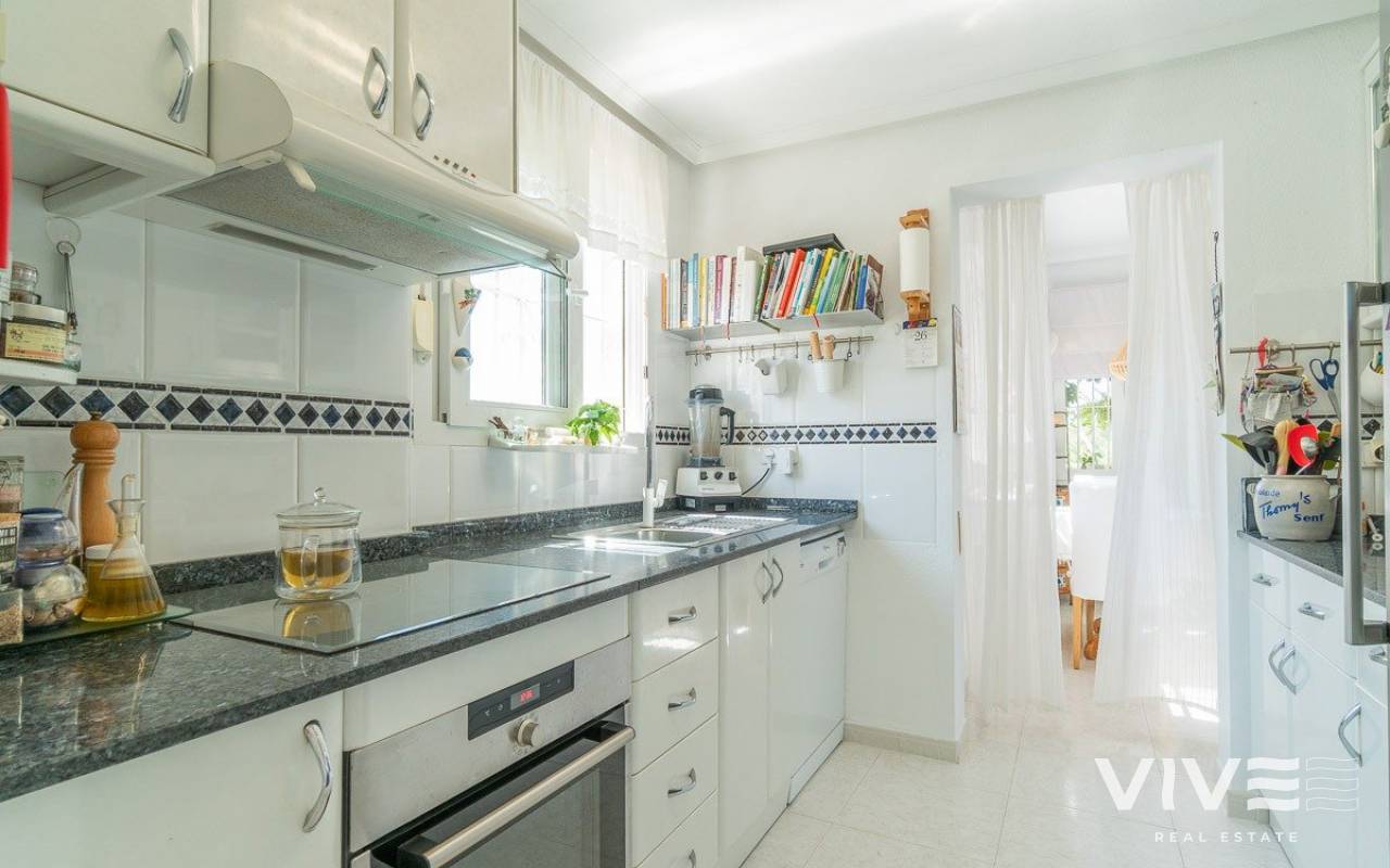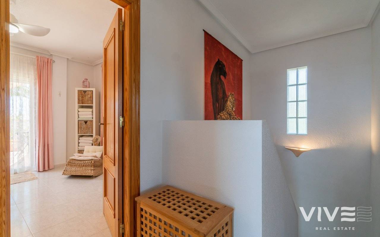 This beautiful Mediterranean-style villa is located in the center of Playa Flamenca, a few meters from the largest shopping center in the province of Alicante. The property is located in Orihuela Costa, near the Mediterranean Sea, about 20 minutes walk. In addition, the post office, the town hall and all necessary German-speaking service providers are located in the immediate vicinity. There are 2 private hospitals in Torrevieja (5 km). The largest shopping center in the province of Alicante, Zenia Boulevard, is a 5-minute drive away. Alicante is 60 km away, less than an hour from the airport. The plot measures 550 m2 and its distribution is as follows: in front there is an automatically irrigated lawn, 4 palm trees and a centenary olive tree, which contribute to an exceptionally cool microclimate. In the background there are trees such as lemon, fig, orange, medlar and pomegranate trees, as well as a garden of plants with irrigation controlled in time by means of droplets.There is a double garage for 1 car and a 6m long motorhome with automatic doors.Two terraces, one on the ground floor and one on the top floor. The orientation is south, so you can enjoy the sun all day. There are enough shady spots. The size of the house is considerable: approx. 180 m2 of constructed area, consisting of: GROUND FLOOR with living / dining room, separate kitchen, 1 bedroom and 1 bathroom. FIRST FLOOR with 2 bedrooms and 1 bathroom with a new large shower. All bedrooms are large and can accommodate a double bed or two single beds. BASEMENT FLOOR with 5 rooms, such as pantry, laundry room, room / office, storage room and workshop / central heating (heat pump). The Extras to highlight are: The sanitary hot water and part of the electricity is generated with a photovoltaic panel.The house is sold furnished and is in very good condition. There is a multi-stage filtration system for drinking water and a permanent 700 liter water supply throughout the house. The property is well worth a visit. It is very suitable as a residence all year round. The photovoltaic system generates an average of 2.3 kWh per day. Electricity is consumed directly at home and reduces electricity consumption by around 15%. The windows are double-glazed and the masonry is two-layer with thermal insulation. Internet and telephony run over fiber optic cables to the modem / router. On the property there is also a fully covered double garage with automatic gates for one car and a 6m long mobile home. There are no pending corrective actions. There are no regular expenses for community pool, community gardens, etc.