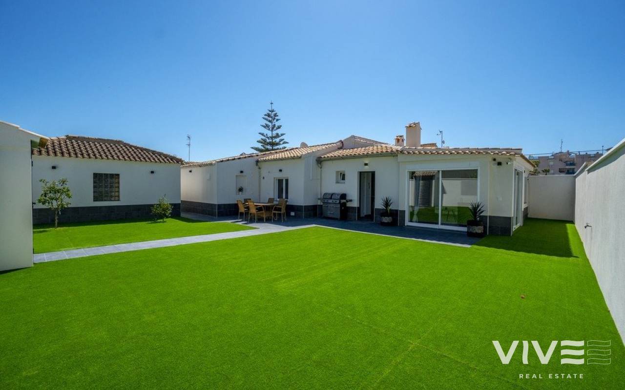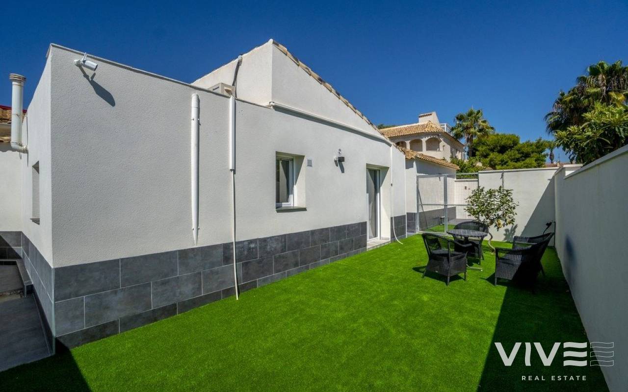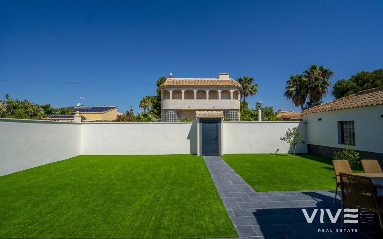 Independent villa located in La Regia, in a quiet neighborhood. Newly renovated (year 2021), modern style, with 408 meters of plot 1500 meters from the beach of Cabo Roig. It has a constructed area of 143 meters. It has 3 bedrooms with 2 bathrooms and 1 toilet. Spacious and bright living room, large kitchen open to the living room, fully equipped. A/C in each room. Garden with artificial grass. Closed garage. Along with a large number of services.. The price includes the installation of the pool (consult the characteristics).