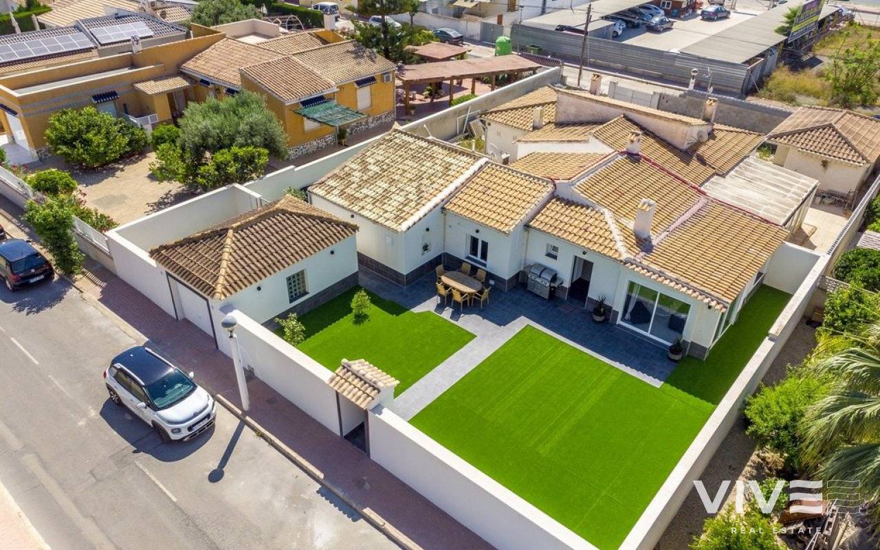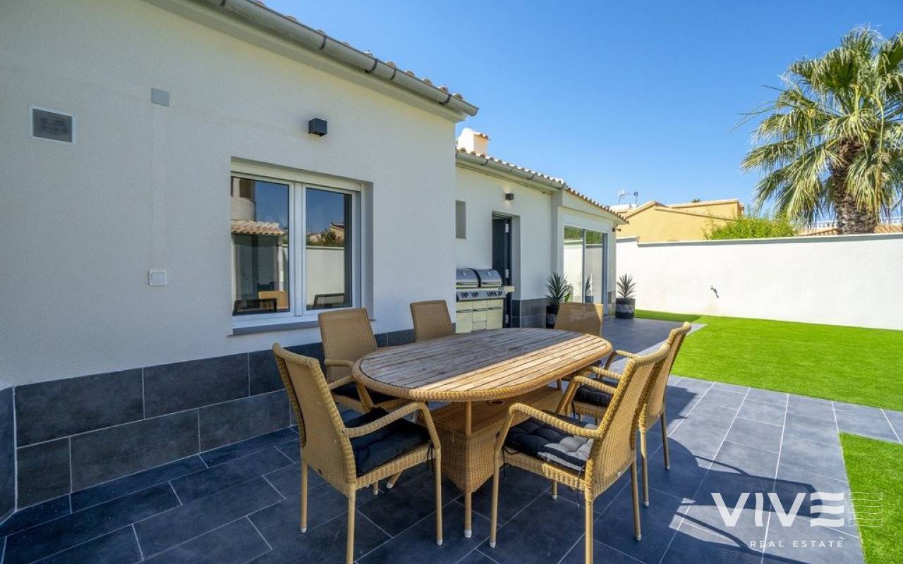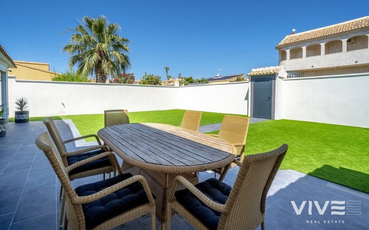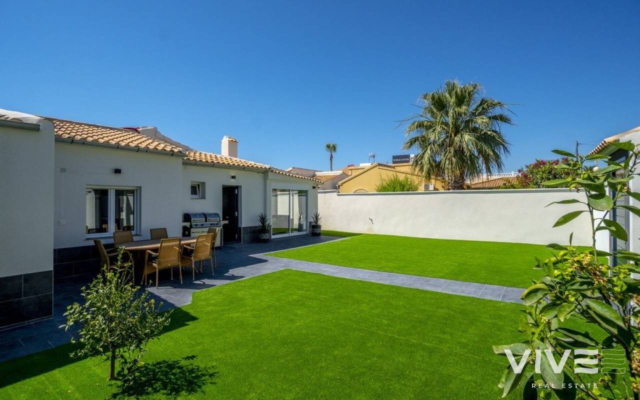 Independent villa located in La Regia, in a quiet neighborhood. Newly renovated (year 2021), modern style, with 408 meters of plot 1500 meters from the beach of Cabo Roig. It has a constructed area of 143 meters. It has 3 bedrooms with 2 bathrooms and 1 toilet. Spacious and bright living room, large kitchen open to the living room, fully equipped. A/C in each room. Garden with artificial grass. Closed garage. Along with a large number of services.. The price includes the installation of the pool (consult the characteristics).