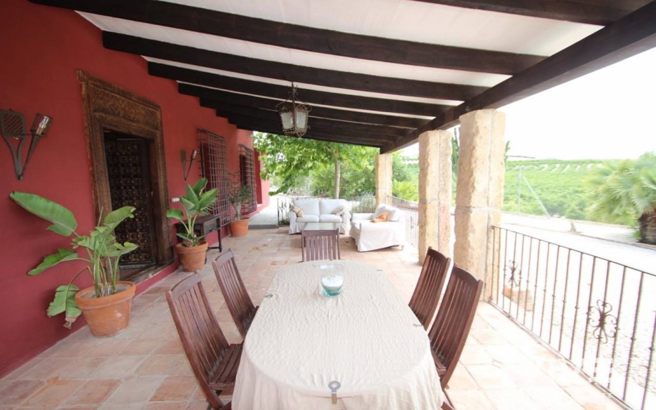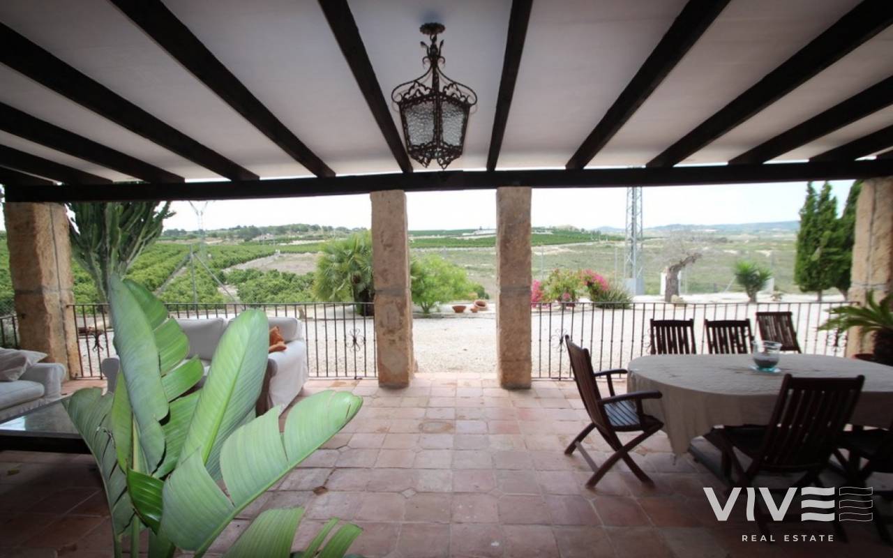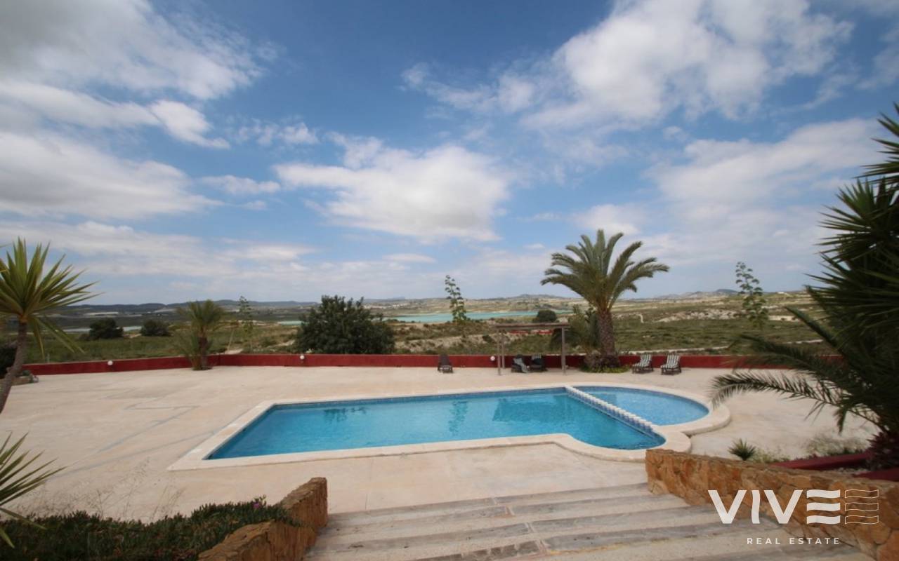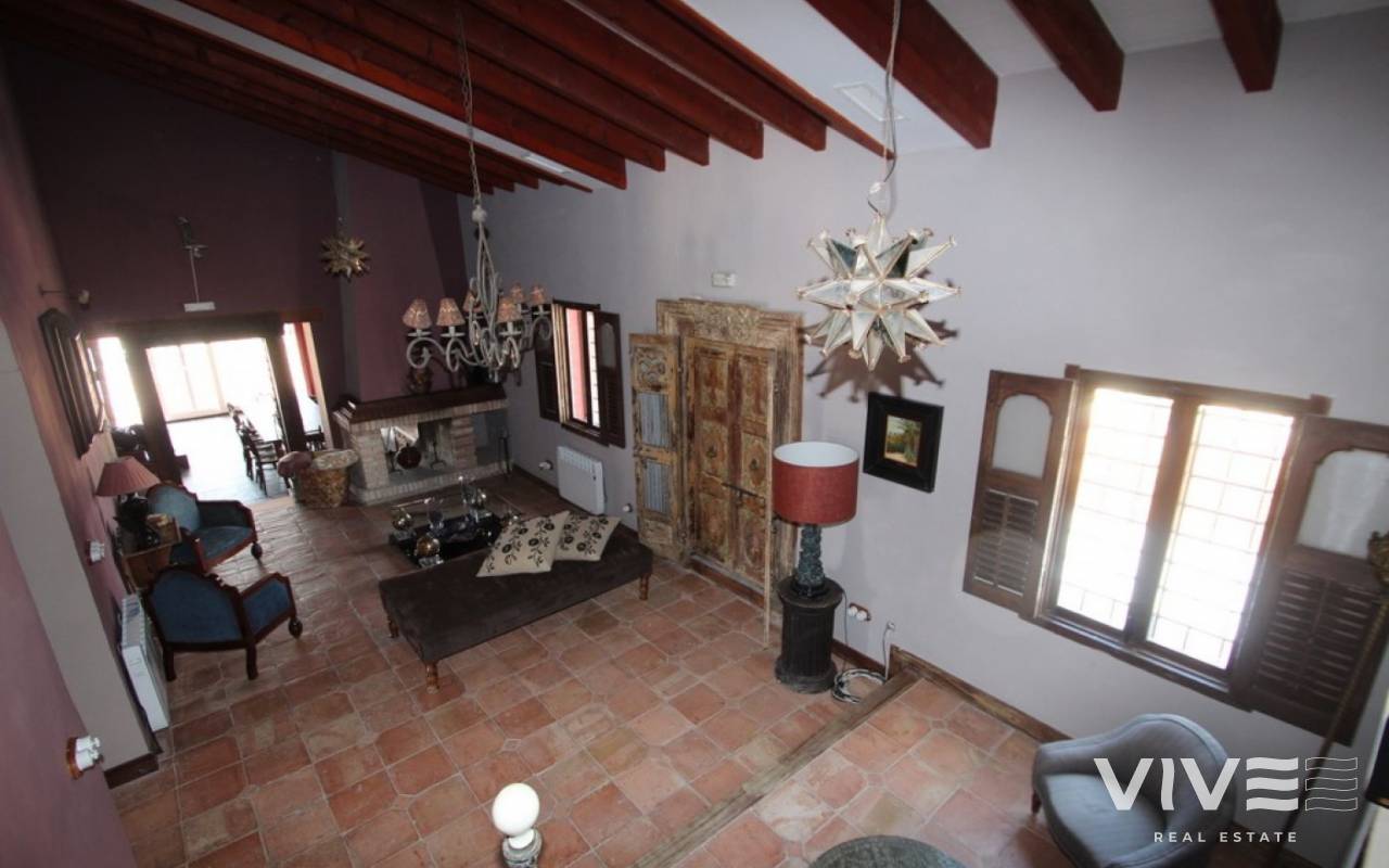 Opportunity to live in a unique place and with the possibility of having your own business.. In front of the La Pedrera reservoir, we offer you an impressive independent Chalet on a plot of 13,700 meters and with a house of 320 meters with stunning views of the reservoir.. This impressive house is distributed on two floors with two living rooms with fireplace, one of them very large of 85 m2, kitchen with its island, 4 bedrooms, 3 bathrooms, 1 toilet, solarium and a large porch overlooking the orange trees, large terrace with barbecue and pool of 15 x 7 m, facing the lake.. There is possibility to expand the house on the top floor.. The interior design has been made by Philip Pelleter, internationally recognized that appears in the book Interior Design Review.. The house is sold fully furnished with antique furniture doors of India ....