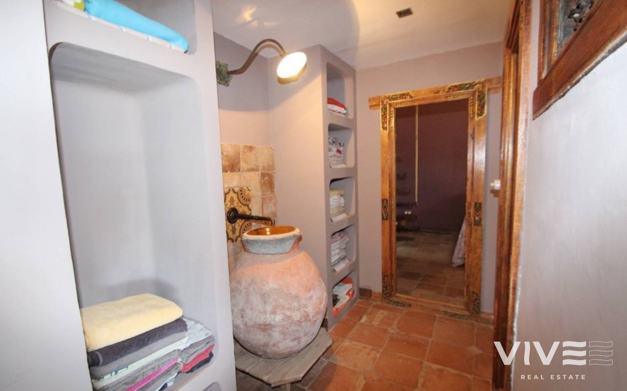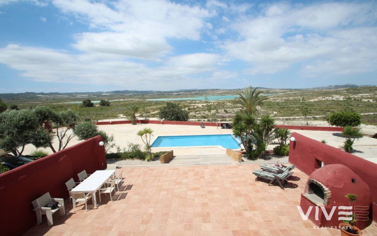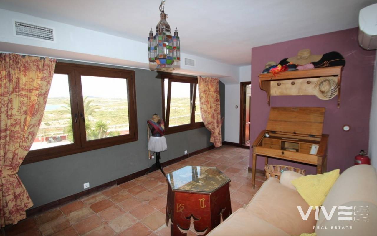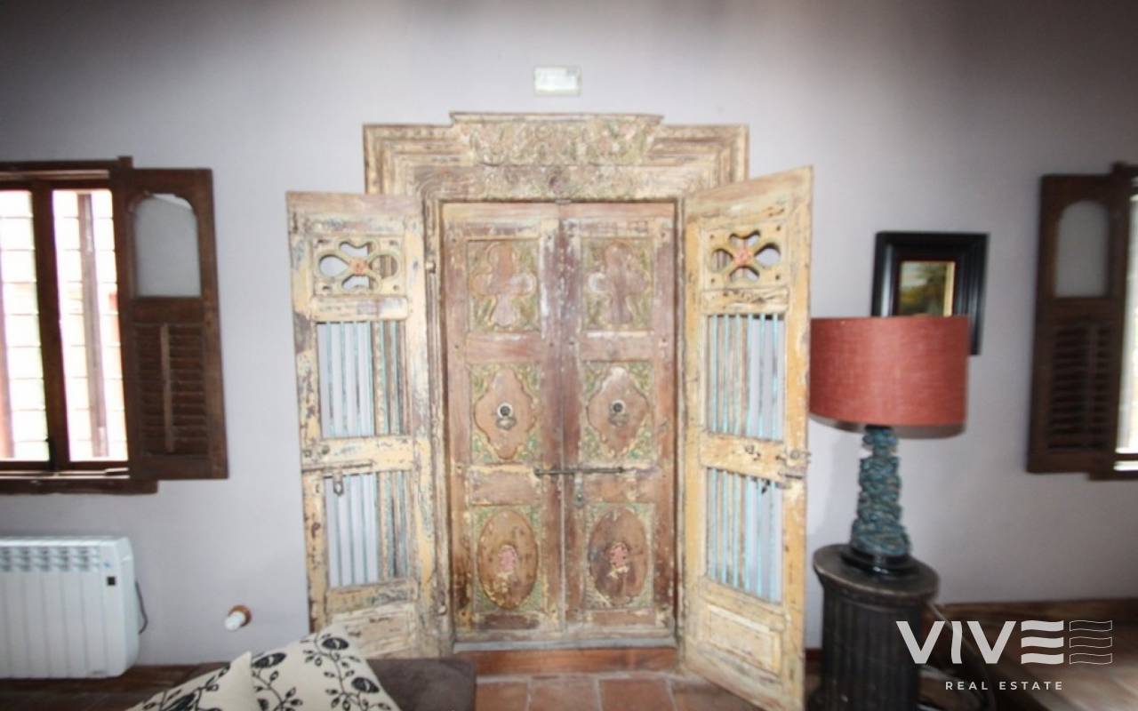 Opportunity to live in a unique place and with the possibility of having your own business.. In front of the La Pedrera reservoir, we offer you an impressive independent Chalet on a plot of 13,700 meters and with a house of 320 meters with stunning views of the reservoir.. This impressive house is distributed on two floors with two living rooms with fireplace, one of them very large of 85 m2, kitchen with its island, 4 bedrooms, 3 bathrooms, 1 toilet, solarium and a large porch overlooking the orange trees, large terrace with barbecue and pool of 15 x 7 m, facing the lake.. There is possibility to expand the house on the top floor.. The interior design has been made by Philip Pelleter, internationally recognized that appears in the book Interior Design Review.. The house is sold fully furnished with antique furniture doors of India ....