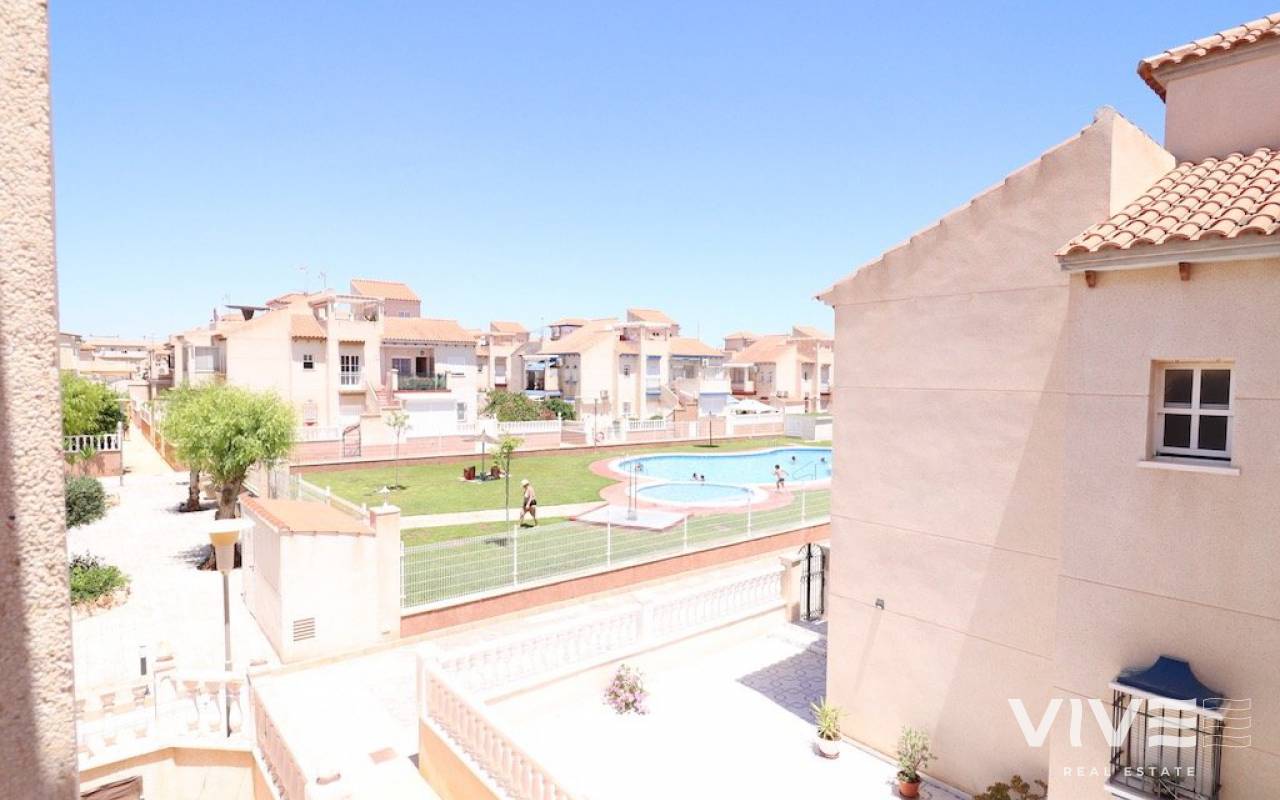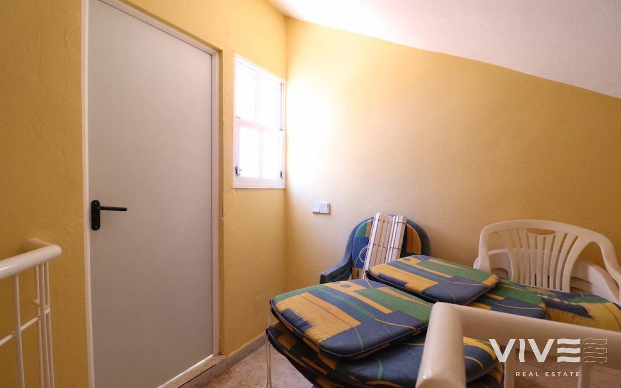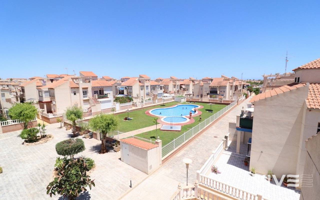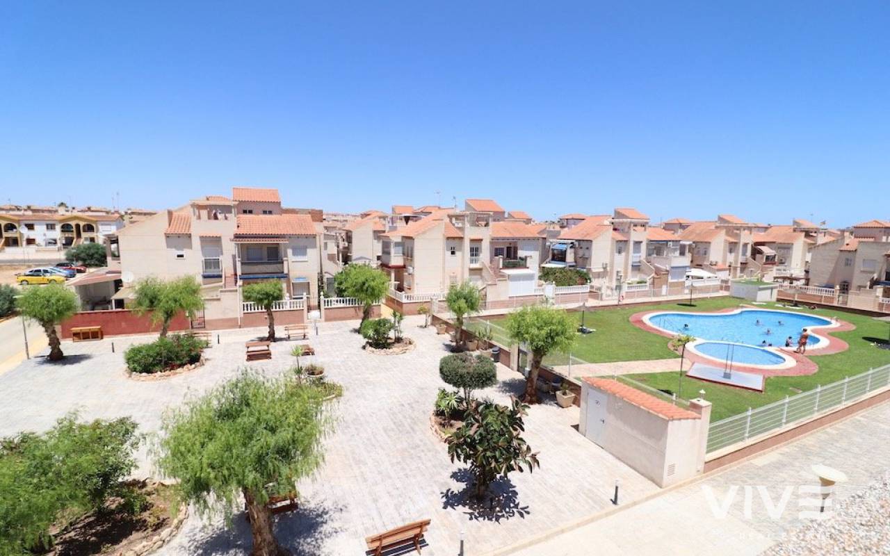 Playa flamenca Urb Duque de Ahumada Top floor corner bungalow with private solarium overlooking the community pool and the park 50 m2 house with 2 bedrooms, 1 bathroom, separate kitchen, living room, loft, large terrace, 15 m2 solarium, the housing is sold furnished, the urbanization has community parking.