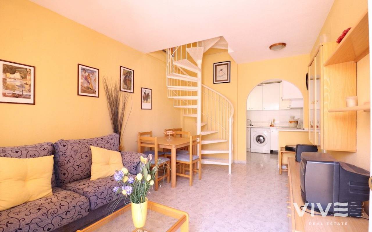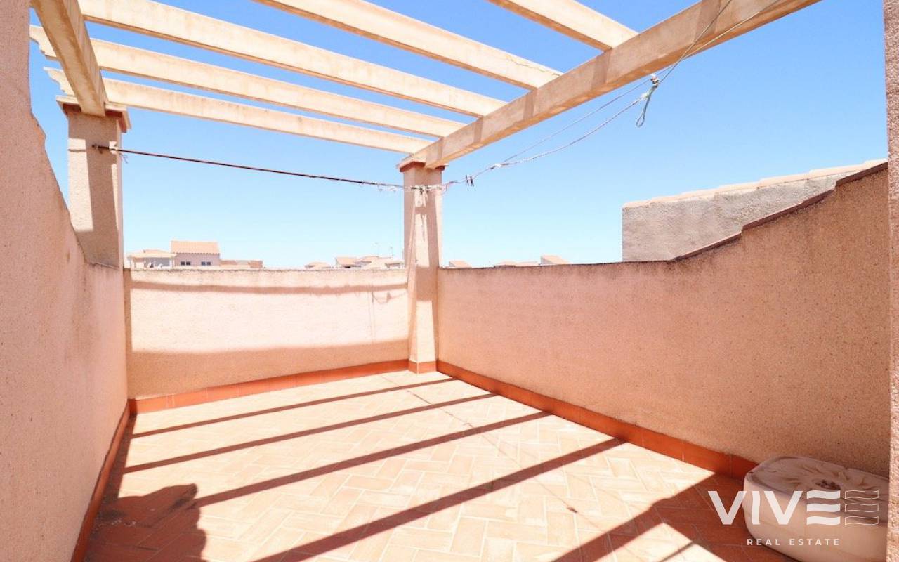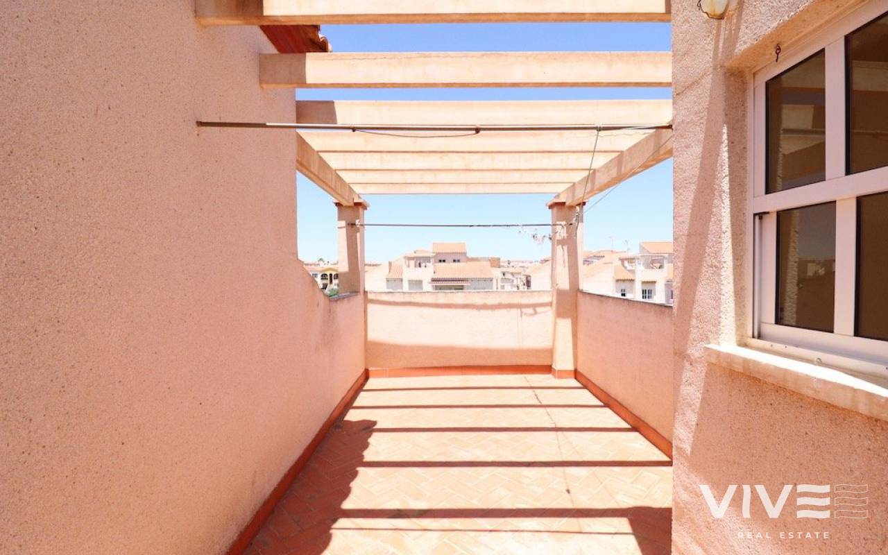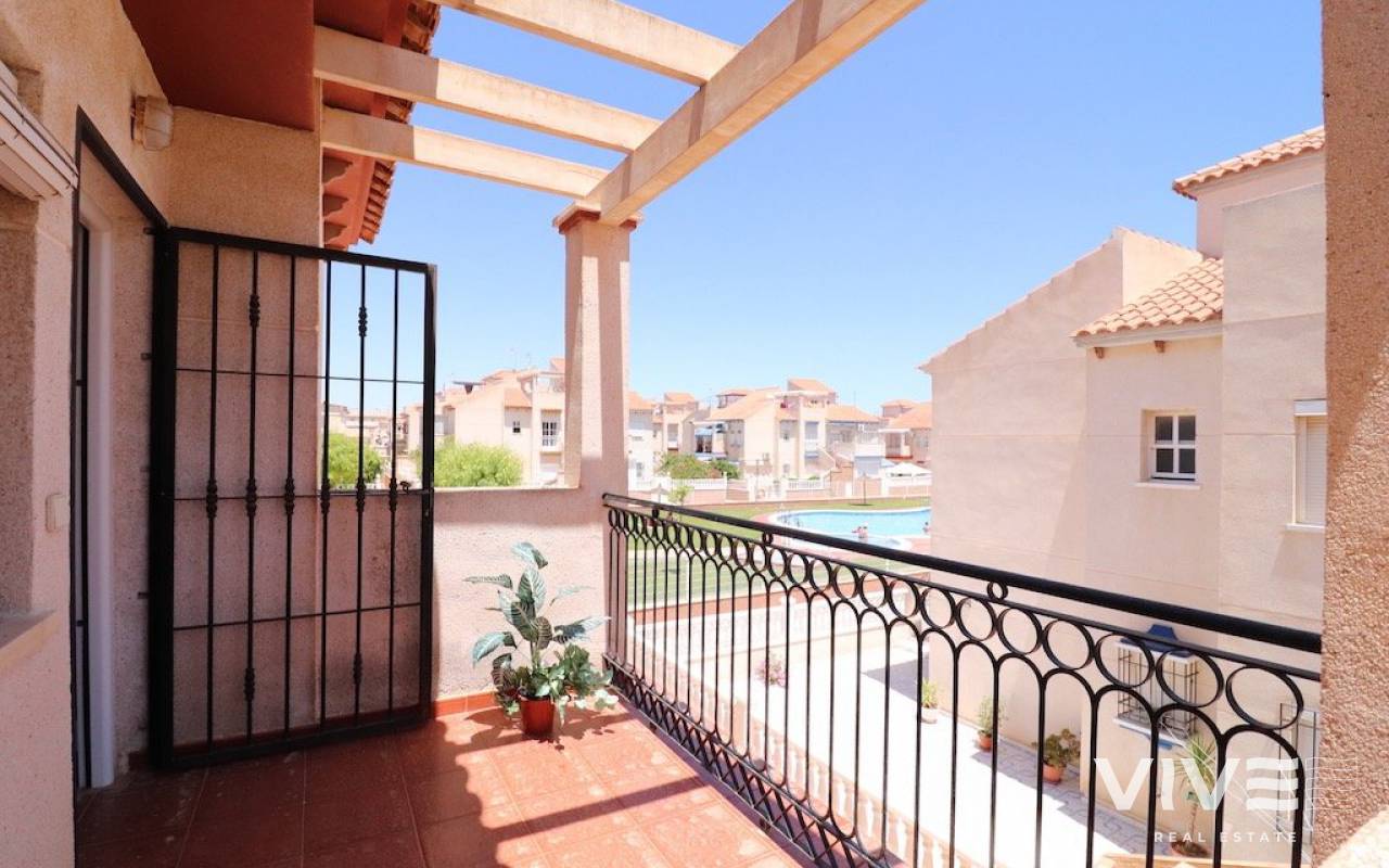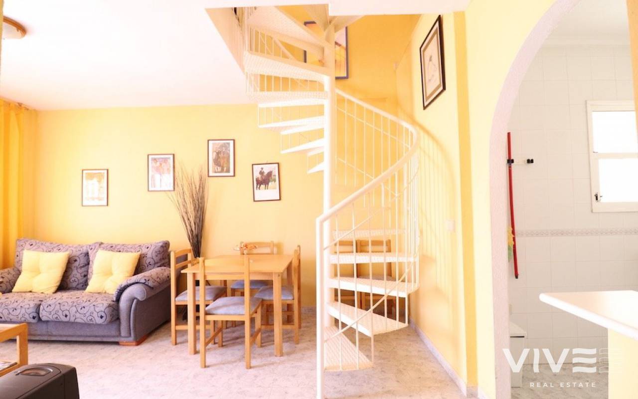 Playa flamenca Urb Duque de Ahumada Top floor corner bungalow with private solarium overlooking the community pool and the park 50 m2 house with 2 bedrooms, 1 bathroom, separate kitchen, living room, loft, large terrace, 15 m2 solarium, the housing is sold furnished, the urbanization has community parking.