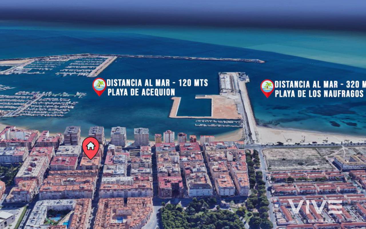 Apartment in the Acequión neighborhood of 106 m2, with lateral views of the sea, with an 8 m2 terrace and a SOUTH orientation with 3 bedrooms, 1 bathroom, living room - dining room and separate kitchen, it is a 3rd floor without elevator 100 meters from the beach surrounded by all kinds of services such as restaurants, pharmacies, health center, bars, supermarkets, etc... IBI.....................264€ COMMUNITY. ..................250 € Annually