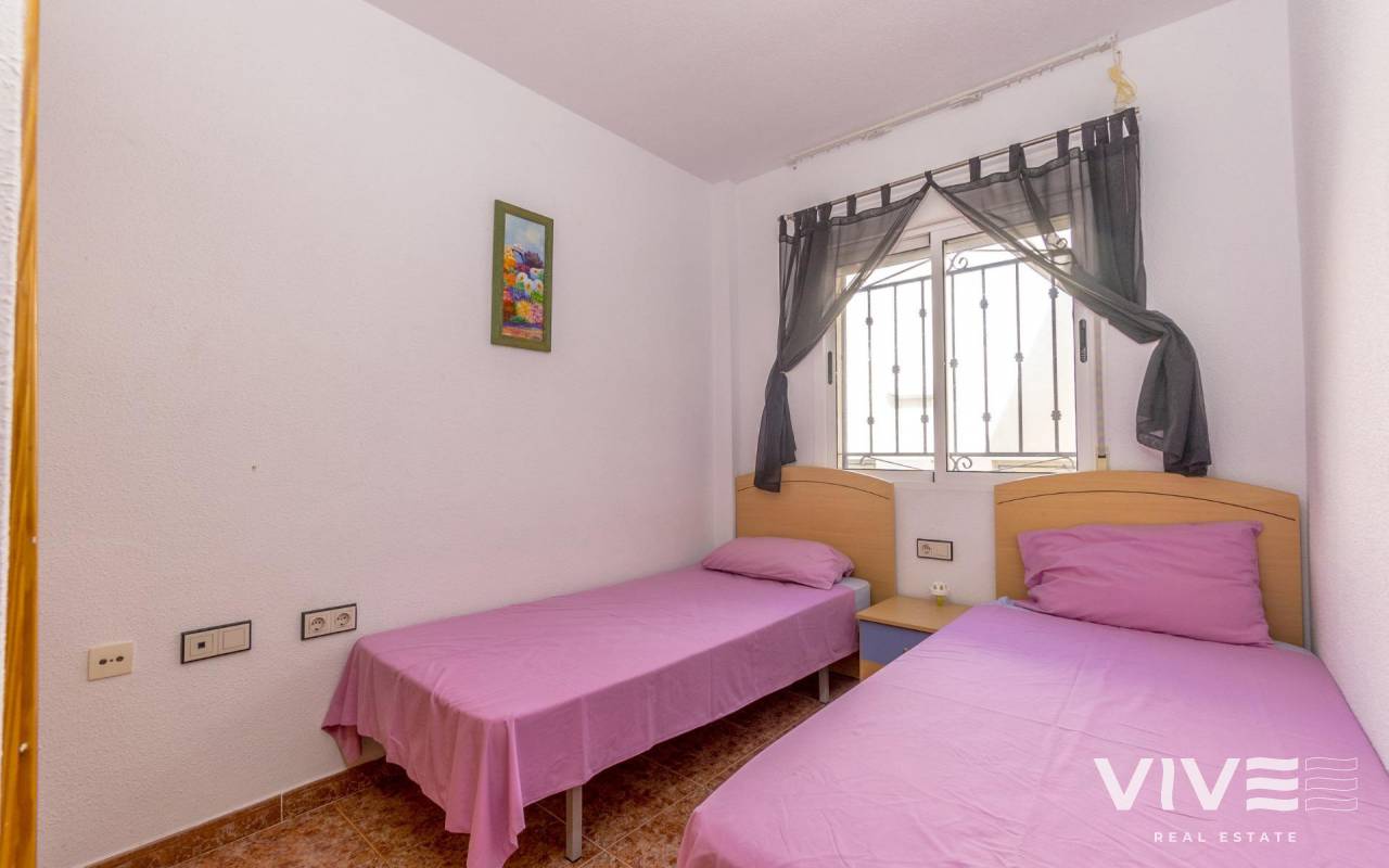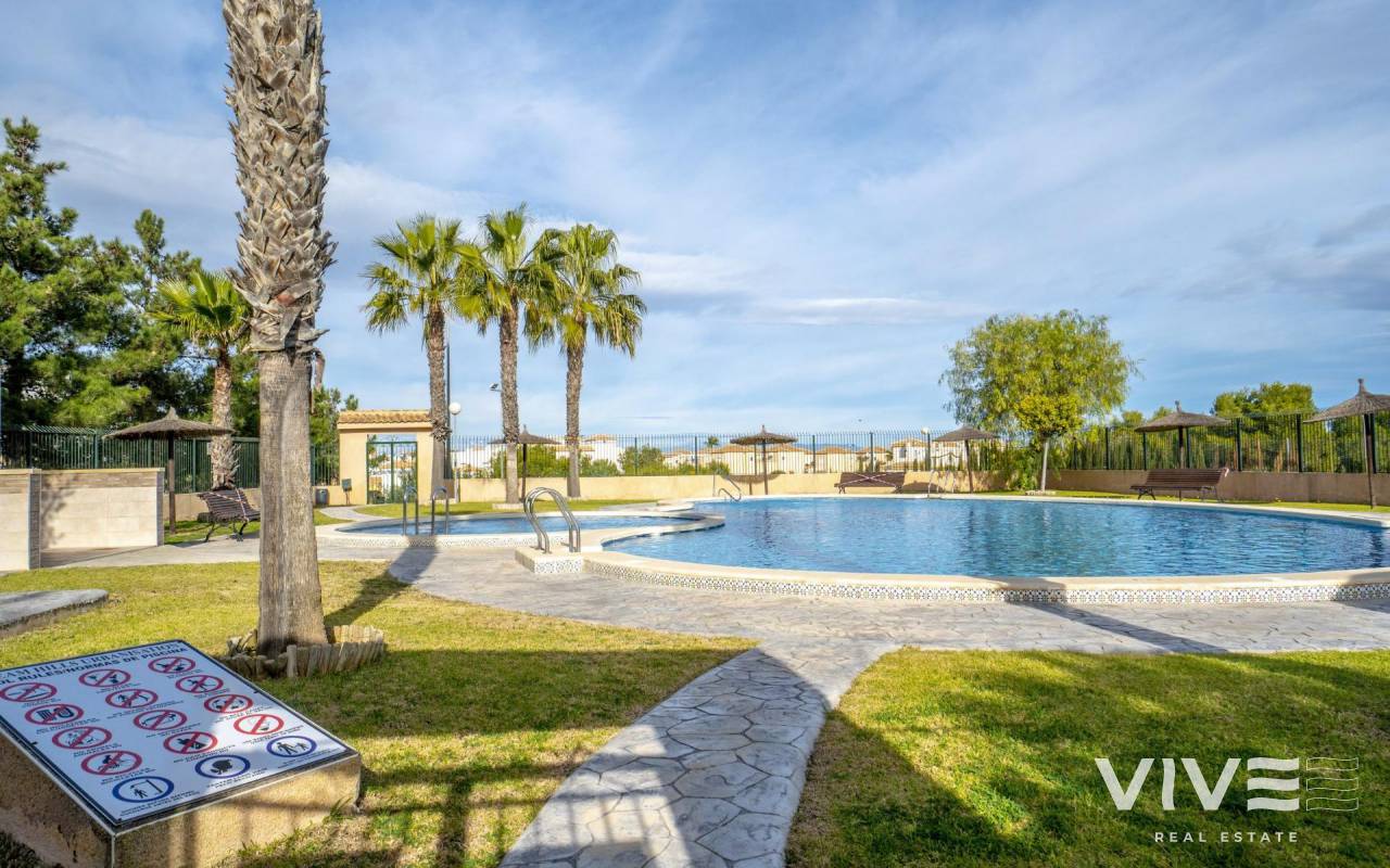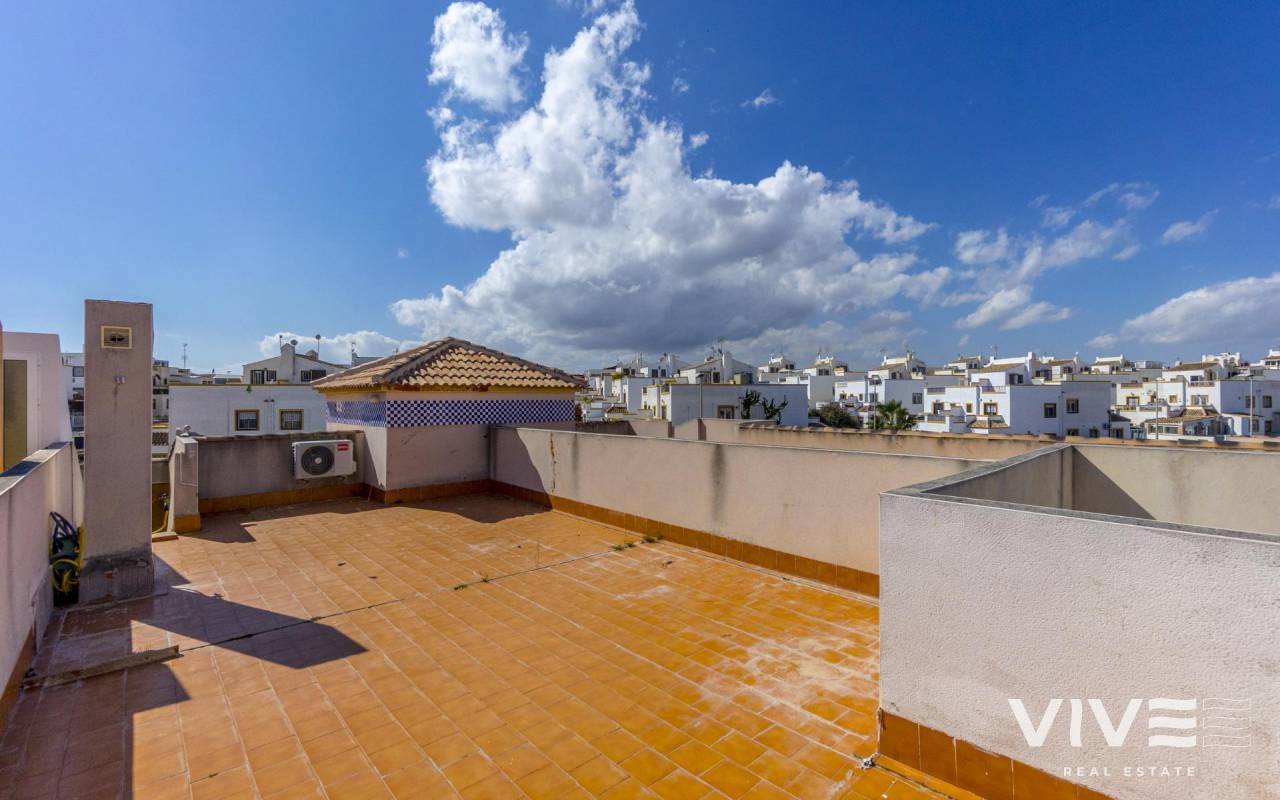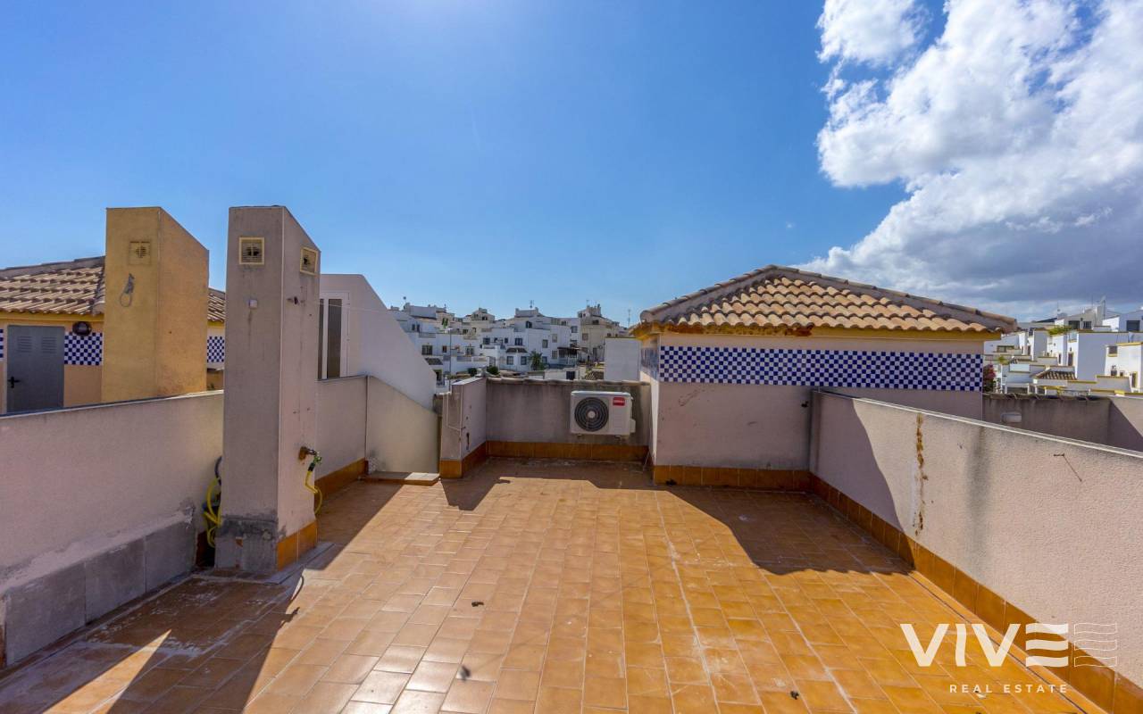 Top floor bungalow located in the Urb. Dream Hills. Southeast orientation. The 62m2 house, consists of 2 bedrooms, 1 bathroom, a large luminous living room, independent kitchen, terrace and solarium of about 40m2 with clear views. The community offers community parking, two pools and gardens for residents. Located near the Via Park 5 shopping center and local services, and less than 3 km from the local beaches. Furnished and appliances for sale.