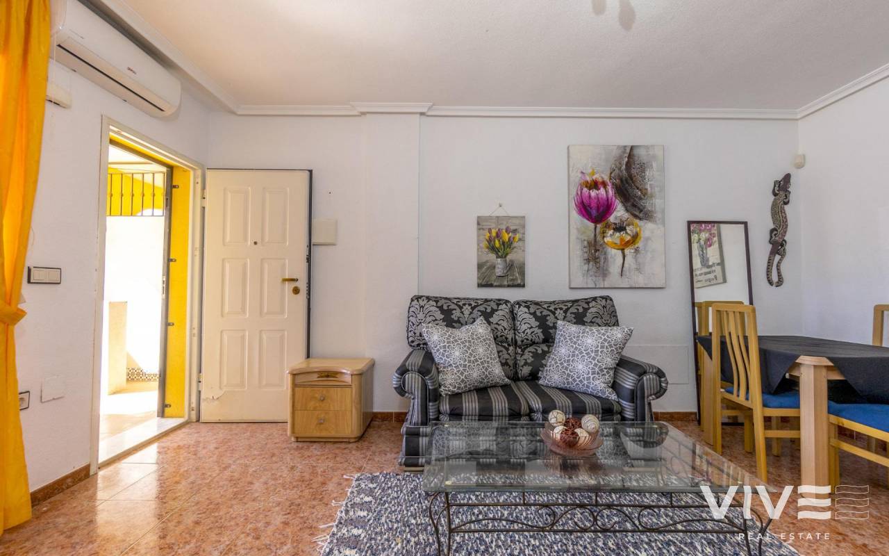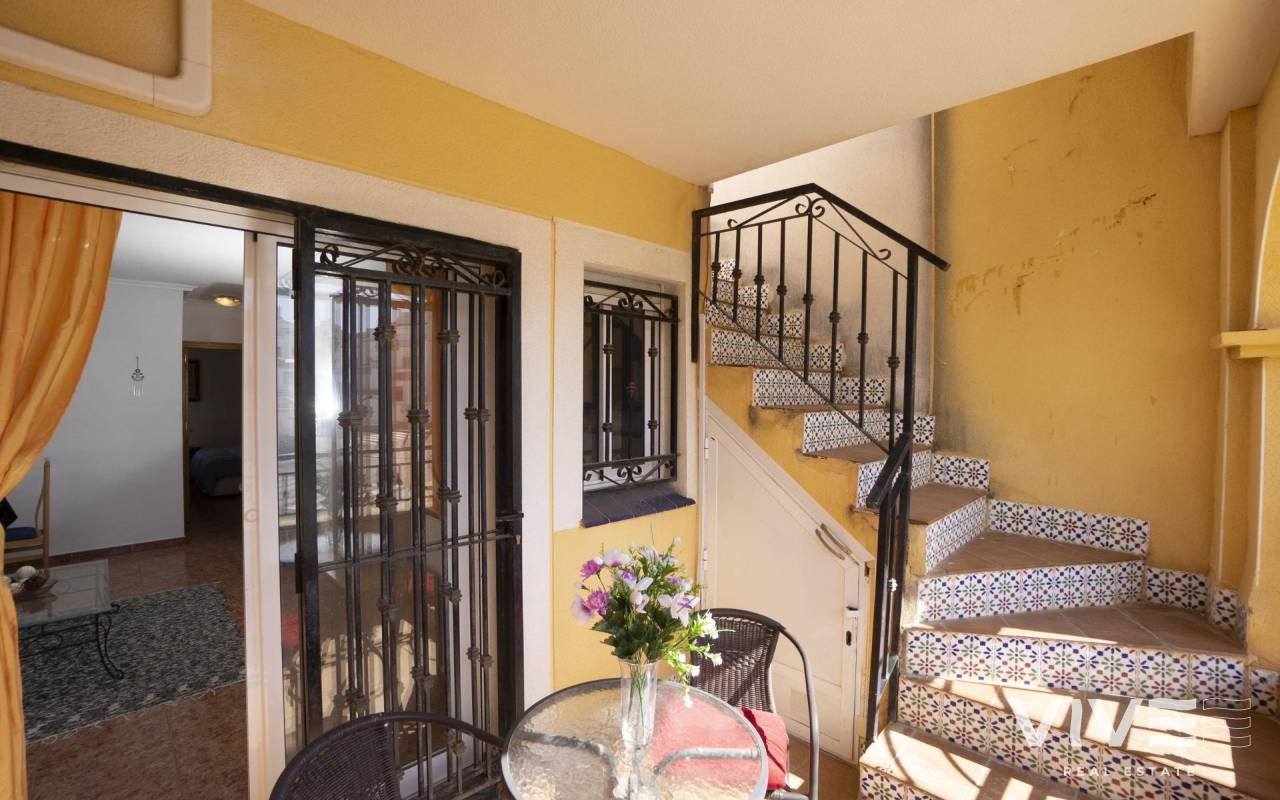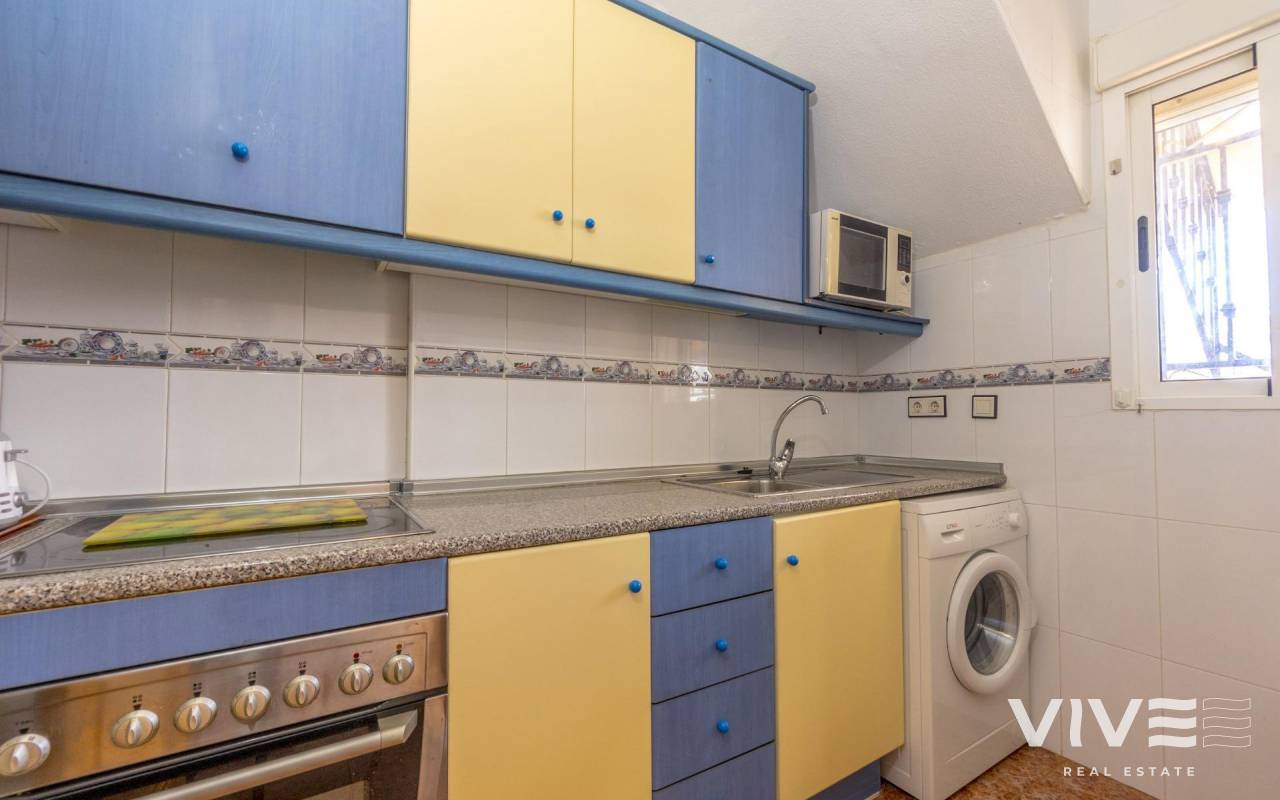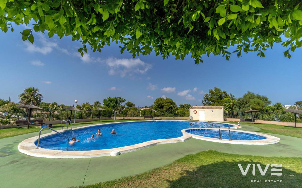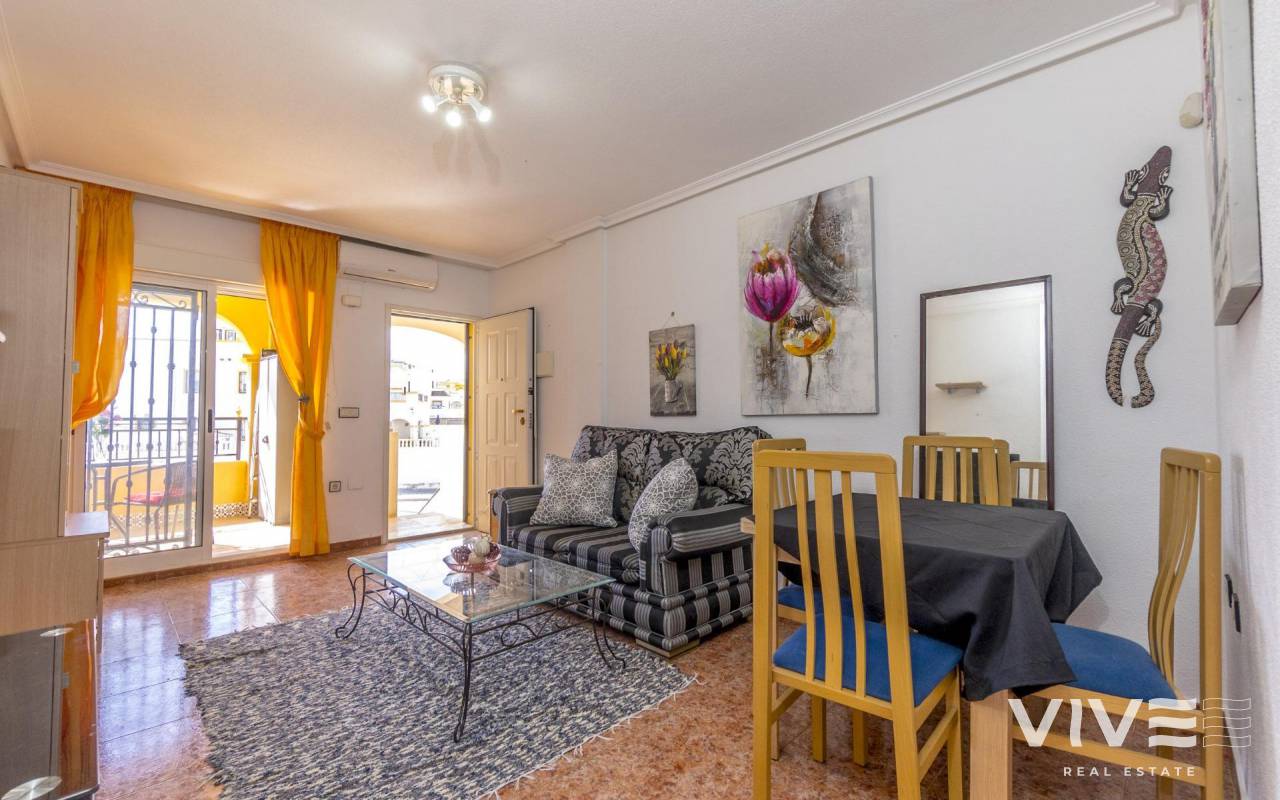 Top floor bungalow located in the Urb. Dream Hills. Southeast orientation. The 62m2 house, consists of 2 bedrooms, 1 bathroom, a large luminous living room, independent kitchen, terrace and solarium of about 40m2 with clear views. The community offers community parking, two pools and gardens for residents. Located near the Via Park 5 shopping center and local services, and less than 3 km from the local beaches. Furnished and appliances for sale.