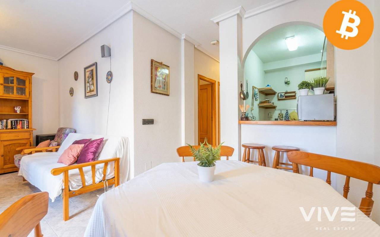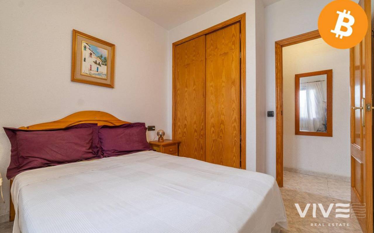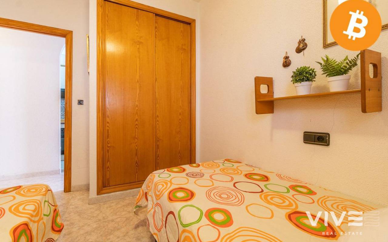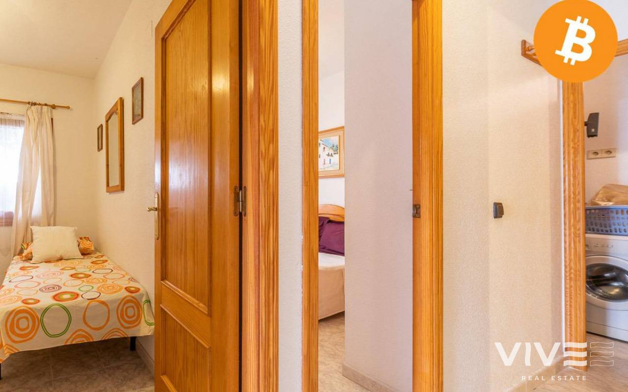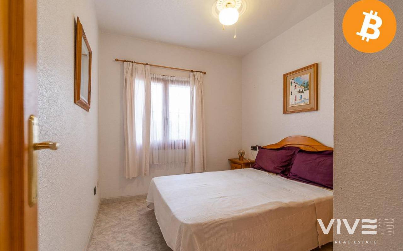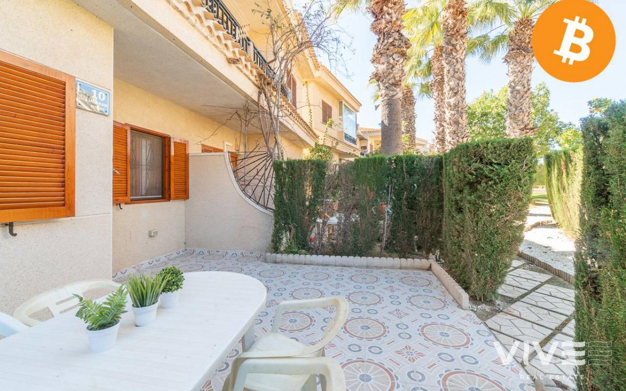 In the heart of the Urbanisation Playa Flamenca, within a gated community with swimming pool, very close to the Zenia Boulevard shopping centre, the beaches of Playa Flamenca, the public school, the municipal sports areas, the Costa Town Hall and shopping and leisure centres, with bars, restaurants and all types of services within walking distance, and the weekly Saturday market area at the foot of the communal garden area, is this ground floor flat with tiled patio and garden. The small community is made up of 40 properties, and has gardens and swimming pool perfectly maintained and very quiet, open and ready to use all year round. The property has a bright and sunny front terrace, with privacy and plenty of space, looking directly onto the communal gardens, and just 30 metres from the communal pool. In the property itself is the living room, with a window to make it brighter, the dining room with its own window as well, and connected through the breakfast bar with the fully equipped kitchen with appliances and plenty of storage space, has a full bathroom with bathtub and shower and storage-laundry room under the stairwell for all the beach stuff and other junk that we never know where to put. It also has two bedrooms, both with built-in wardrobes and natural light and ventilation. The property is in perfect condition and ready to move into, with all the furniture and equipment you may need, it also has underfloor heating for the few cold days in winter and is perfect for holidays or as an investment, but also to live all year round since being ground floor is very comfortable to access it, without stairs for people who have a certain age or disability. It is worth a visit to an opportunity like this.