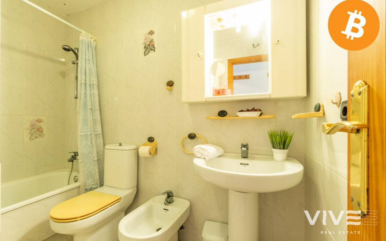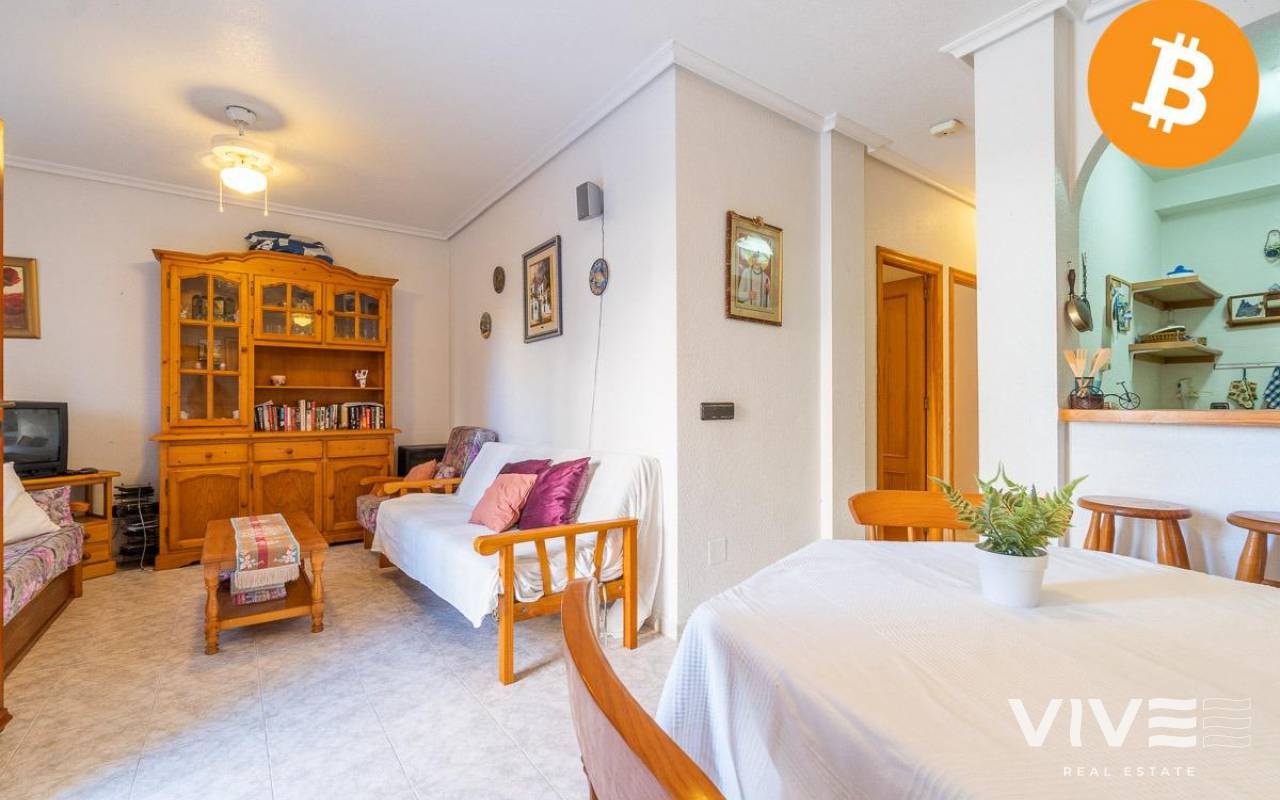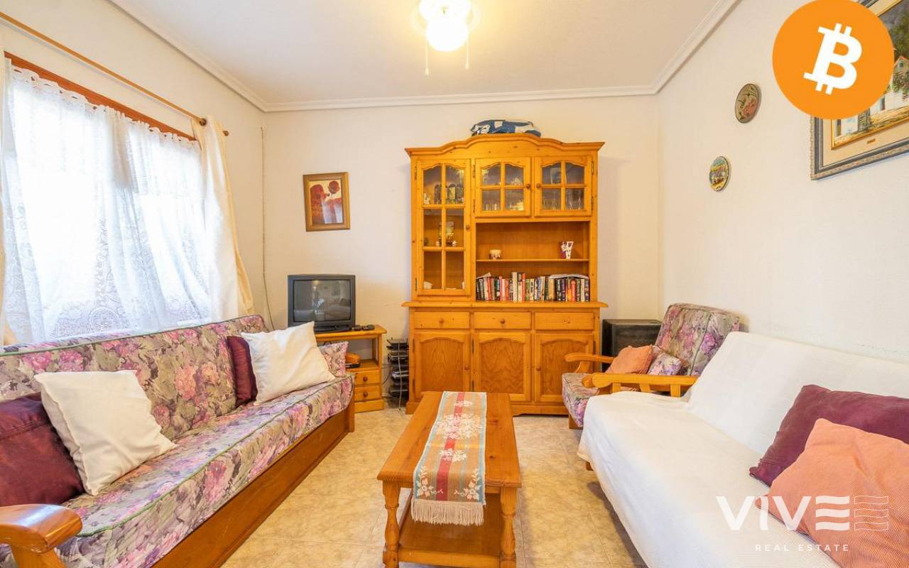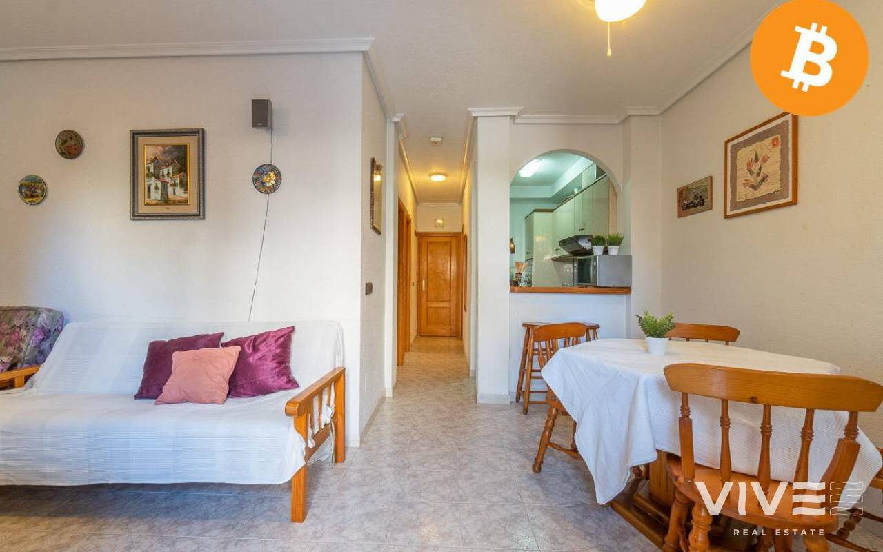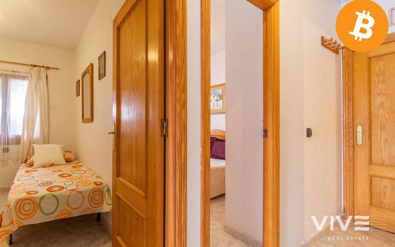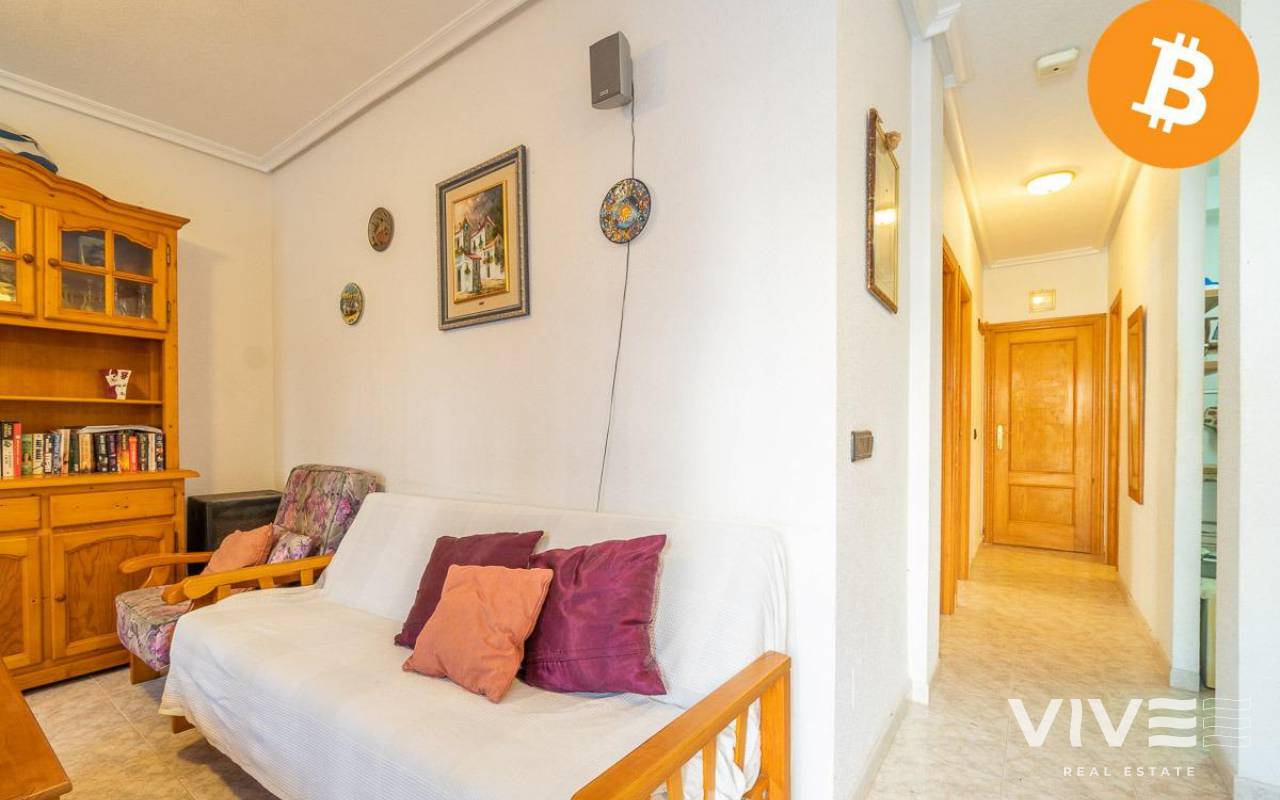 In the heart of the Urbanisation Playa Flamenca, within a gated community with swimming pool, very close to the Zenia Boulevard shopping centre, the beaches of Playa Flamenca, the public school, the municipal sports areas, the Costa Town Hall and shopping and leisure centres, with bars, restaurants and all types of services within walking distance, and the weekly Saturday market area at the foot of the communal garden area, is this ground floor flat with tiled patio and garden. The small community is made up of 40 properties, and has gardens and swimming pool perfectly maintained and very quiet, open and ready to use all year round. The property has a bright and sunny front terrace, with privacy and plenty of space, looking directly onto the communal gardens, and just 30 metres from the communal pool. In the property itself is the living room, with a window to make it brighter, the dining room with its own window as well, and connected through the breakfast bar with the fully equipped kitchen with appliances and plenty of storage space, has a full bathroom with bathtub and shower and storage-laundry room under the stairwell for all the beach stuff and other junk that we never know where to put. It also has two bedrooms, both with built-in wardrobes and natural light and ventilation. The property is in perfect condition and ready to move into, with all the furniture and equipment you may need, it also has underfloor heating for the few cold days in winter and is perfect for holidays or as an investment, but also to live all year round since being ground floor is very comfortable to access it, without stairs for people who have a certain age or disability. It is worth a visit to an opportunity like this.
