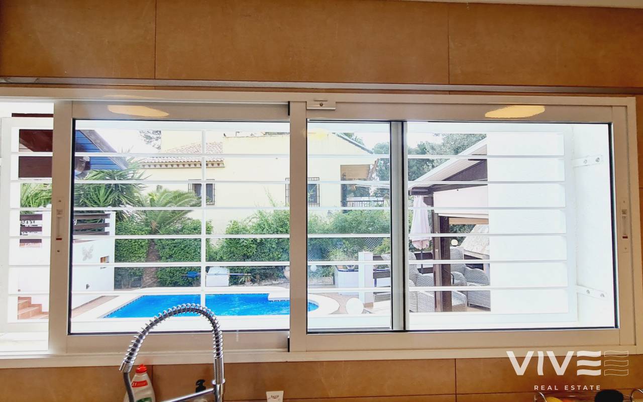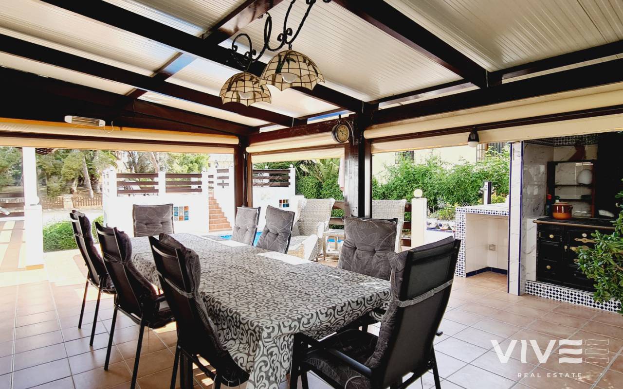 Villa med uppvärmd pool och motströms simsystem, fördelad på huvudvåningen i två sovrum, två badrum (två av dem med eget sovrum), omklädningsrum, separat kök och ett stort vardagsrum med tillgång till en stor veranda med markiser och uppvärmning och grillplats där du kan njuta av solen med din familj och vänner. På tomten har du också två privata lägenheter med badrum och köksutrymmen och luftkonditionering, ett stort förråd, en finsk bastu av hög kvalitet, en trädgård med fruktträd och rosenbuskar, ett område för att ta en kaffe på morgonen och ett solarium.
