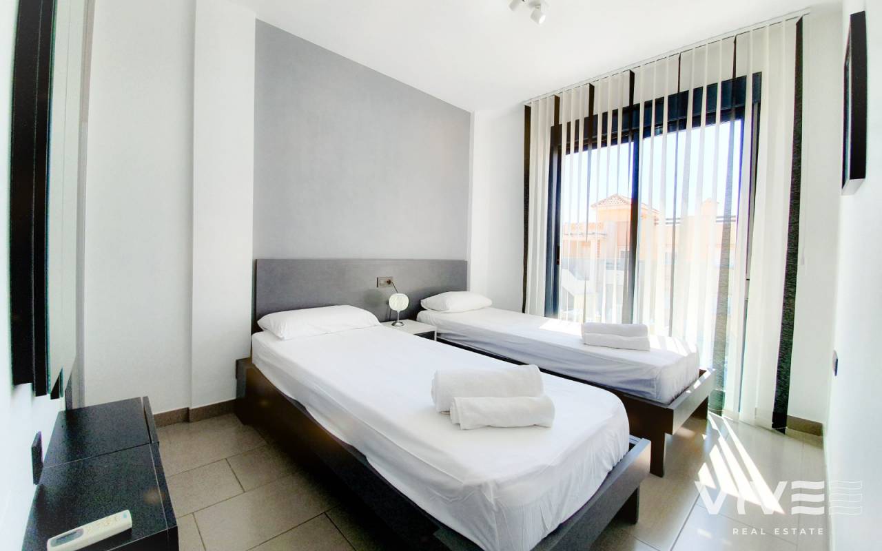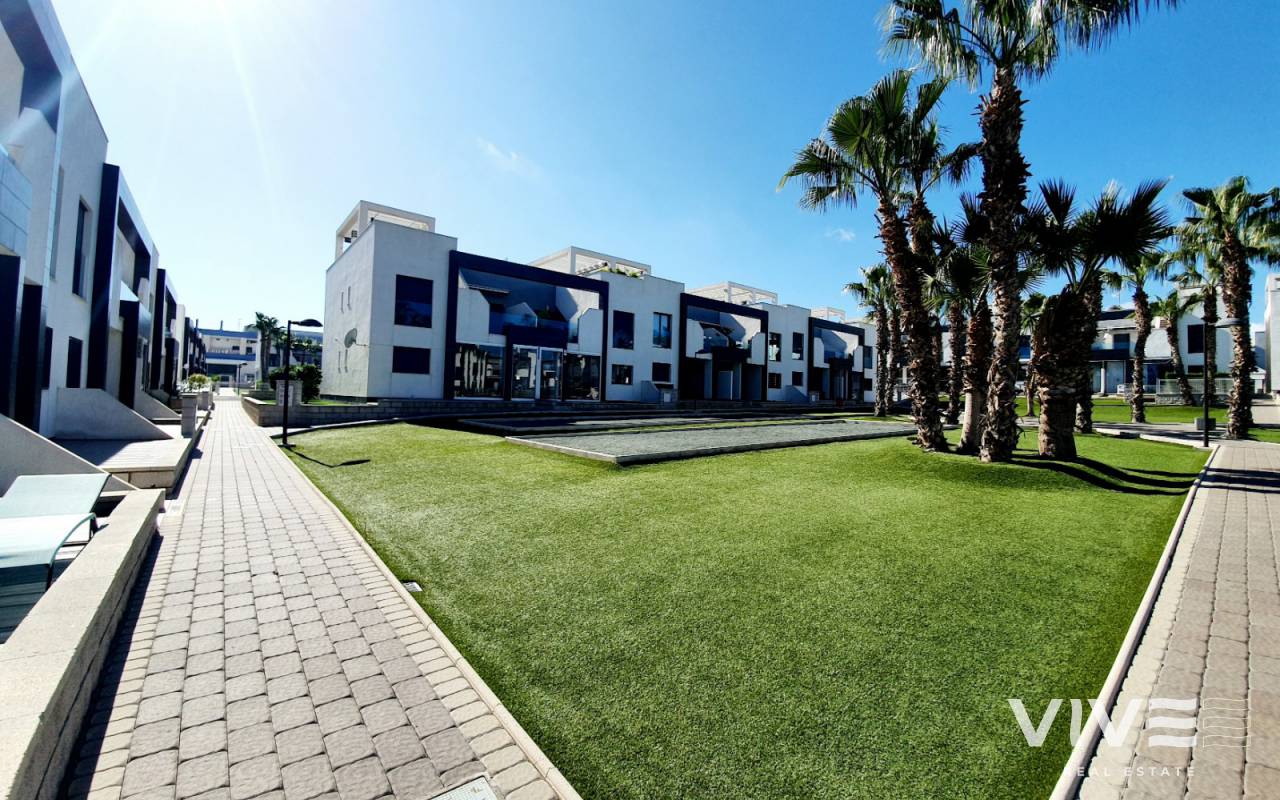 Fly från vintern och tillbringa några månader i solen i detta bostadsområde med pool, stora grönområden, lekplats för barn, boulebanor,... Bredvid stormarknader, apotek, affärer, busshållplatser och Zenia Boulevard shoppingcenter. Gatumarknaden varje lördag ligger på 5 minuters gångavstånd. Den närmaste stranden, La Zenia-stranden, ligger 1,5 km bort.