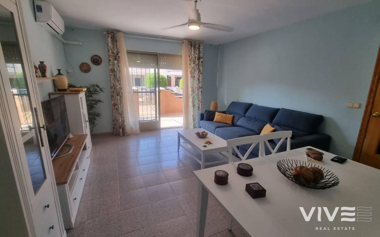 Denna lägenhet på bottenvåningen ligger i ett lugnt område i Los Urrutias, bara några meter från stranden och sportcentret. Ett perfekt läge både för året-runt-boende och som en investering med hög säsongsefterfrågan vid Mar Menor-kusten.