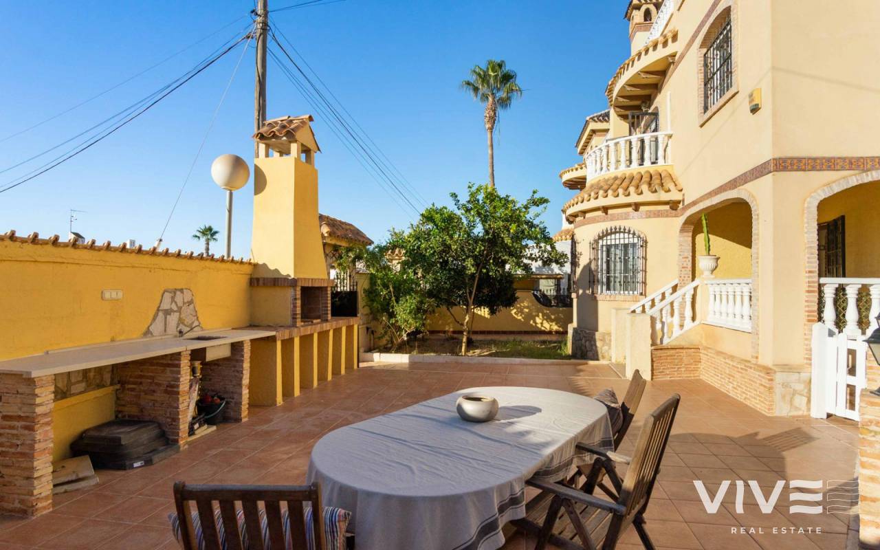 Willkommen in Ihrem neuen Zuhause in Orihuela Costa, in der bezaubernden Gegend von Las Mimosas!. . Dieses spektakuläre Haus bietet Ihnen die Möglichkeit, das Leben Ihrer Träume in einer paradiesischen Umgebung zu leben. Mit einer großzügigen Fläche von 161 Quadratmetern und einem Grundstück von mehr als 300 Quadratmetern ist dieses Haus eine Oase von Platz und Privatsphäre. Darüber hinaus garantiert Ihnen die Lage, nur 3000 Meter vom Strand entfernt, das Vergnügen des Meeres und der Sonne immer zum Greifen nah. Genießen Sie die Geräumigkeit dieses Hauses mit 5 Schlafzimmern, mit dem Vorteil eines Zimmers im Erdgeschoss für zusätzlichen Komfort. Auf dieser Etage finden wir auch ein Badezimmer. Der erste Stock bietet 3 Schlafzimmer und 2 Badezimmer, 1 en suite. Auf der Ebene des Solariums finden wir das fünfte Schlafzimmer sehr hell.. . Diese Immobilie ist bereit für Ihren Einzug und Sie werden sich vom ersten Moment an wie zu Hause fühlen. In der ausgestatteten Küche können Sie Ihrer kulinarischen Kreativität freien Lauf lassen und die Südostausrichtung sorgt den ganzen Tag über für unvergleichliche natürliche Helligkeit. Die zusätzlichen Annehmlichkeiten dieses Hauses sind zahllos. Genießen Sie den Komfort von fließendem Wasser, den Komfort einer Klimaanlage und die Sicherheit einer Alarmanlage. Einbauschränke, eine Speisekammer und eine Waschküche erleichtern die Organisation Ihres Alltags. Das Haus ist komplett möbliert, sodass Sie ohne Komplikationen einziehen und Ihre Räume vom ersten Tag an genießen können. Der Garten mit seinen Bäumen und einem Grillplatz wird zum perfekten Rahmen für Ihre Familientreffen und Momente im Freien. Entspannen Sie sich und tauchen Sie in das Wasser Ihres privaten Pools ein oder schließen Sie sich der Gemeinschaft im Gemeinschaftspool an. Das Solarium bietet Ihnen eine Ecke der Ruhe für Ihre Momente der Besinnung, während die klare Aussicht und die mediterrane Brise Ihre Seele streicheln.. . Die Lage dieses Hauses ist einfach außergewöhnlich, mit Einkaufszentren, Krankenhäusern, Parks, Supermärkten und Kinderbereichen in der Nähe macht den Alltag äußerst komfortabel. Die Gemeinschaftsgebühren betragen nur 402 Euro pro Jahr, was die einwandfreie Instandhaltung der Gemeinschaftsbereiche garantiert. Kurz gesagt, dieses Haus in Orihuela Costa ist viel mehr als eine Immobilie; Es ist ein Lebensstil.. . Hier erwartet Sie ein Leben voller Komfort, Schönheit und Ruhe. Lassen Sie sich diese Gelegenheit nicht entgehen und kontaktieren Sie uns noch heute, um Ihr neues Zuhause zu besichtigen!